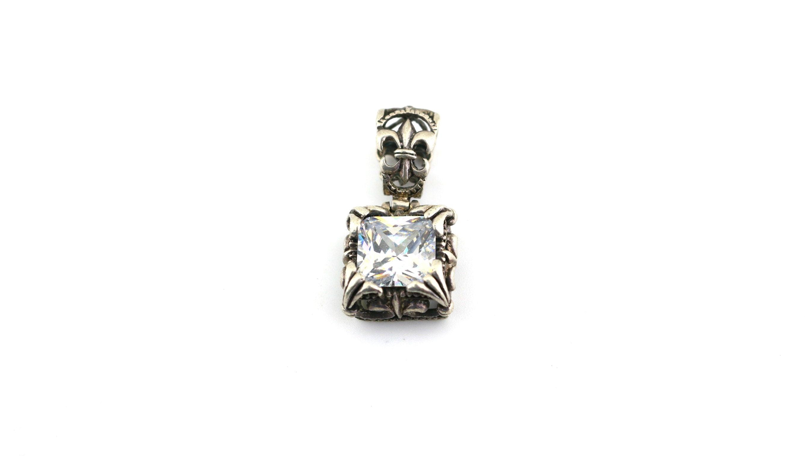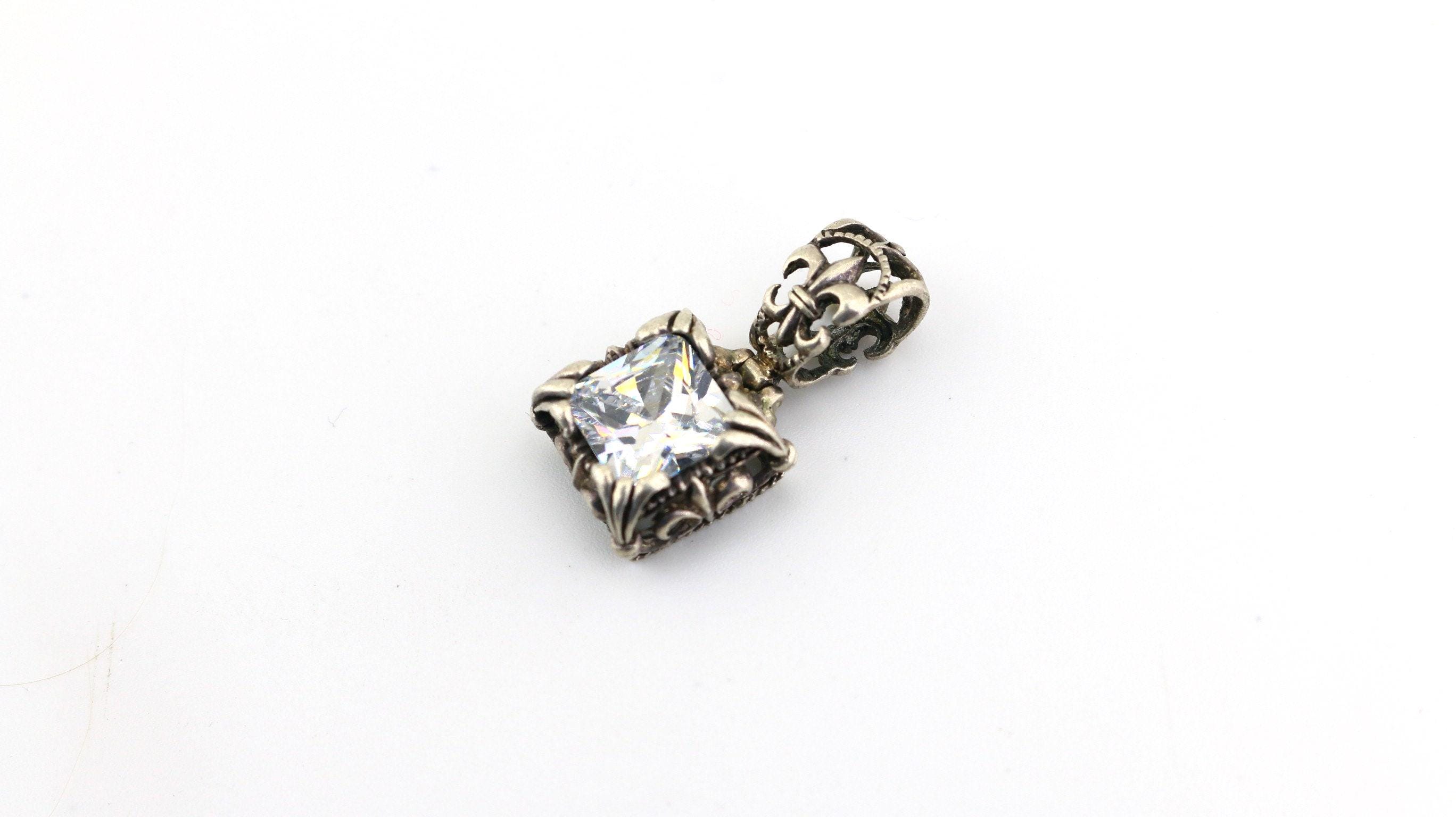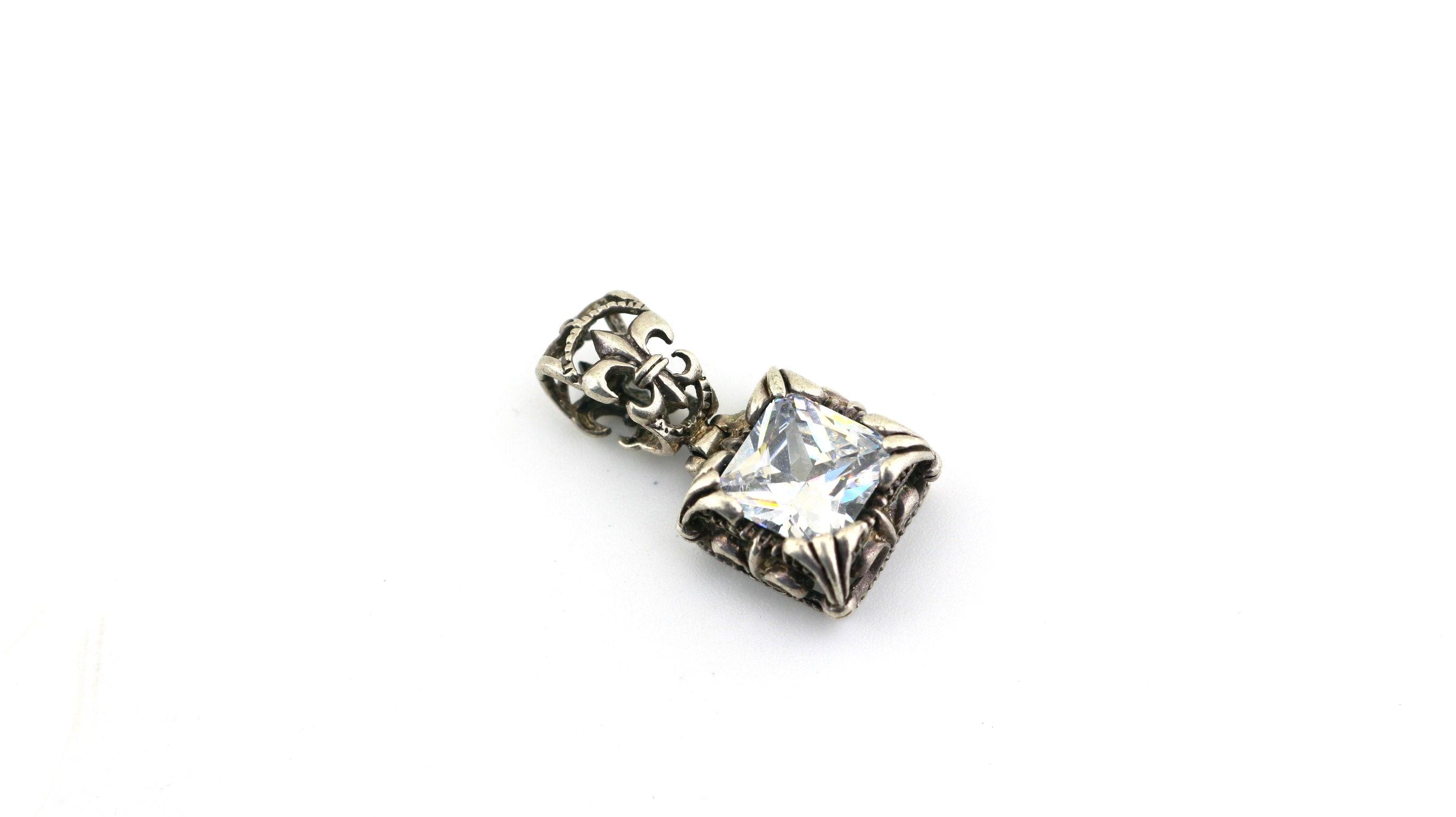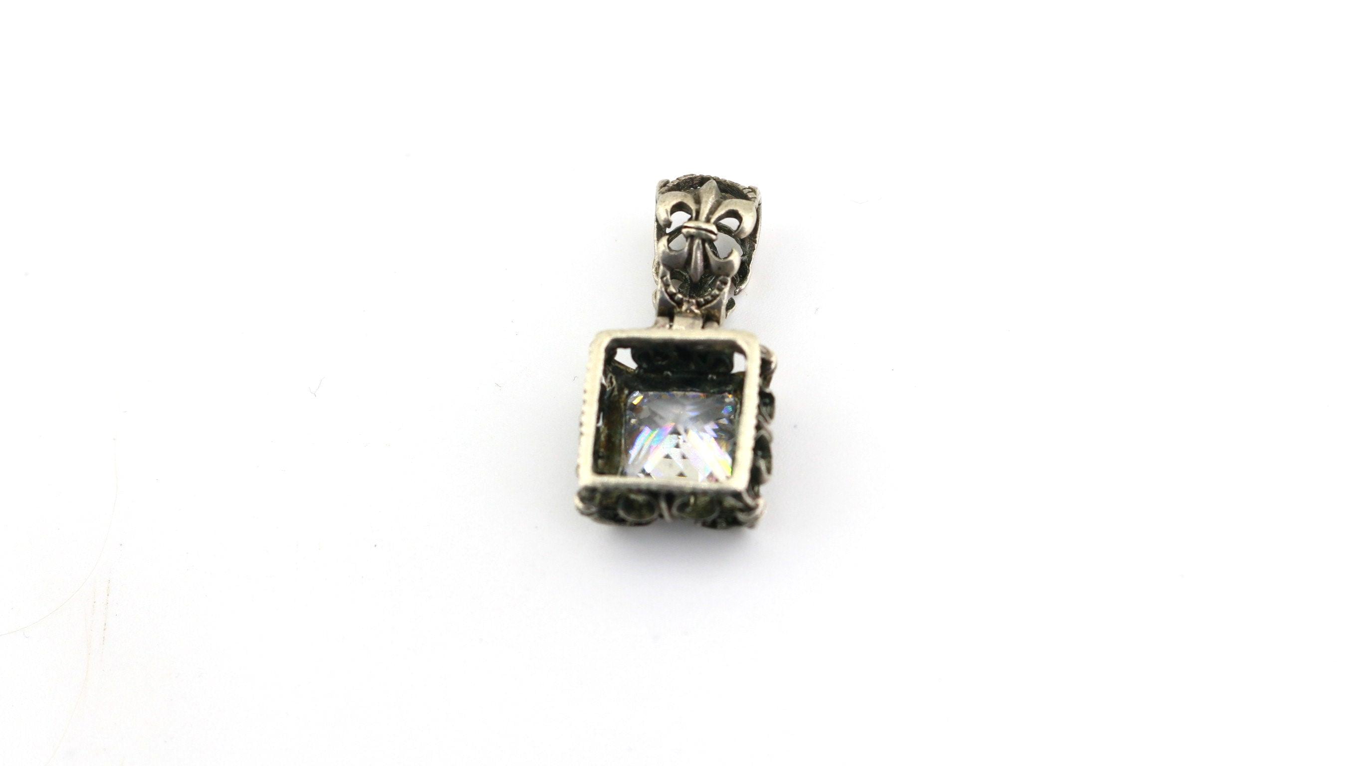This is Vintage Beautiful Cushion Shape Sparkling White Crystal CZ Fleur De Lis Thailand Design Pendant