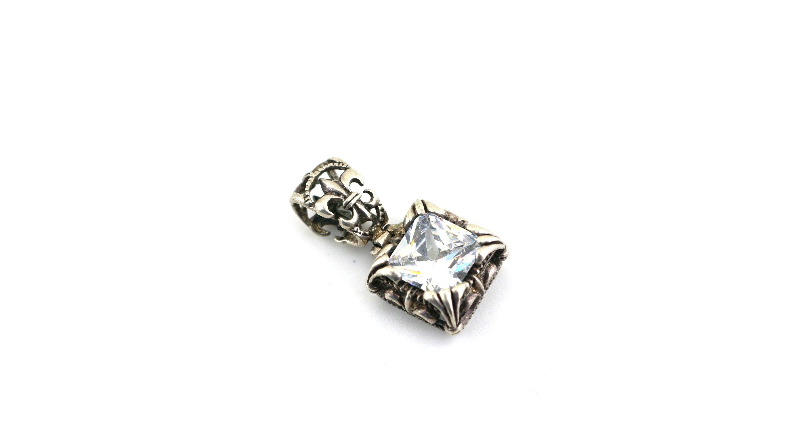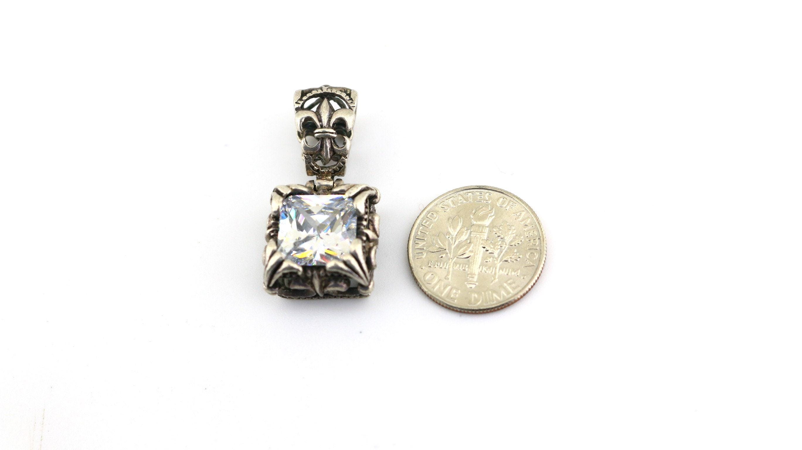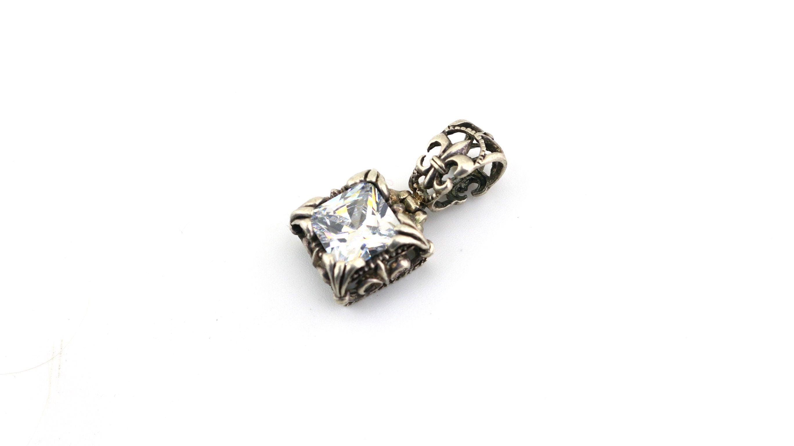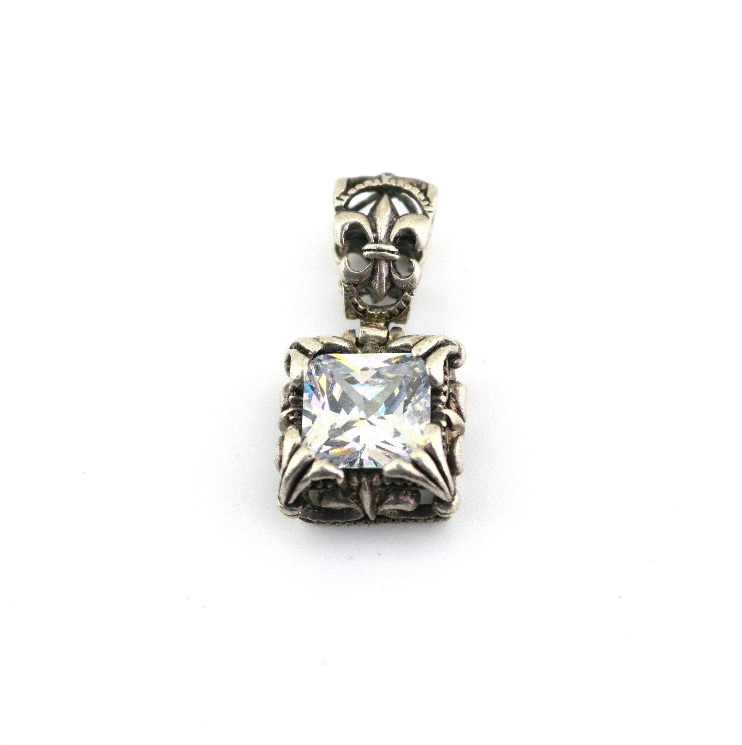 This is Vintage Beautiful Cushion Shape Sparkling White Crystal CZ Fleur De Lis Thailand Design Pendant