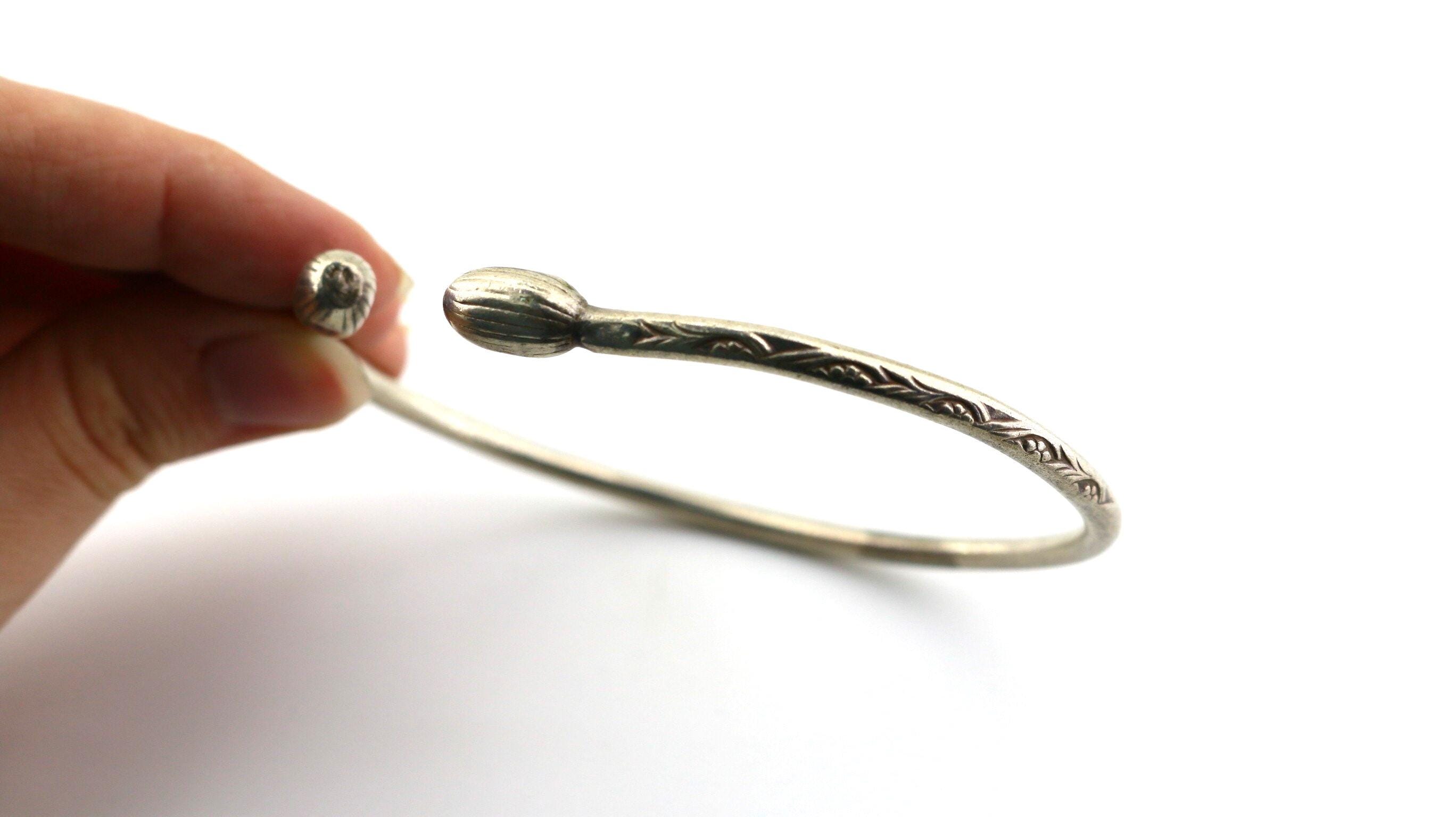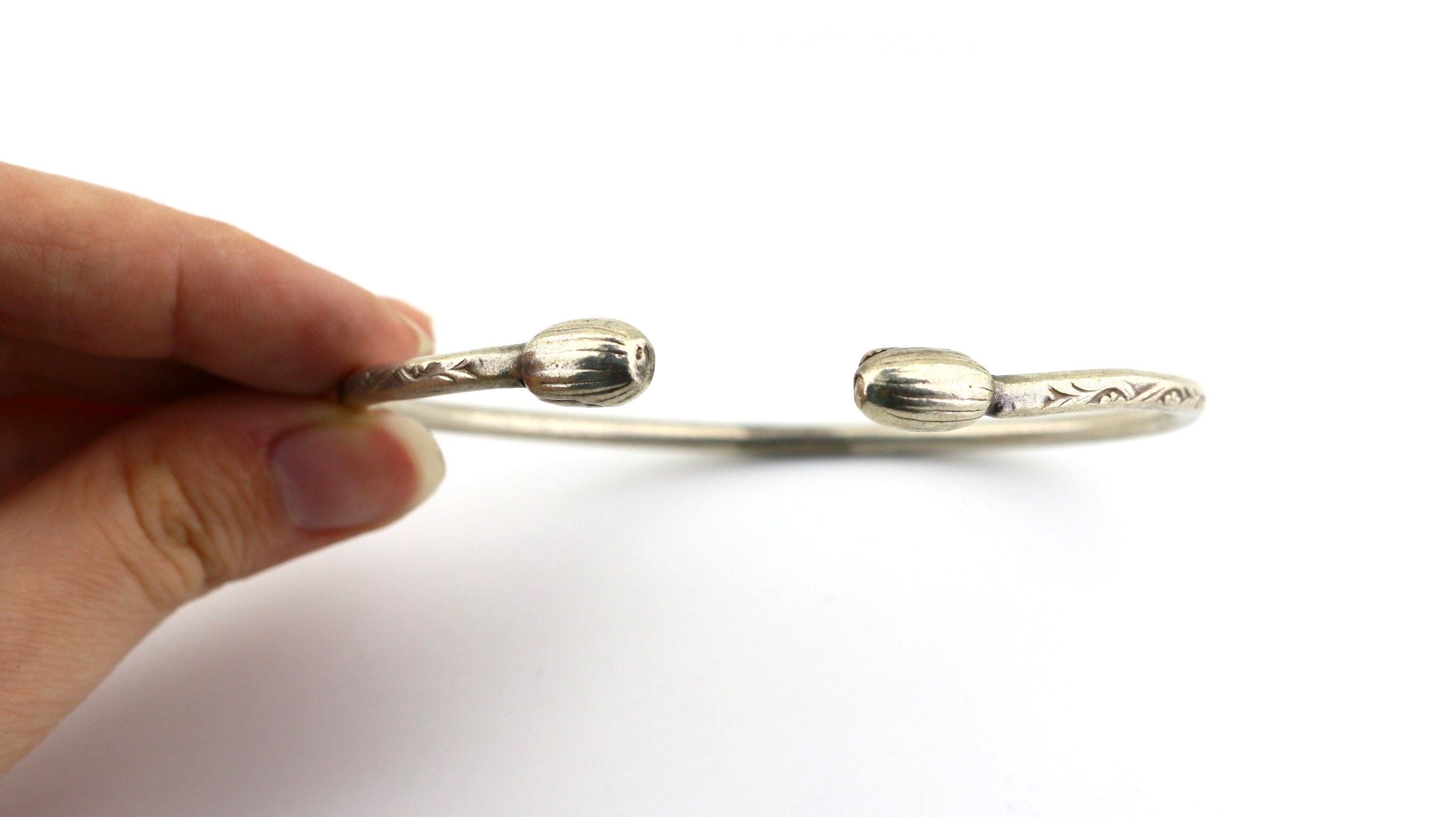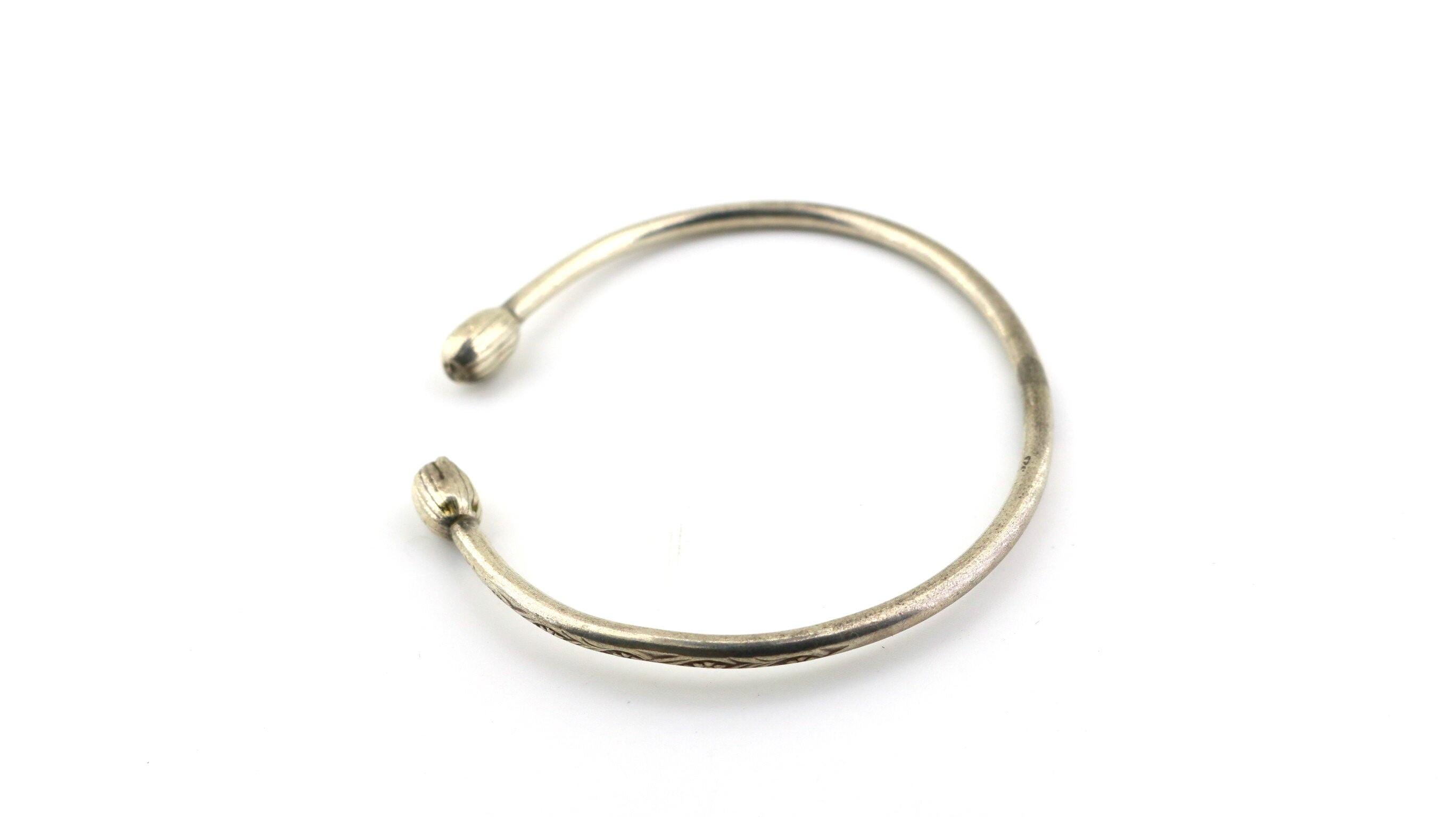 This is Vintage Large West Indian Etched Reeds Oval Cone Ends Design Bangle Bracelet