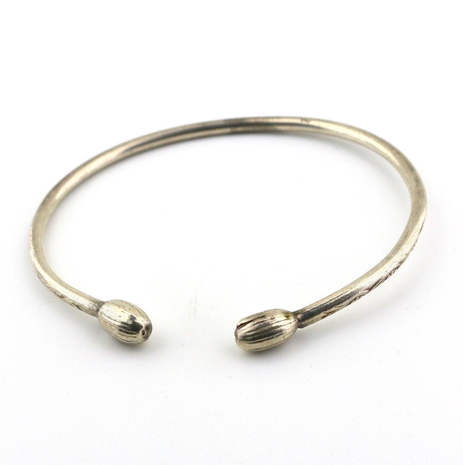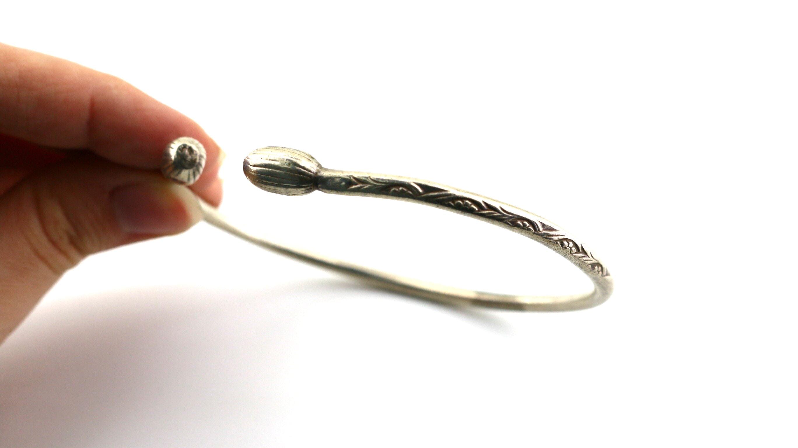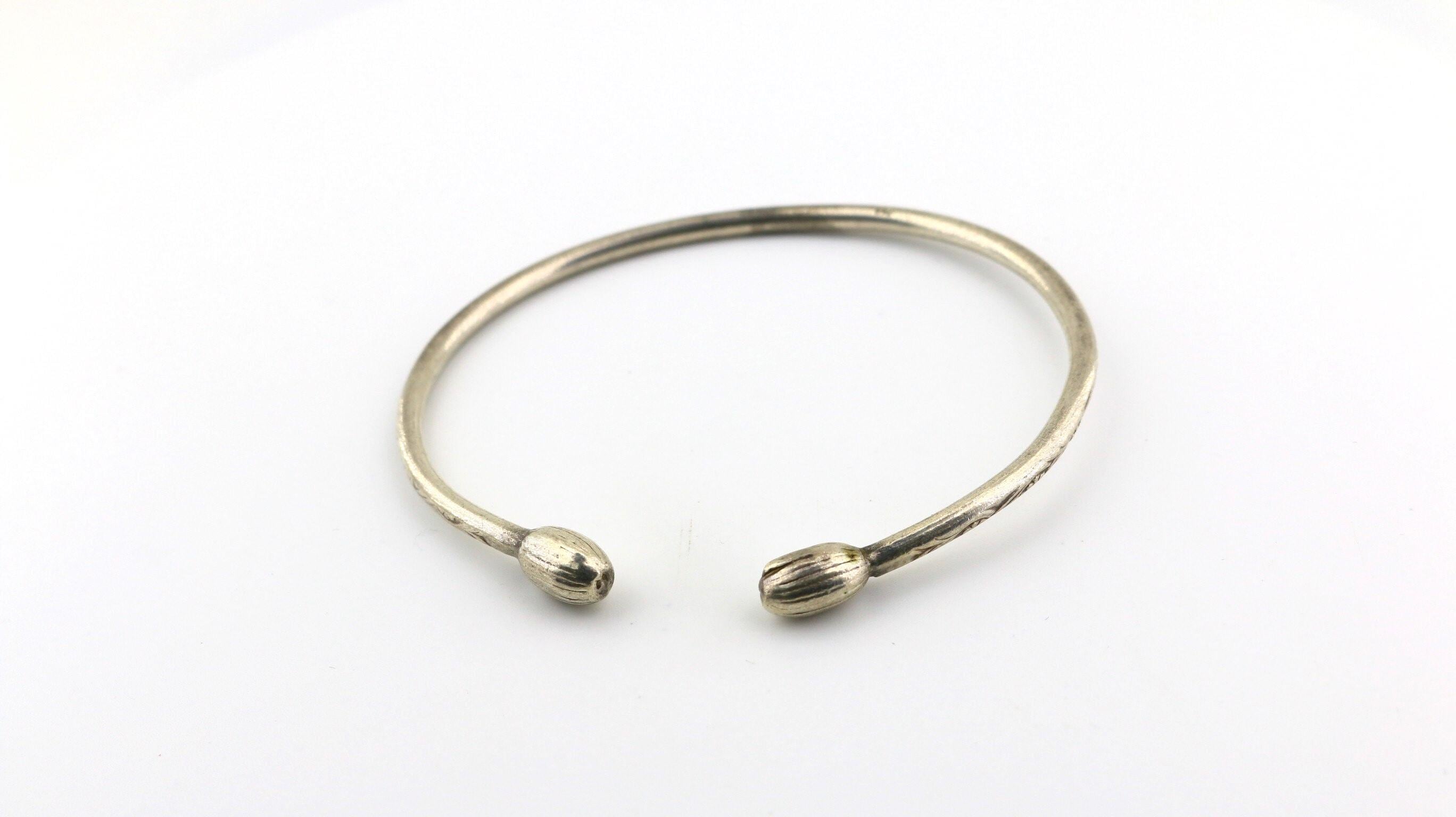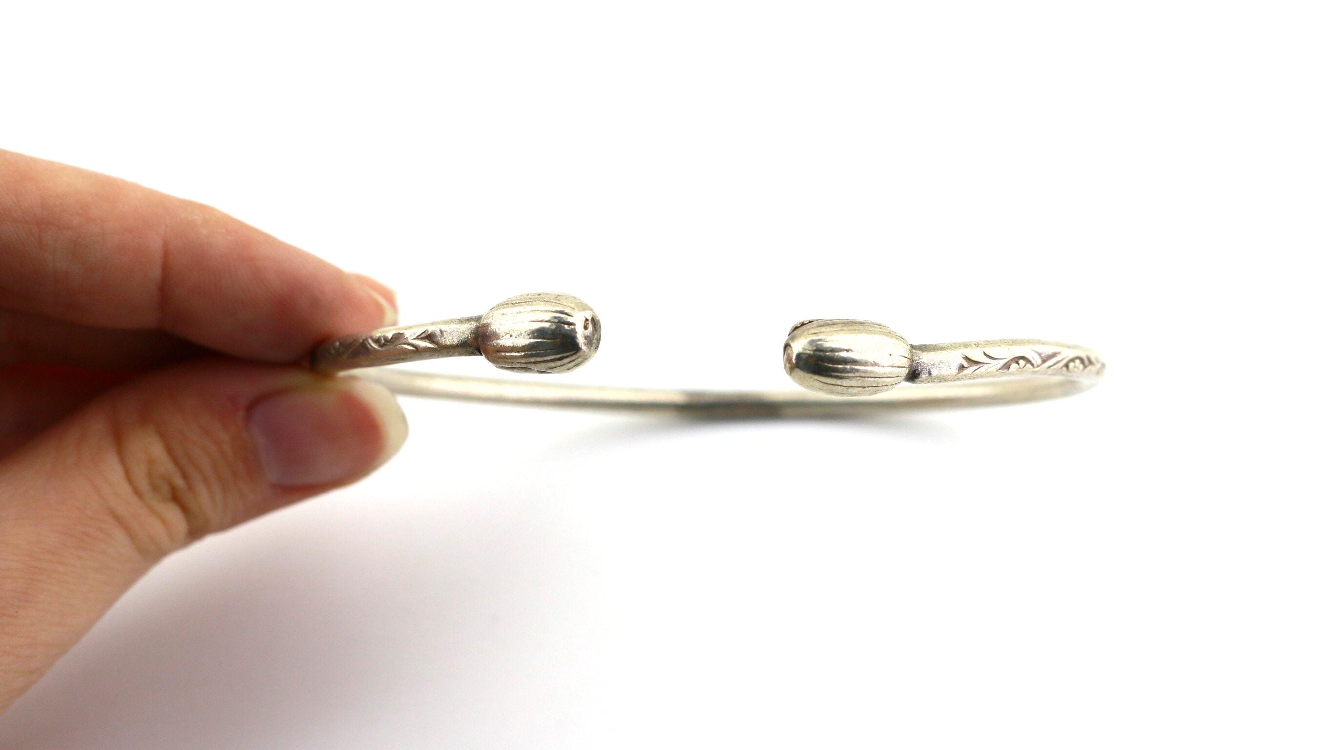 This is Vintage Large West Indian Etched Reeds Oval Cone Ends Design Bangle Bracelet