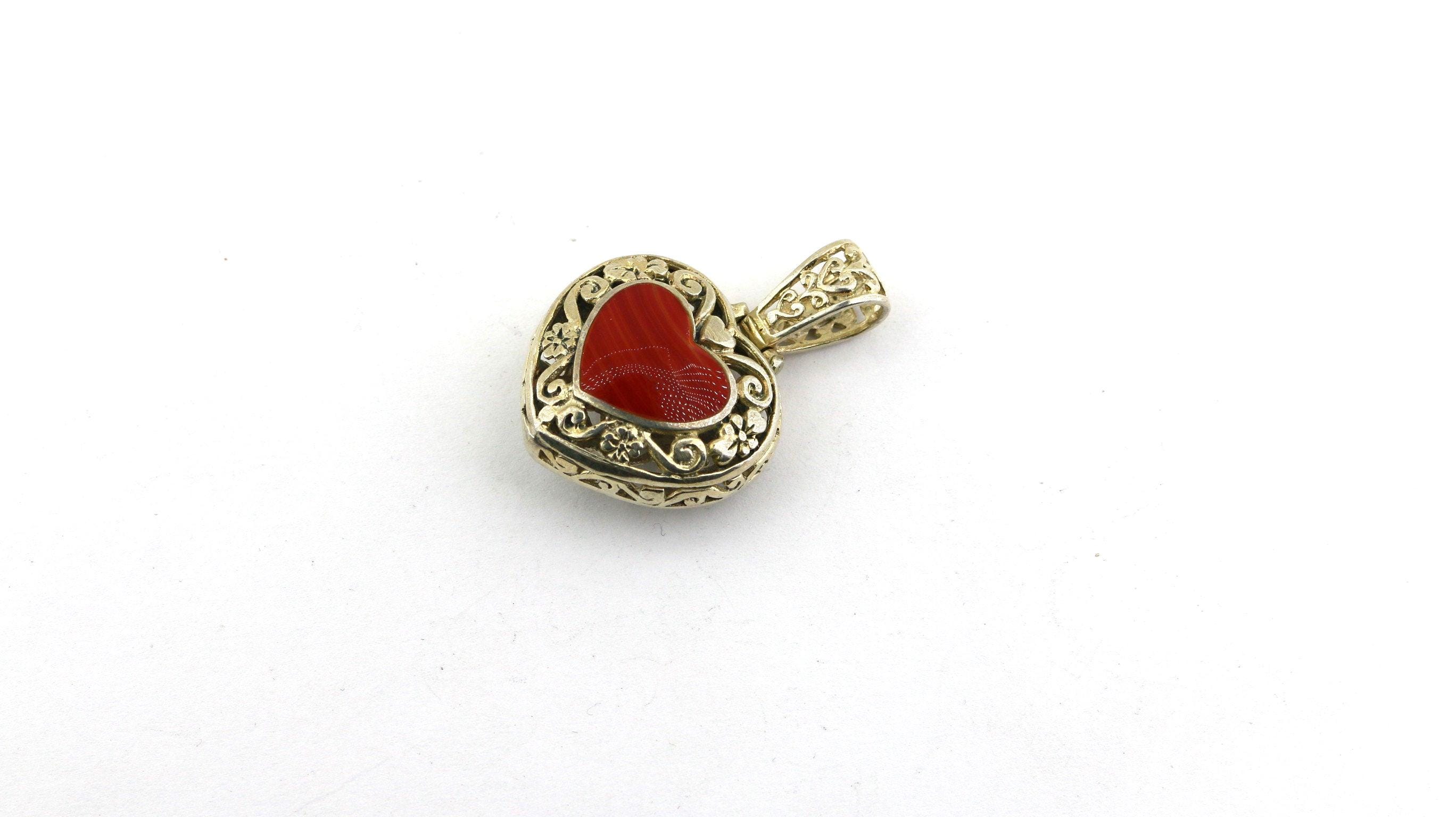 This is Vintage Beautiful Red Coral Stone Etched Cut Scroll Floral Loyal Heart Royal Thailand Design Pendant