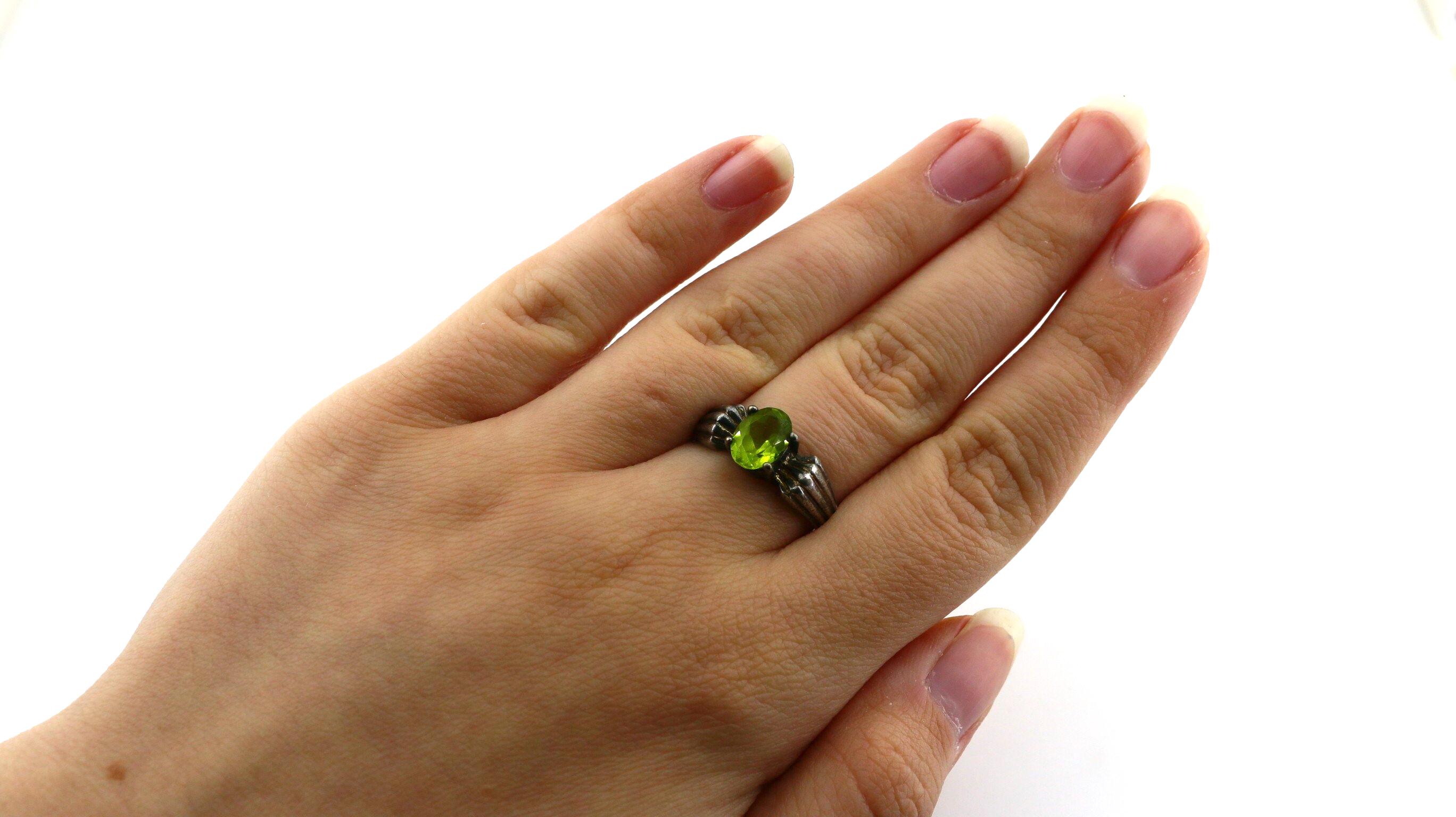 This is Vintage Oval Green Peridot Crystal Birthstone Design Ring