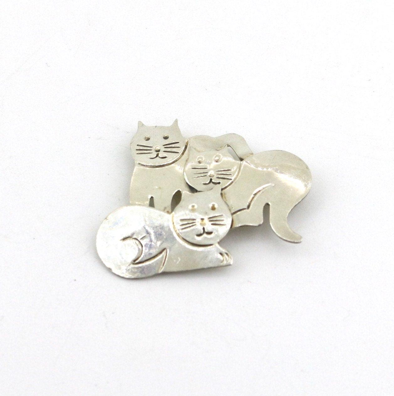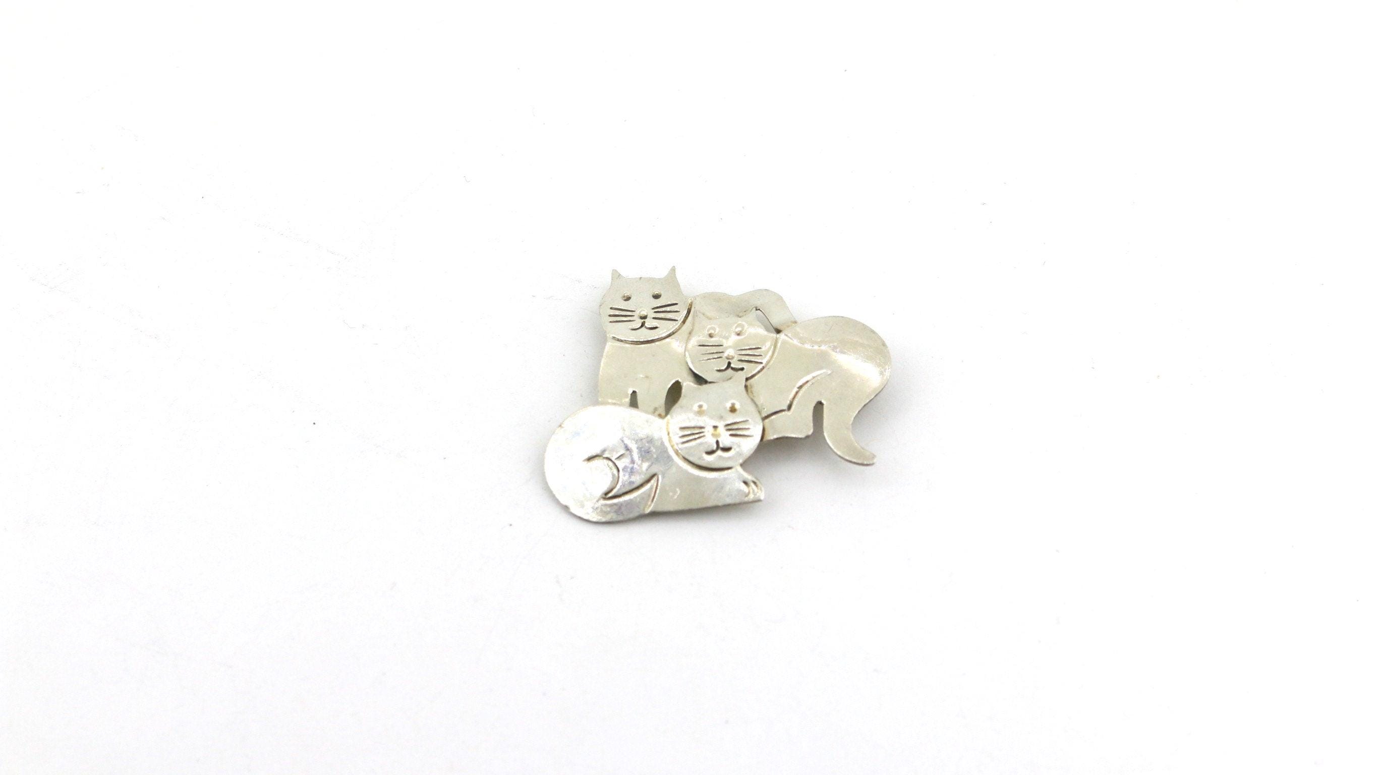 This is Vintage Three Cats Kitty Kittens Feline Animal Design Brooch