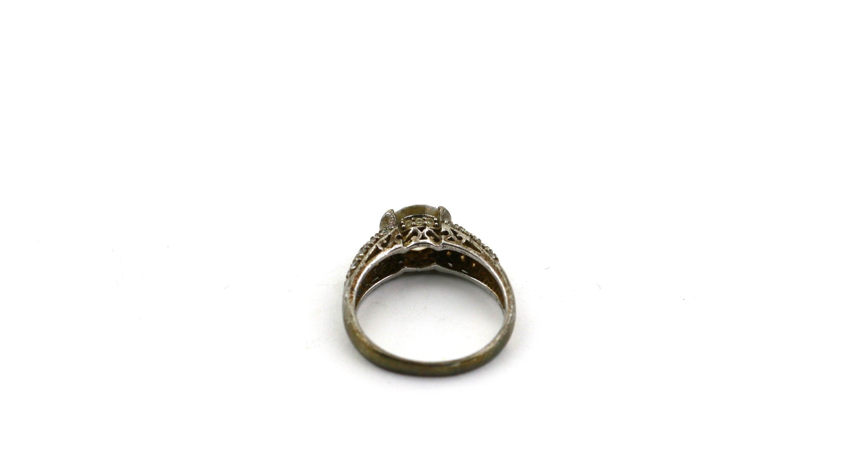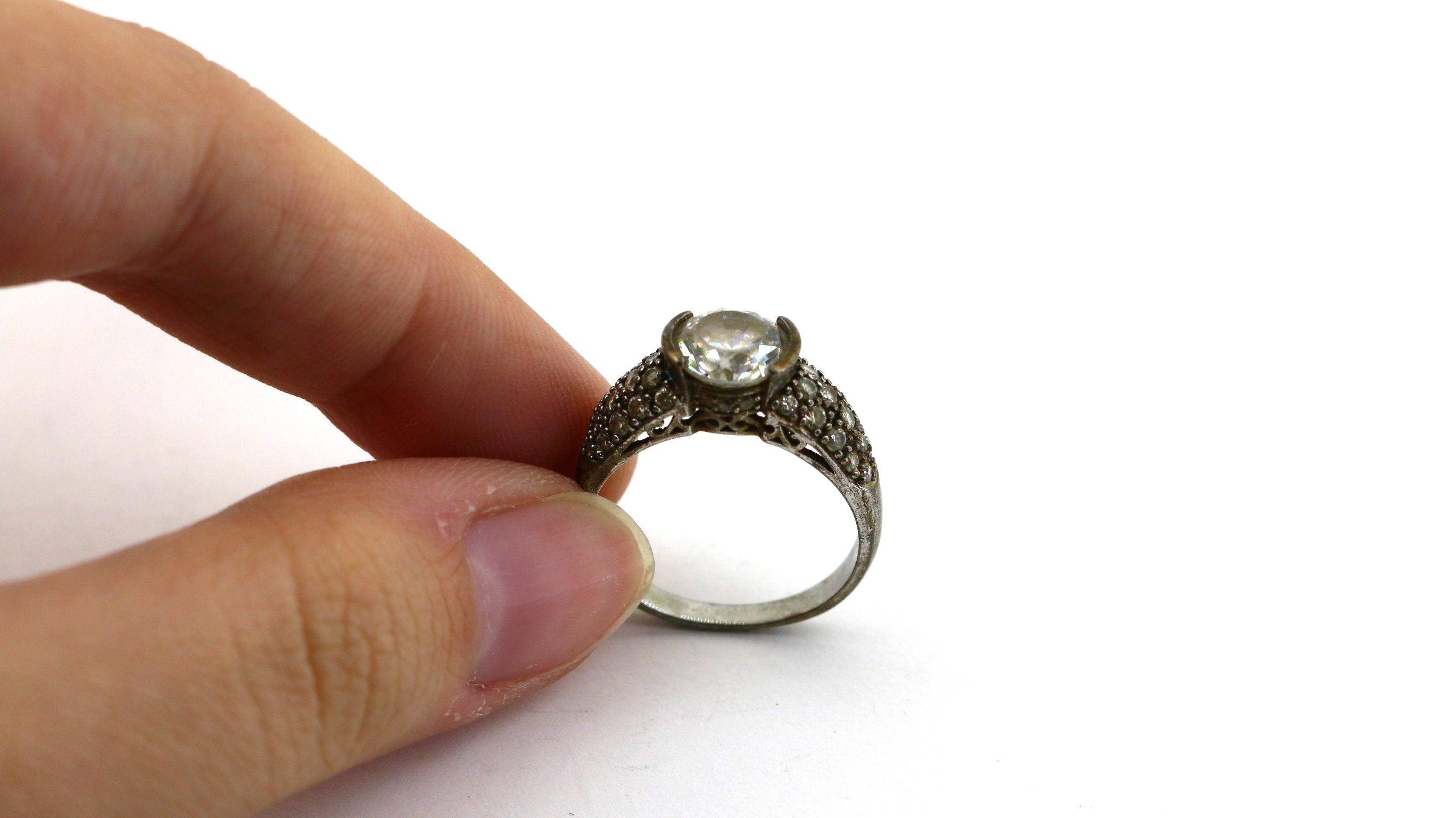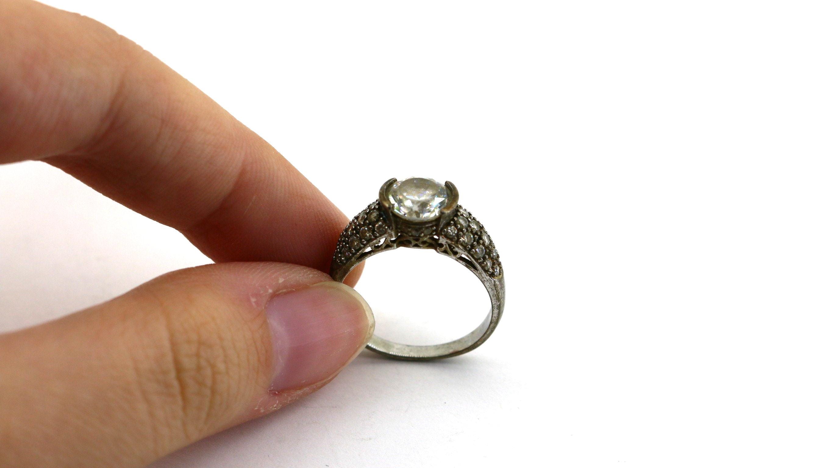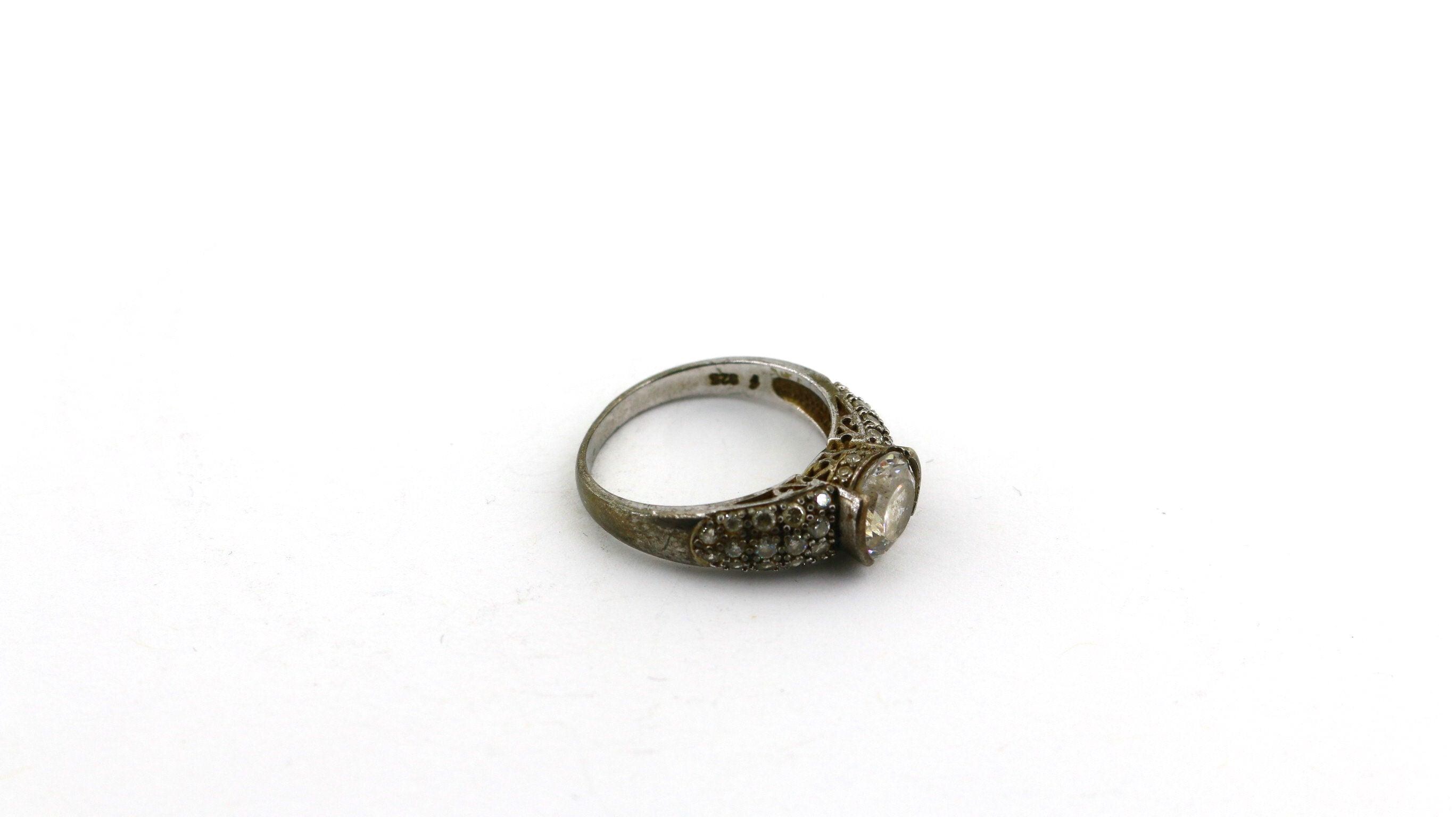 This is Vintage Sparkling Round White Crystals CZ Tarnished Design Ring