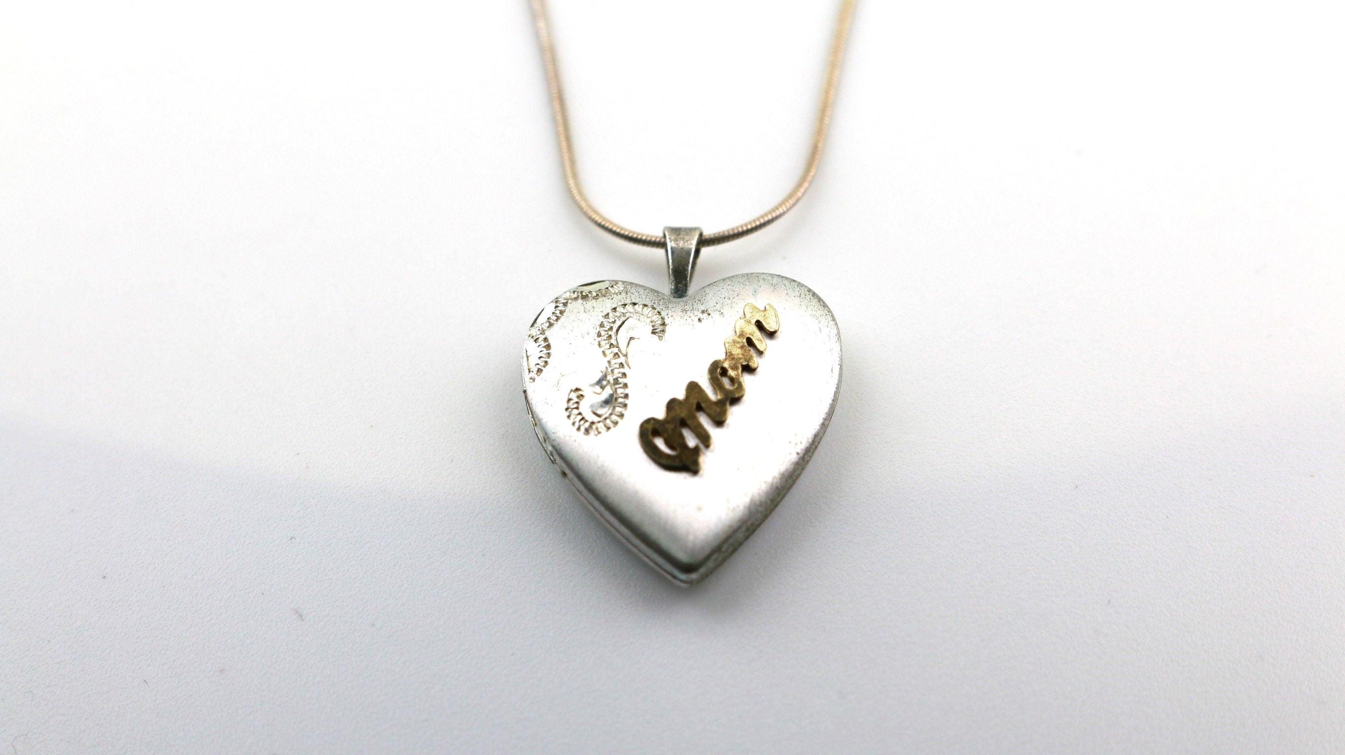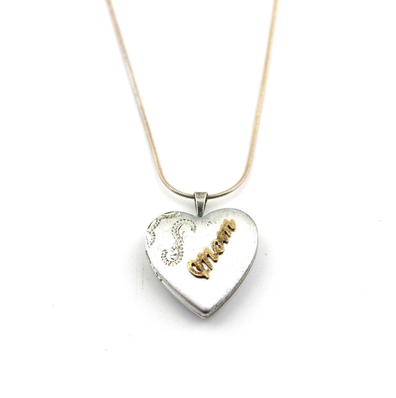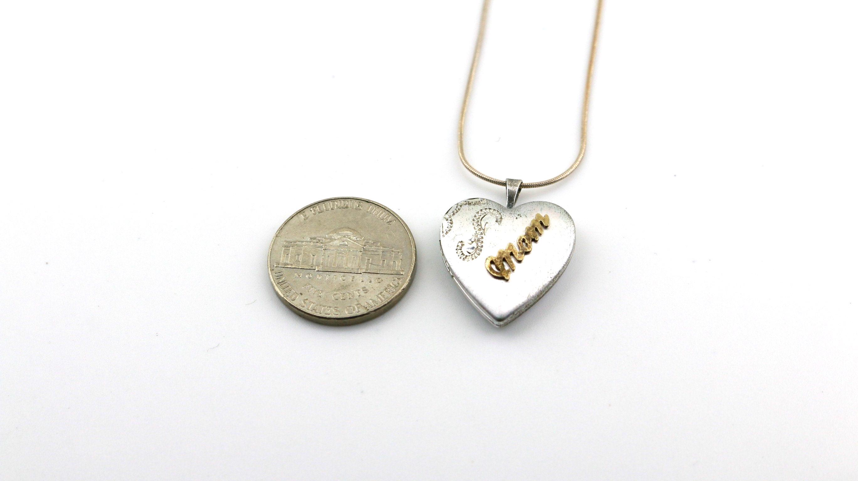 This is Vintage 14K Yellow Gold Word Mom Puffy Heart Locket Design Necklace