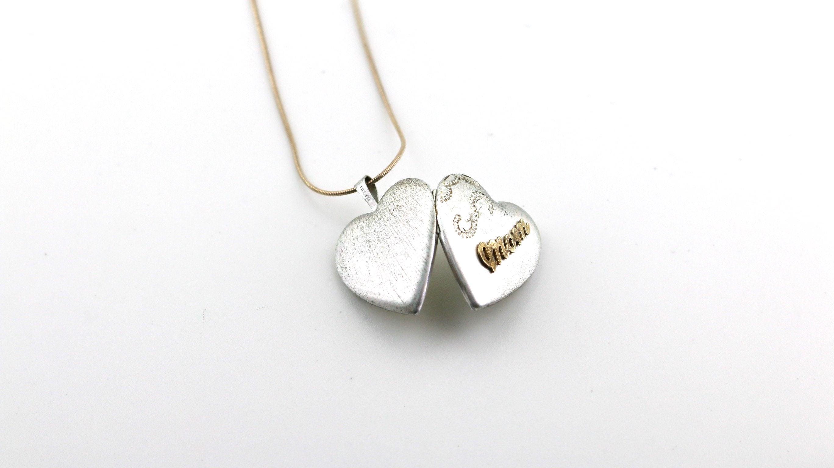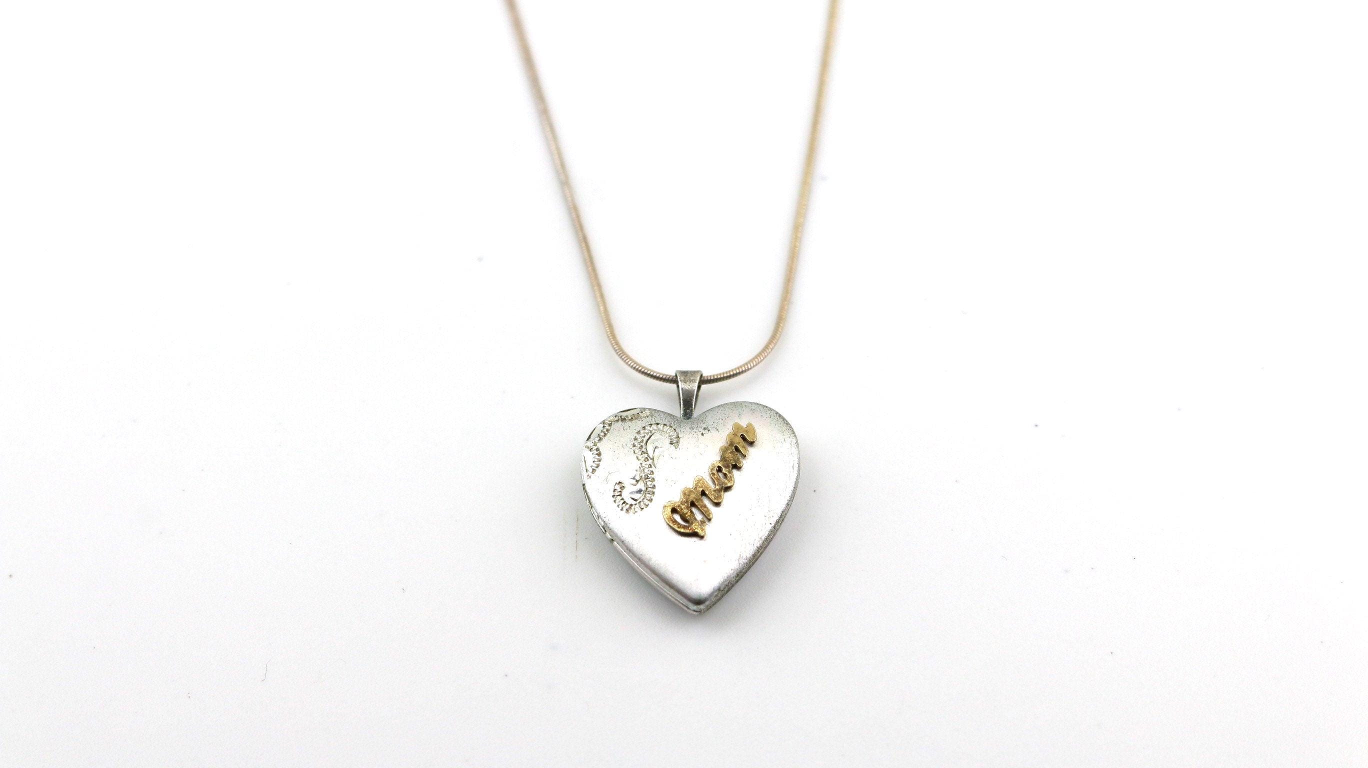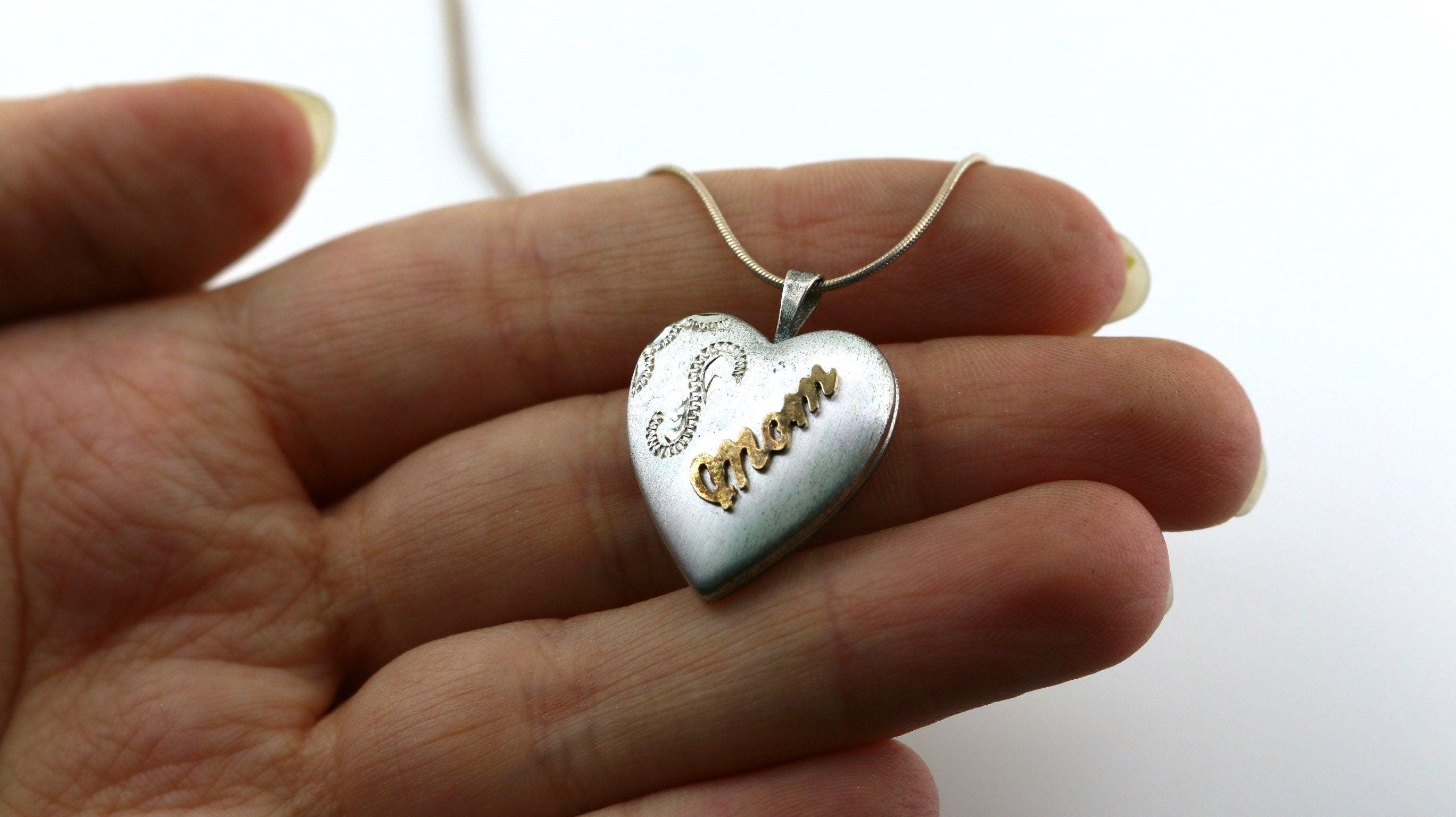 This is Vintage 14K Yellow Gold Word Mom Puffy Heart Locket Design Necklace