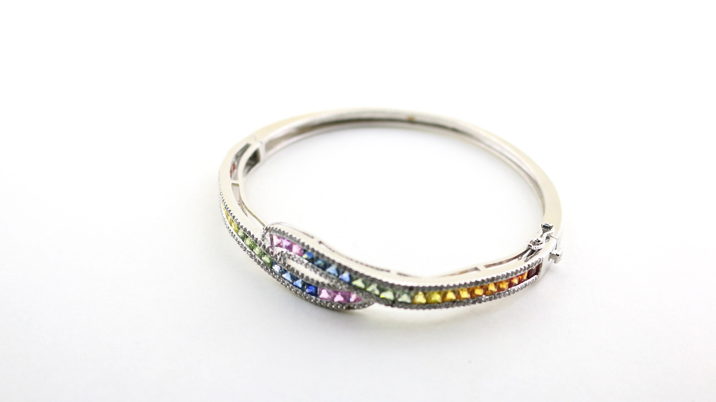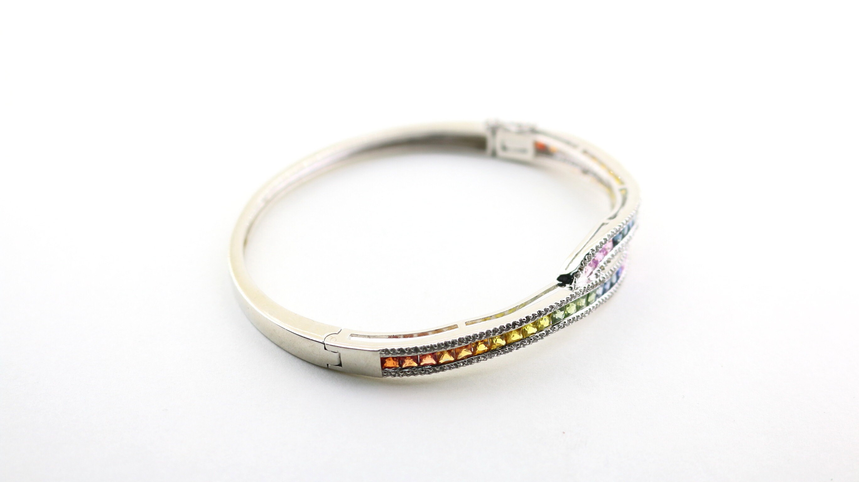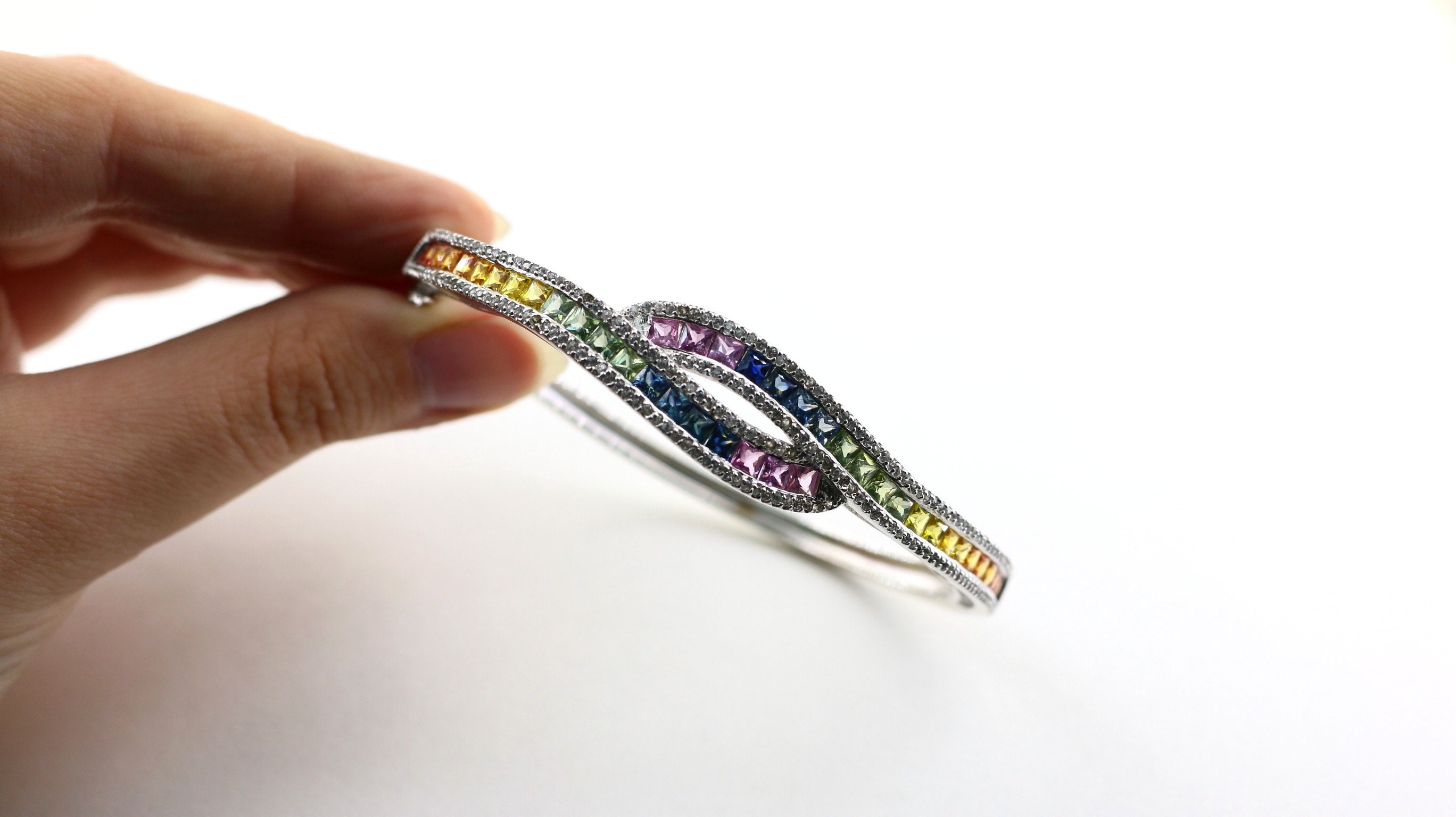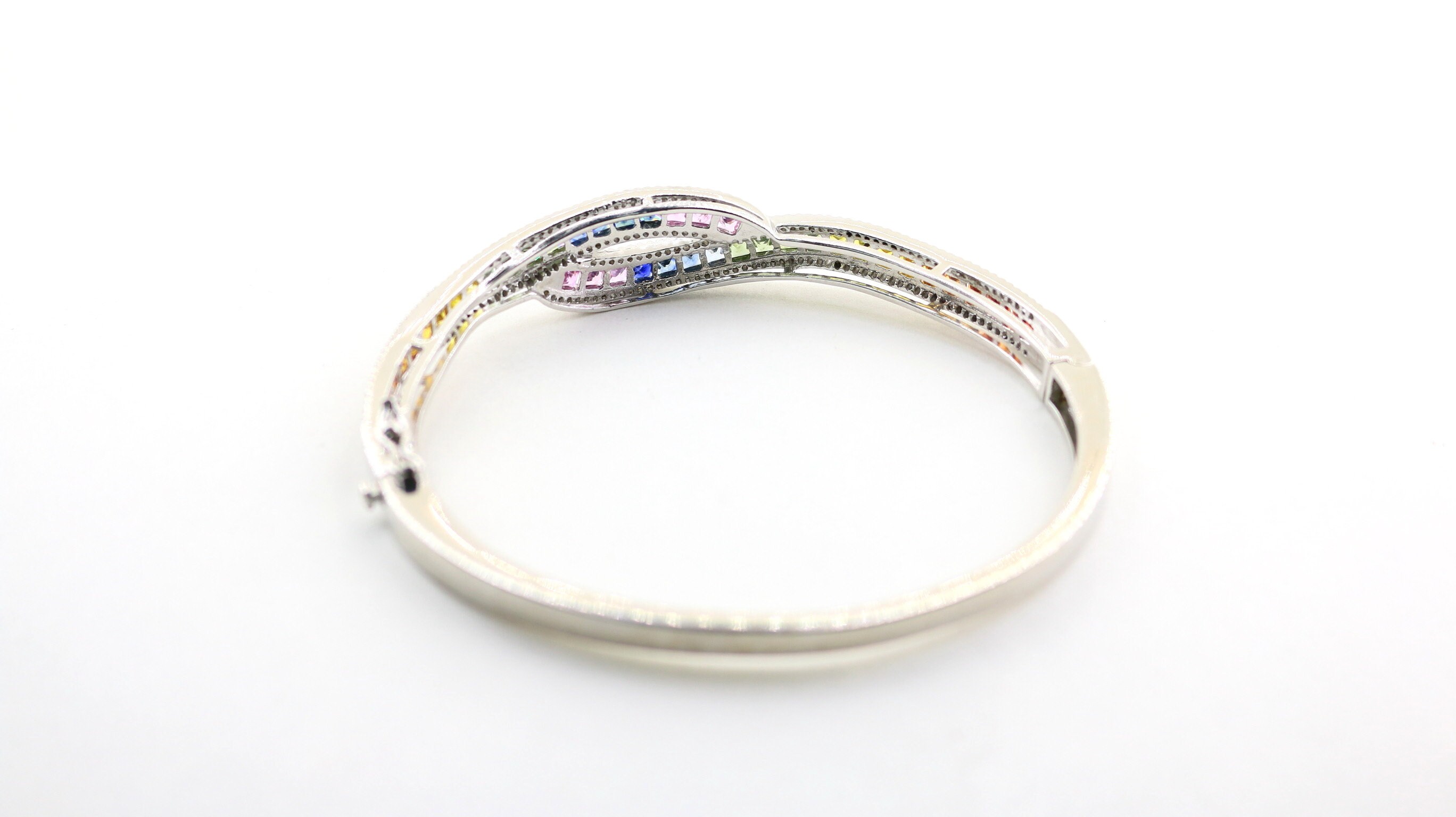This is Vintage D'Joy Signed Multicolor Sparkling Rainbow Swarovski Crystals Large Design Bracelet