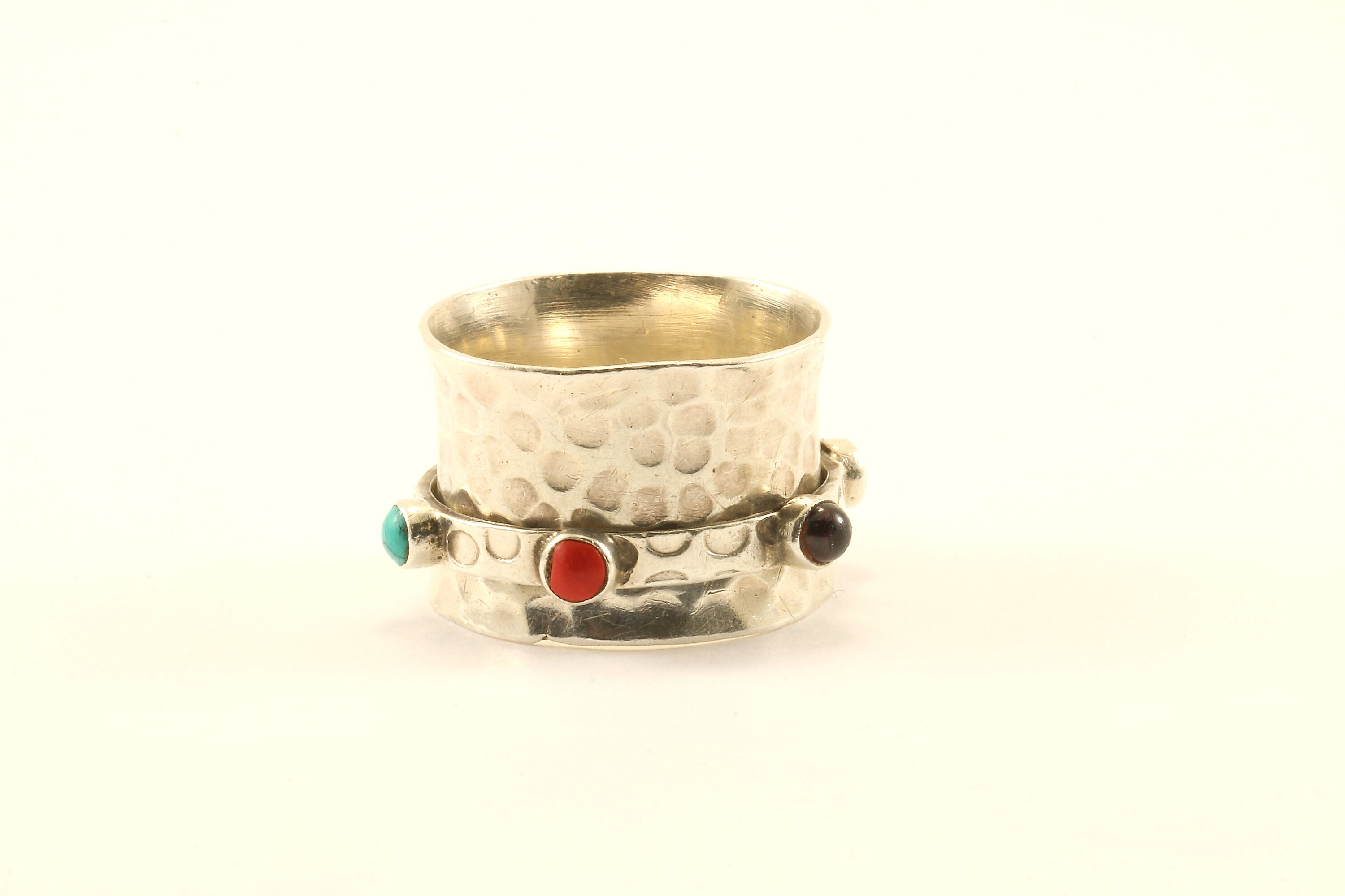 This is Vintage Band Ring | Multi Stone Multi Color Hammered Design Band Ring Size 7.75 | Sterling 925 Silver Ring RG 3163