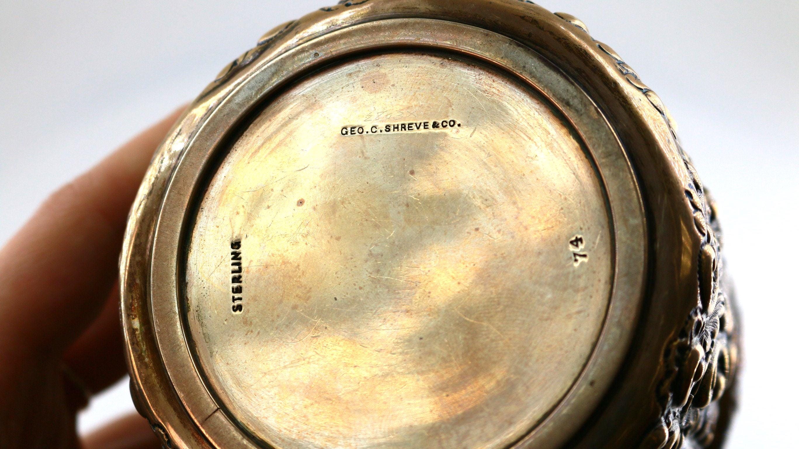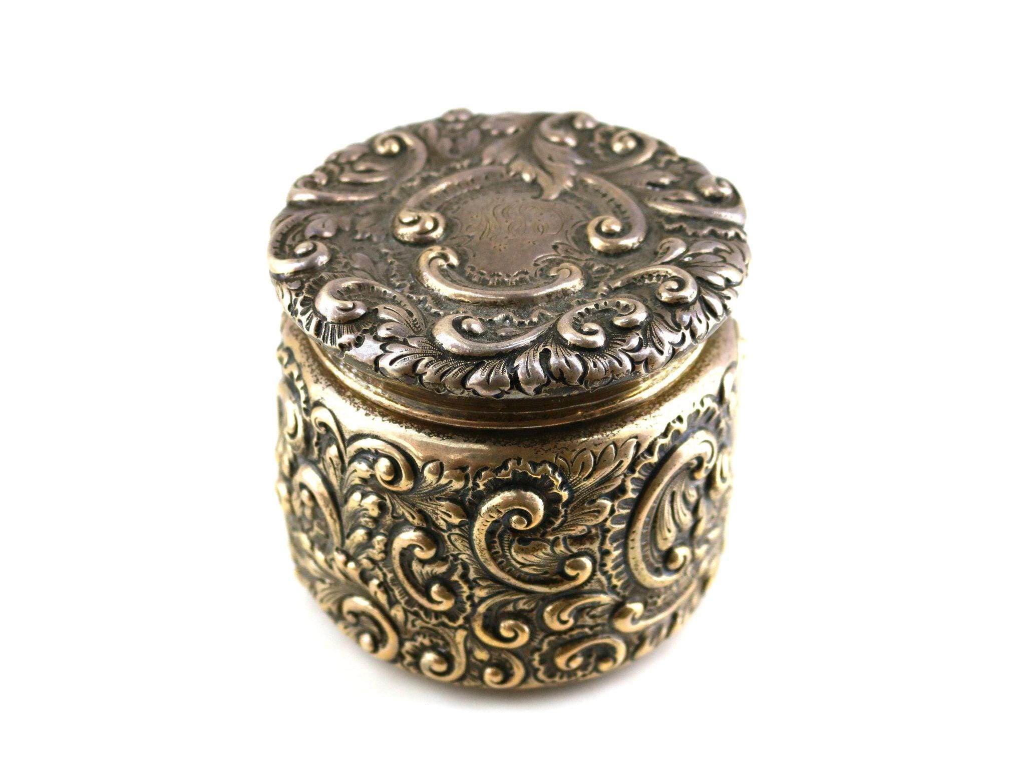 This is Stunning Antique 1874 Geo C Shreve & Co Leaf Floral Scroll Powder Candy Jewelry Box