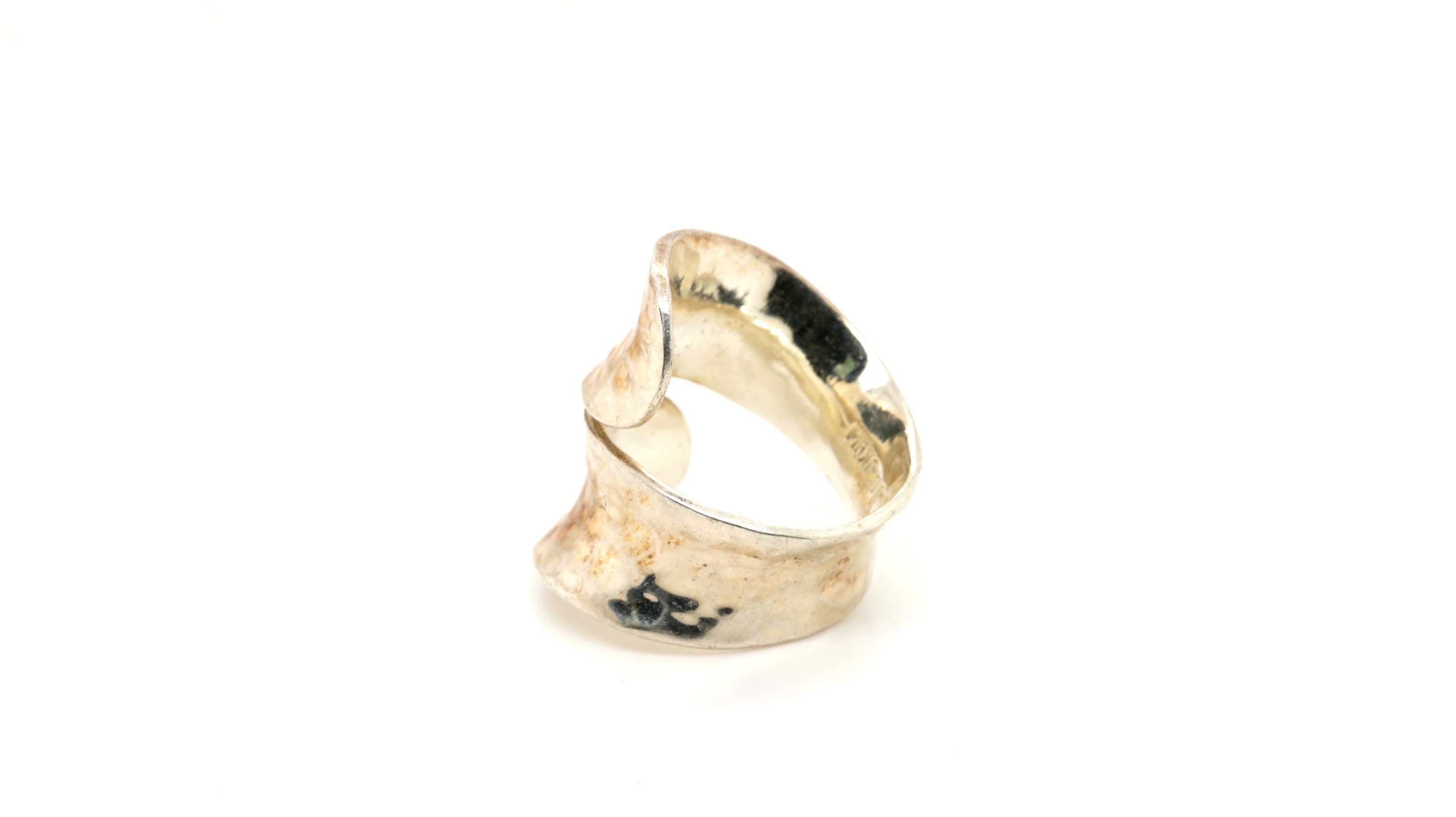 This is Vintage Handmade Abstract Curve Design Hammered Massive 925 Sterling Silver Statement Ring