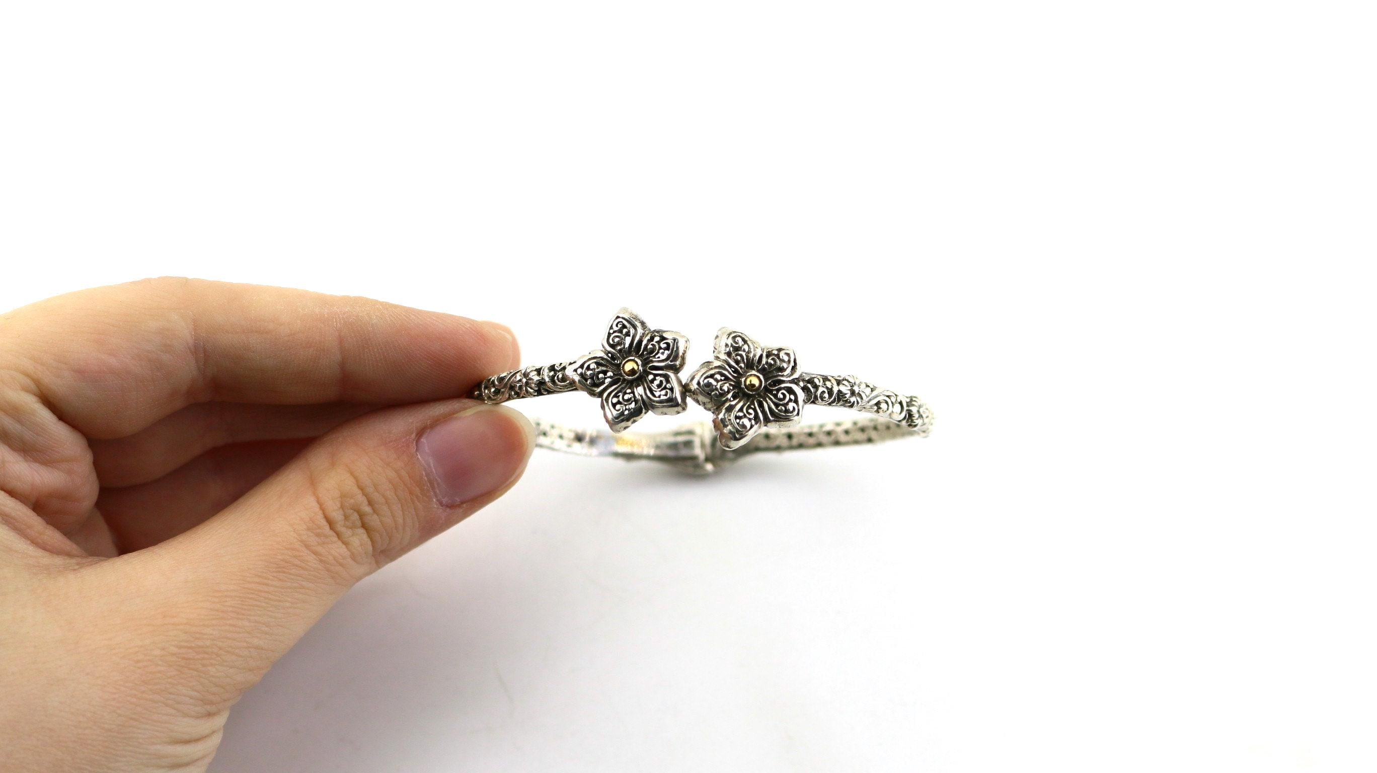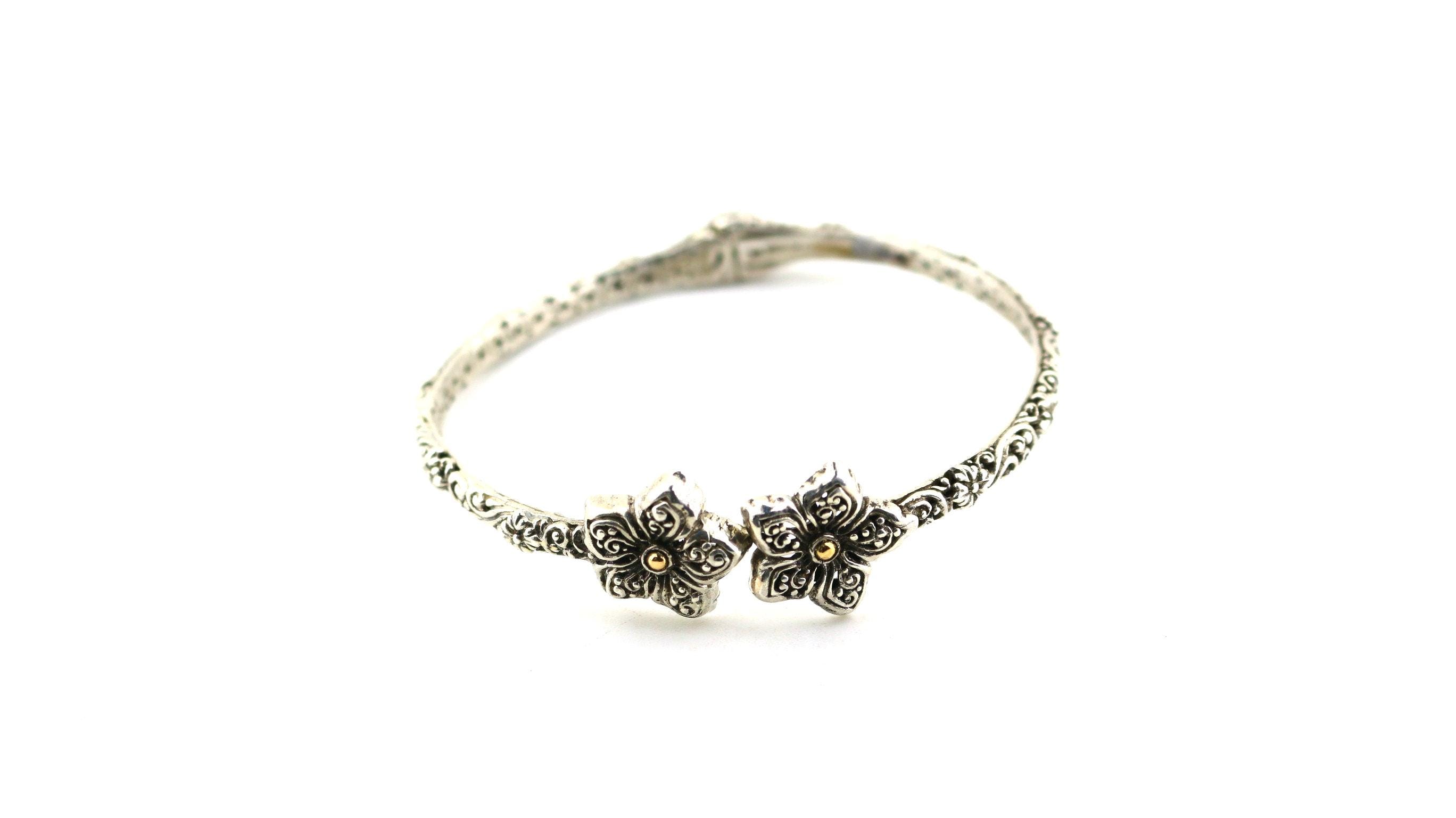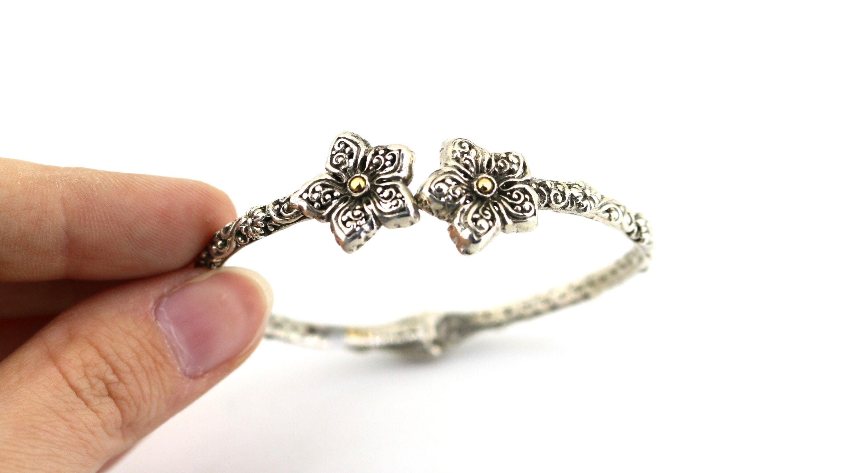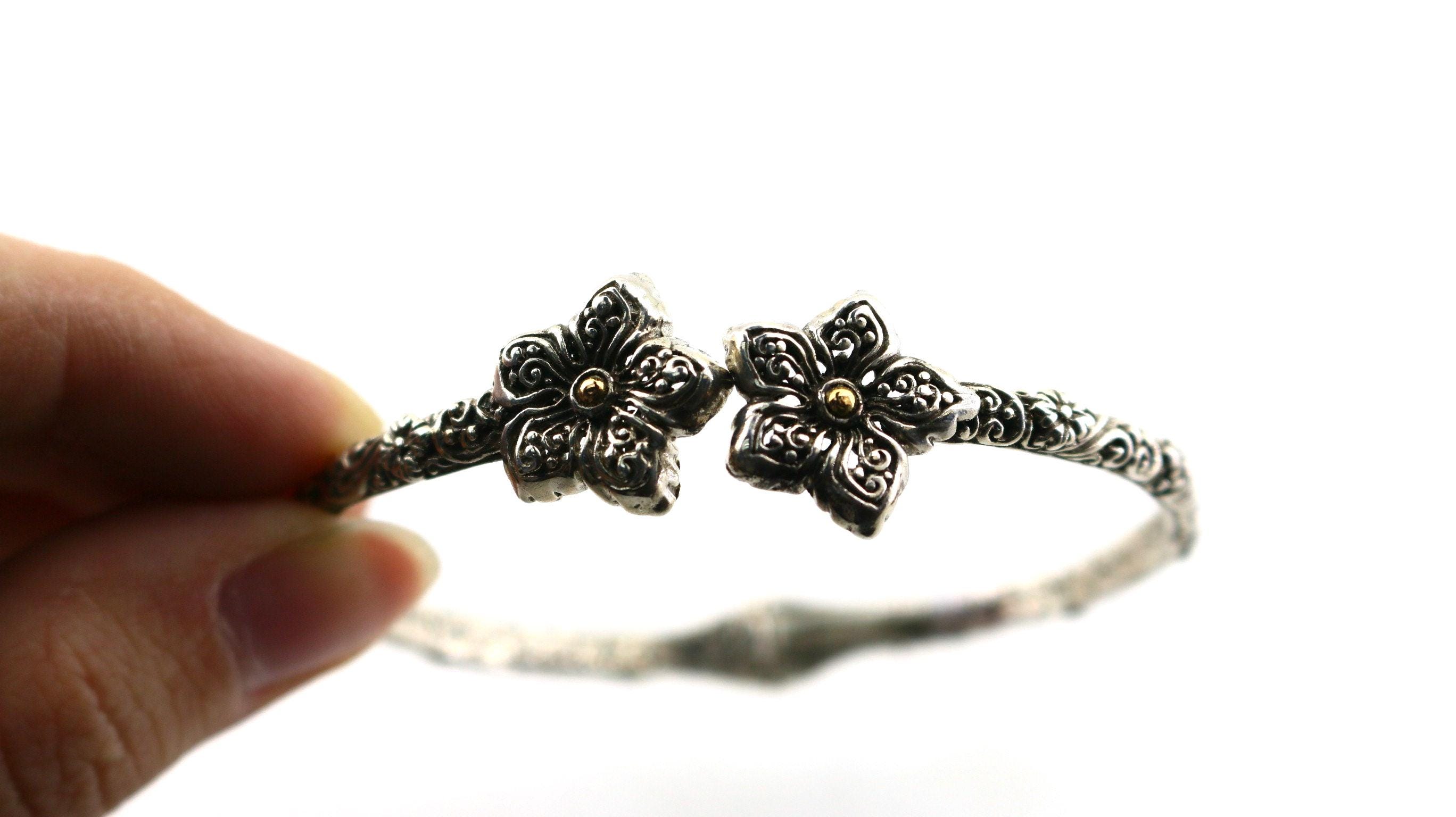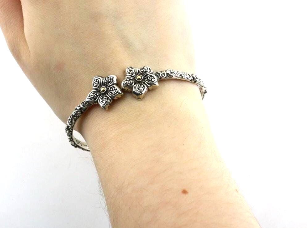 This is Vintage Beautiful 18k Gold Flower Floral Design Bangle Bracelet Sterling 925 Silver Br 2224