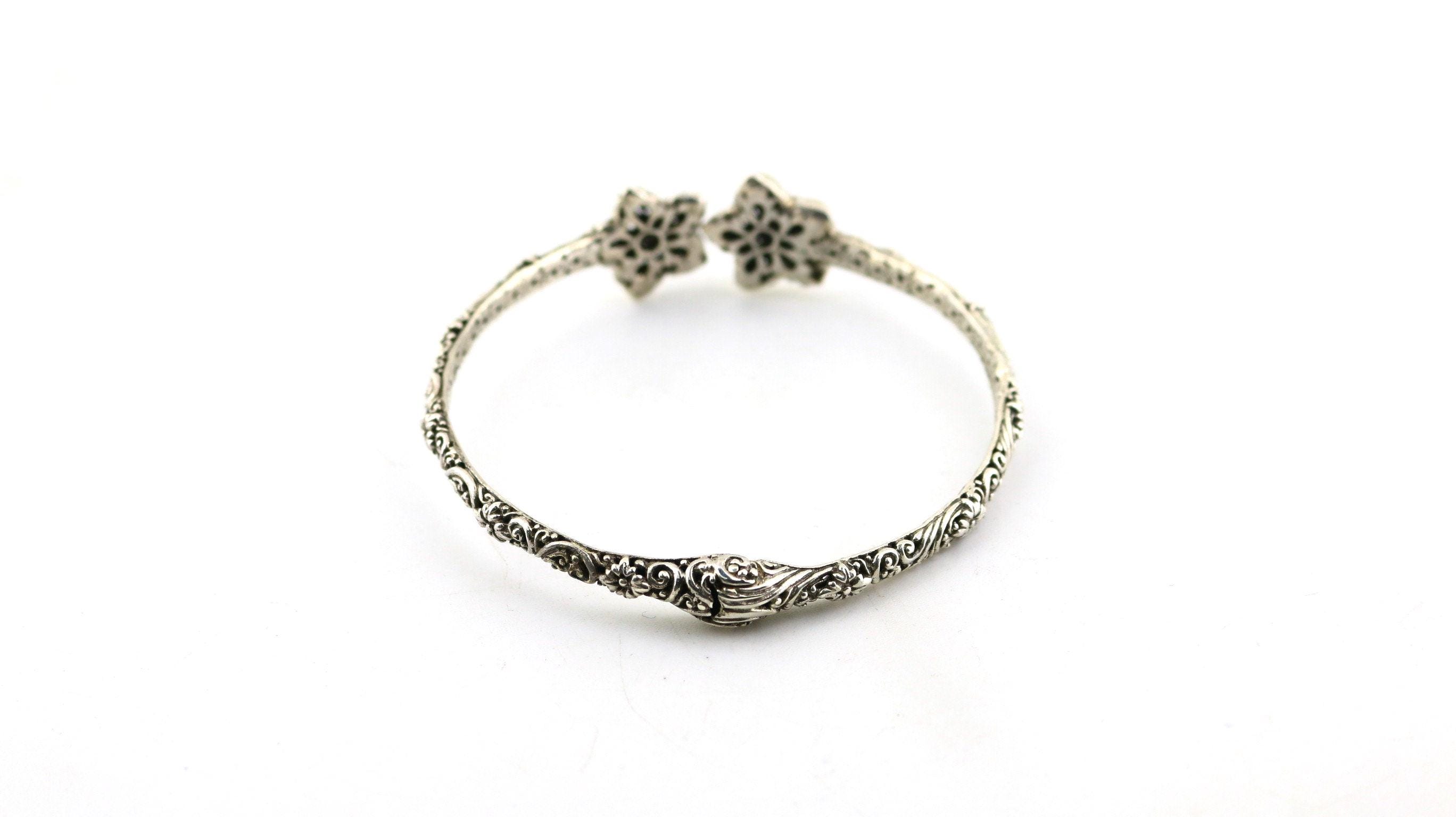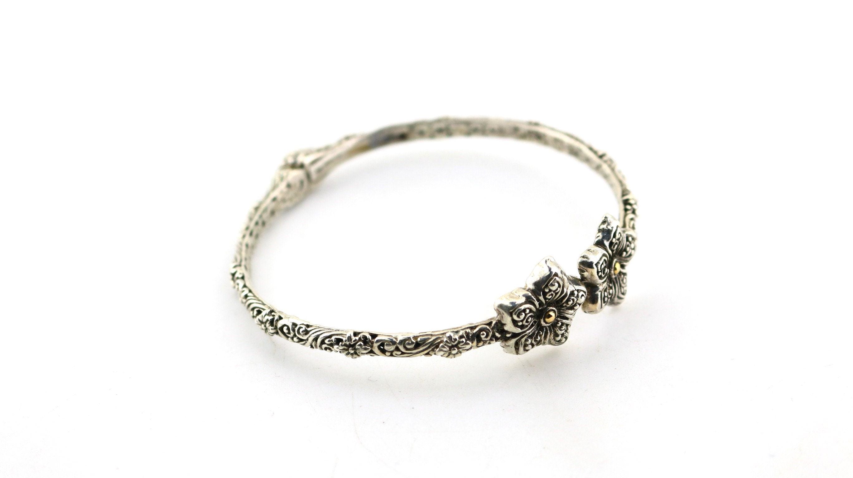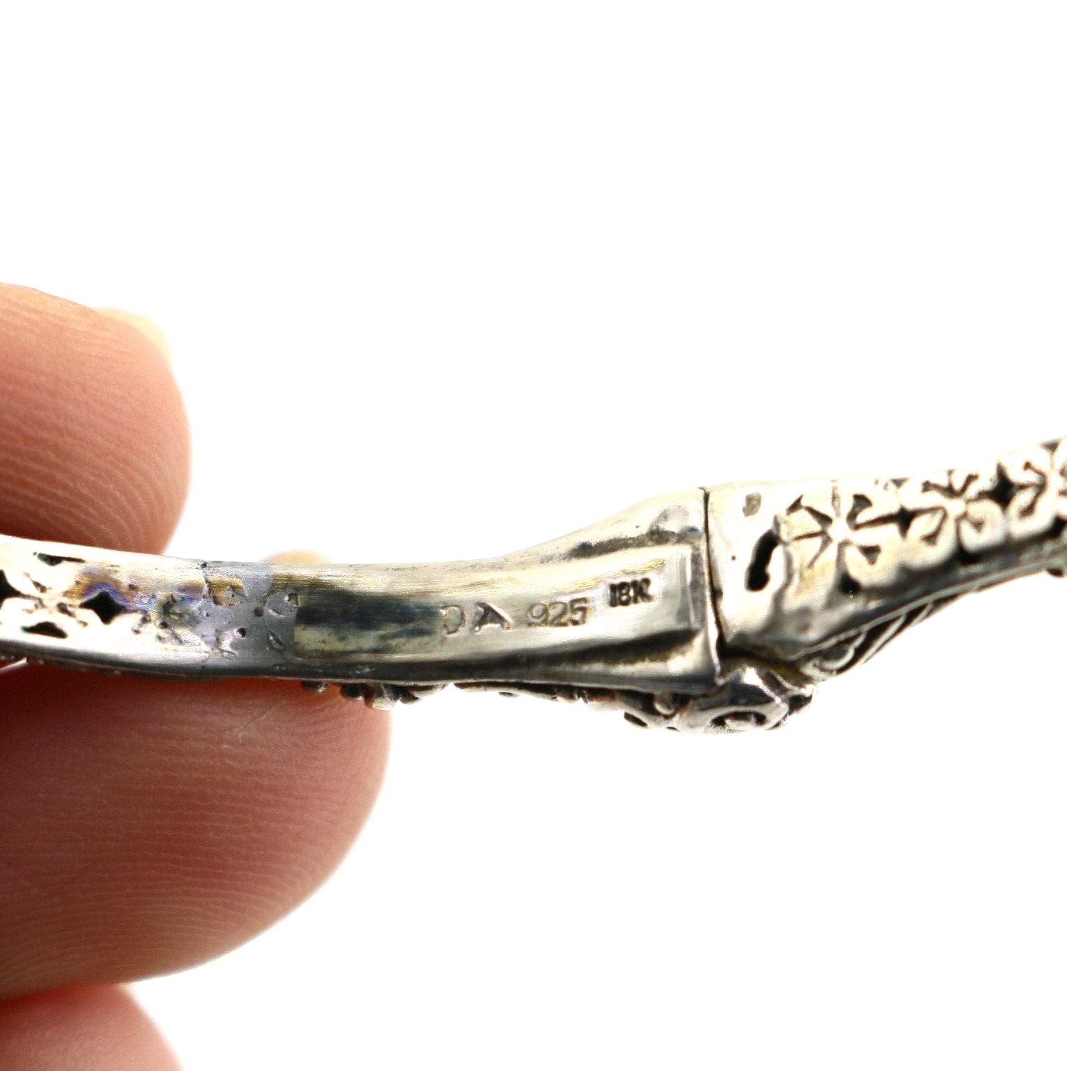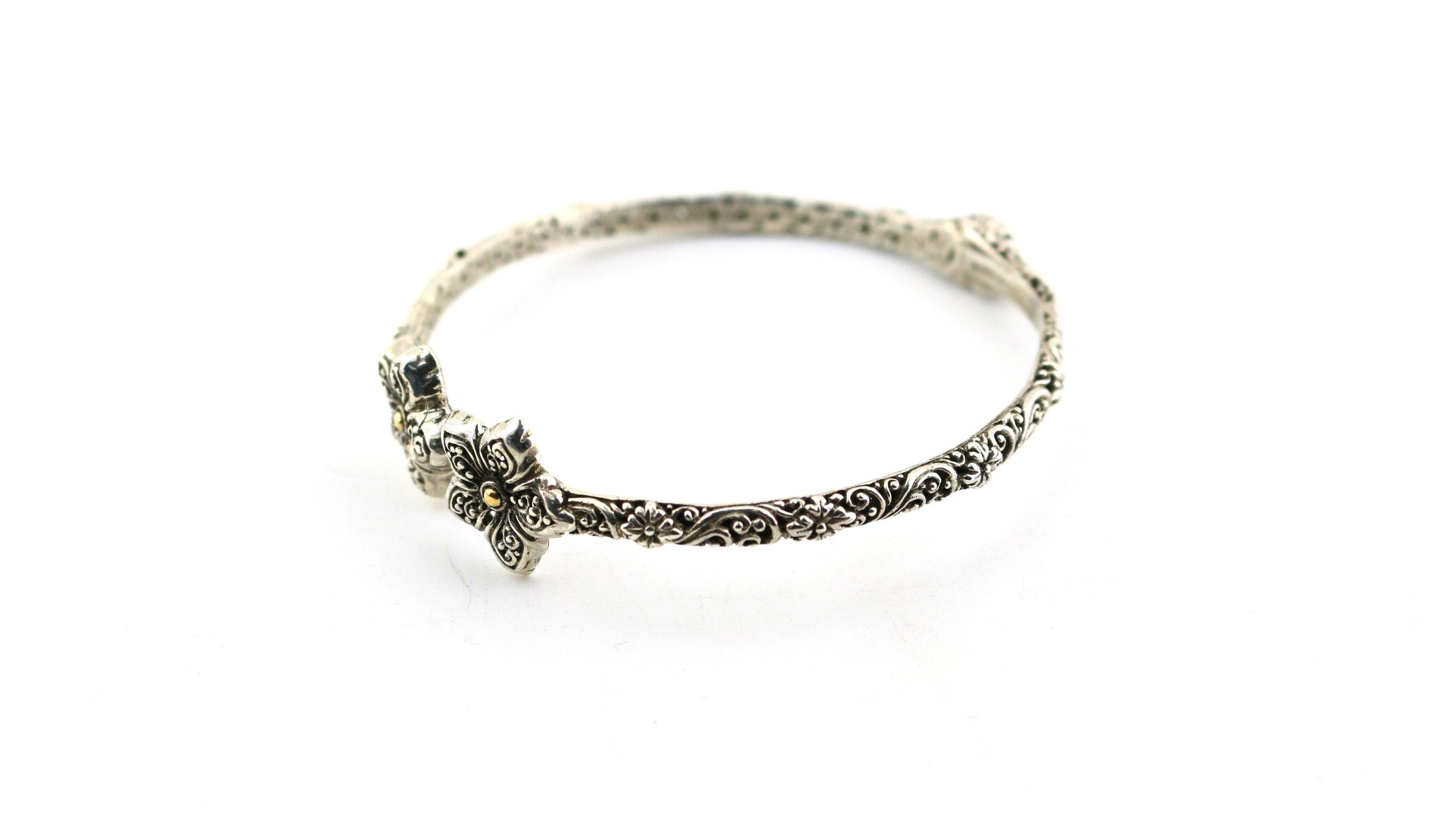 This is Vintage Beautiful 18k Gold Flower Floral Design Bangle Bracelet Sterling 925 Silver Br 2224