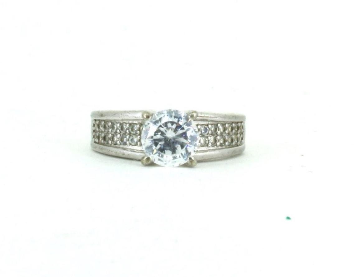 This is Vintage Size 8 Crystal CZ Engagement Ring 925 Sterling RG 3482