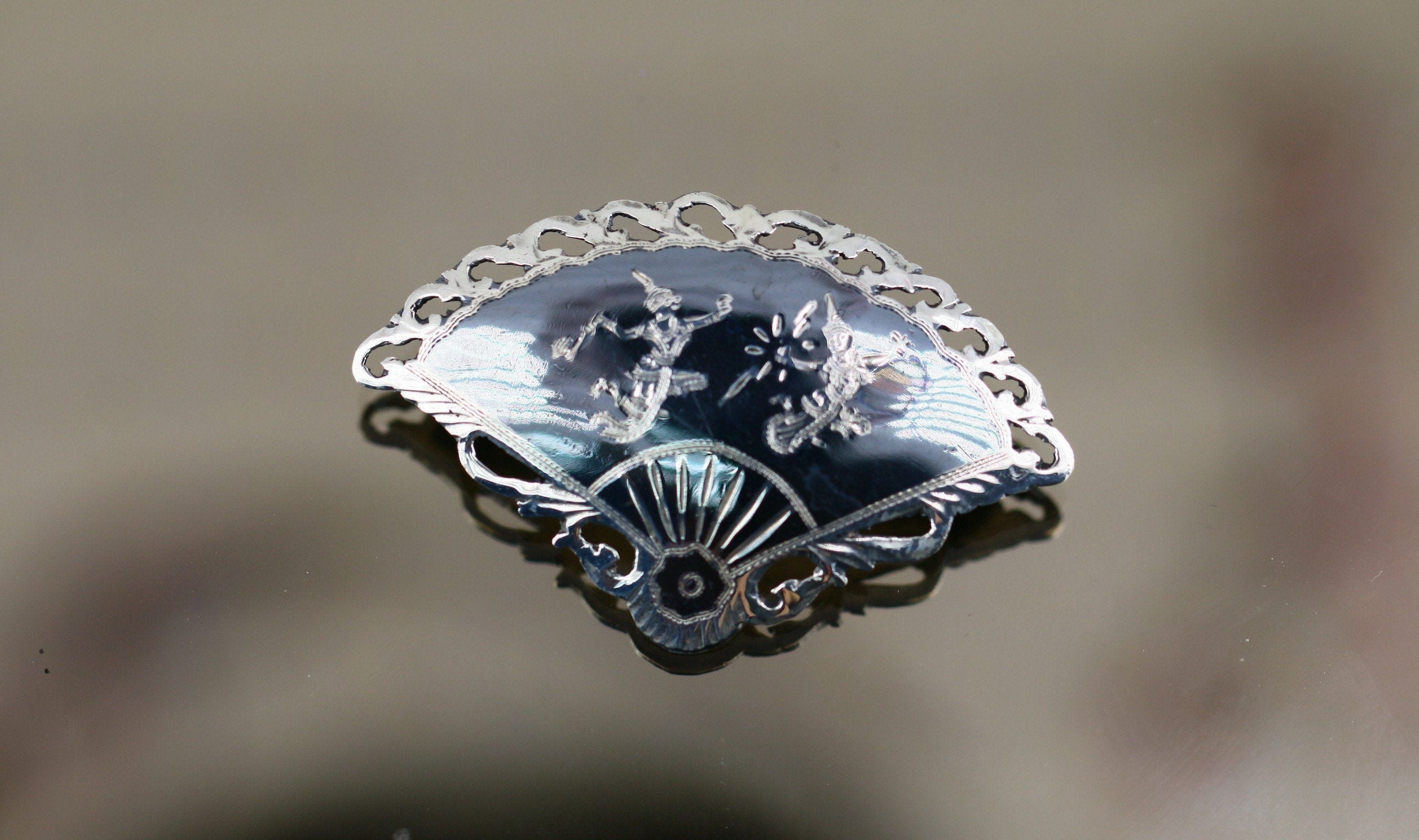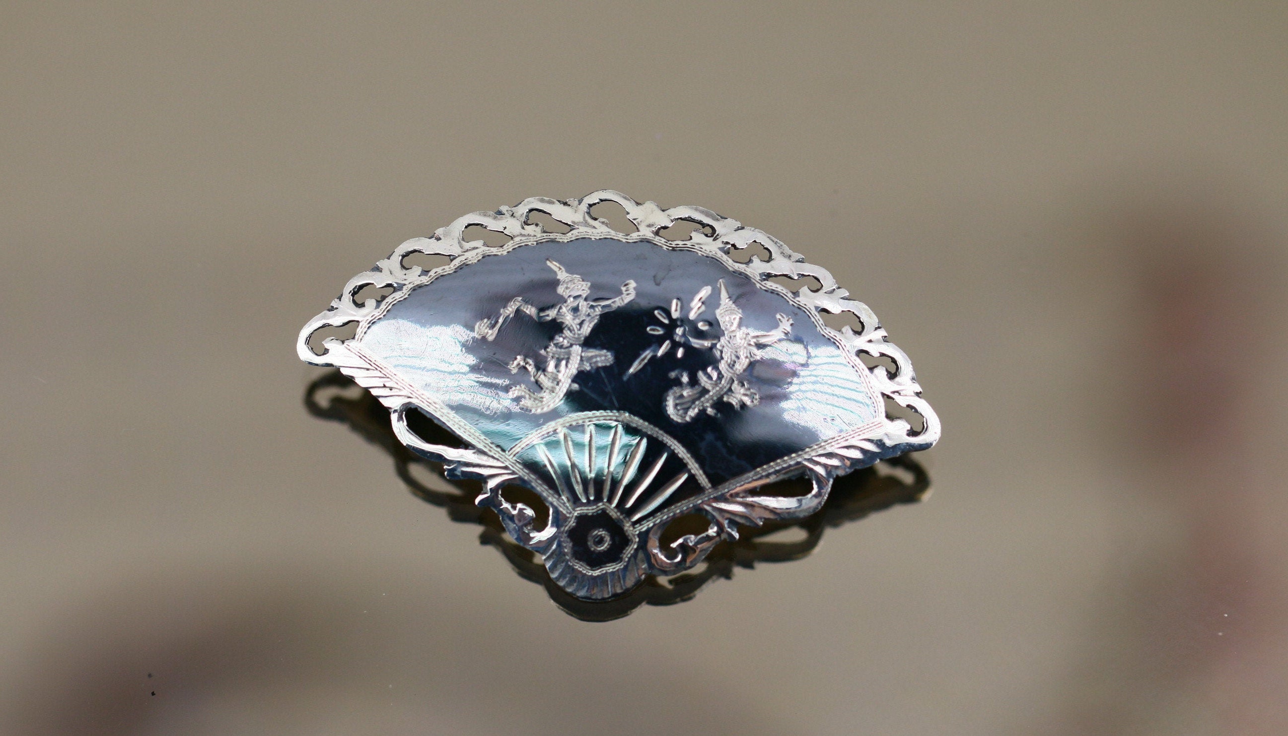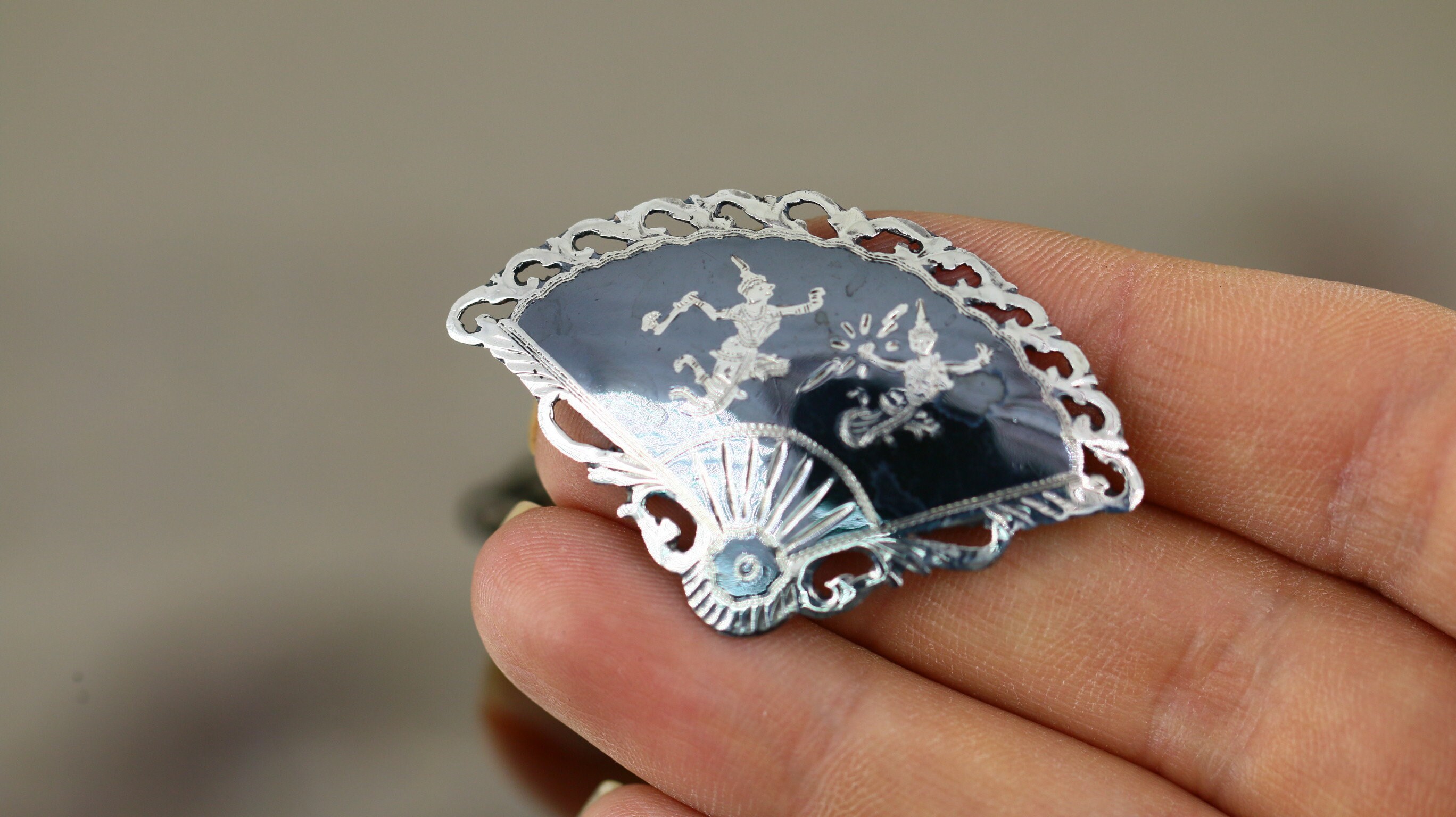 This is Vintage Beautiful Siam Niello Dancer Fan Design Brooch