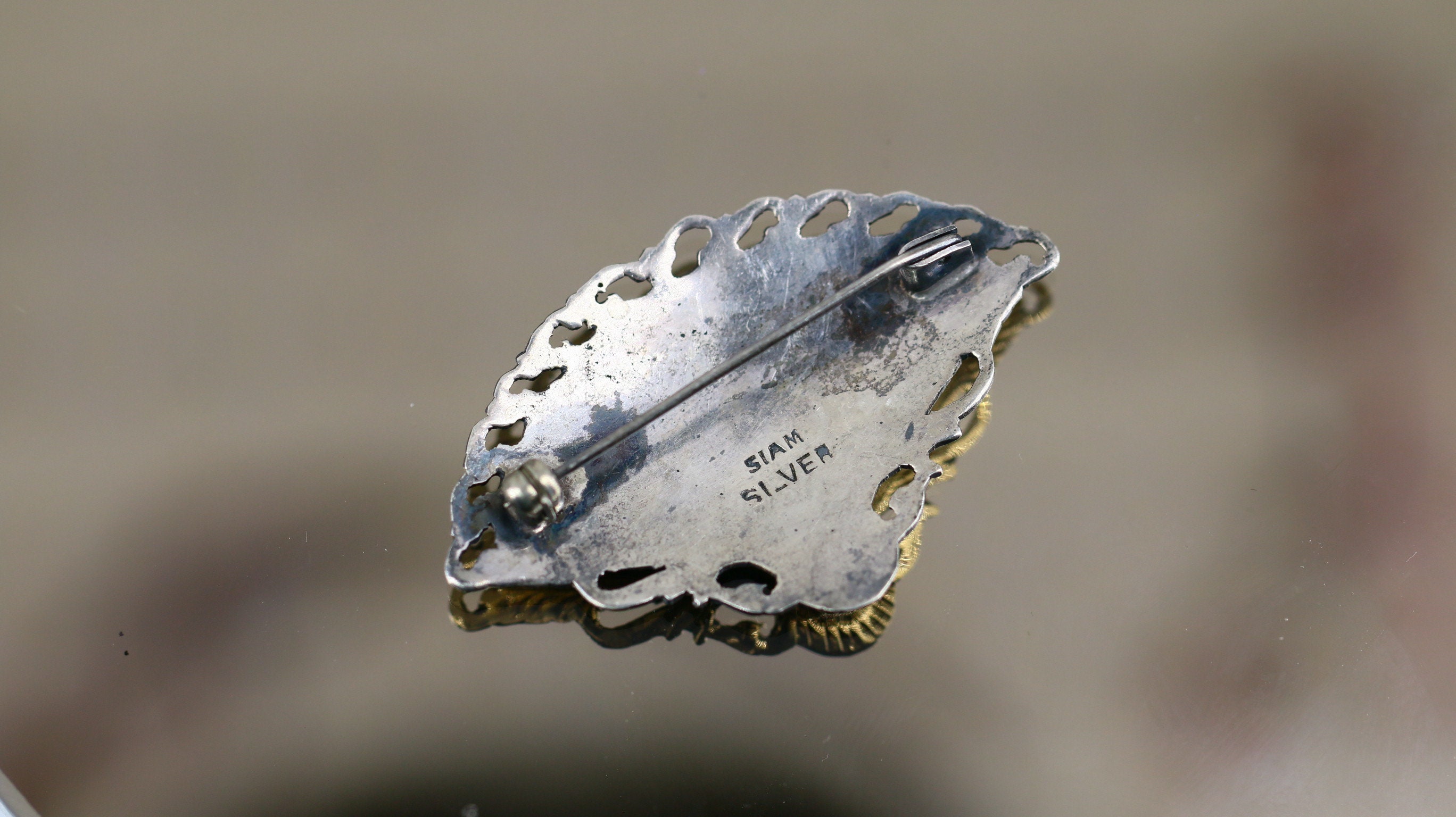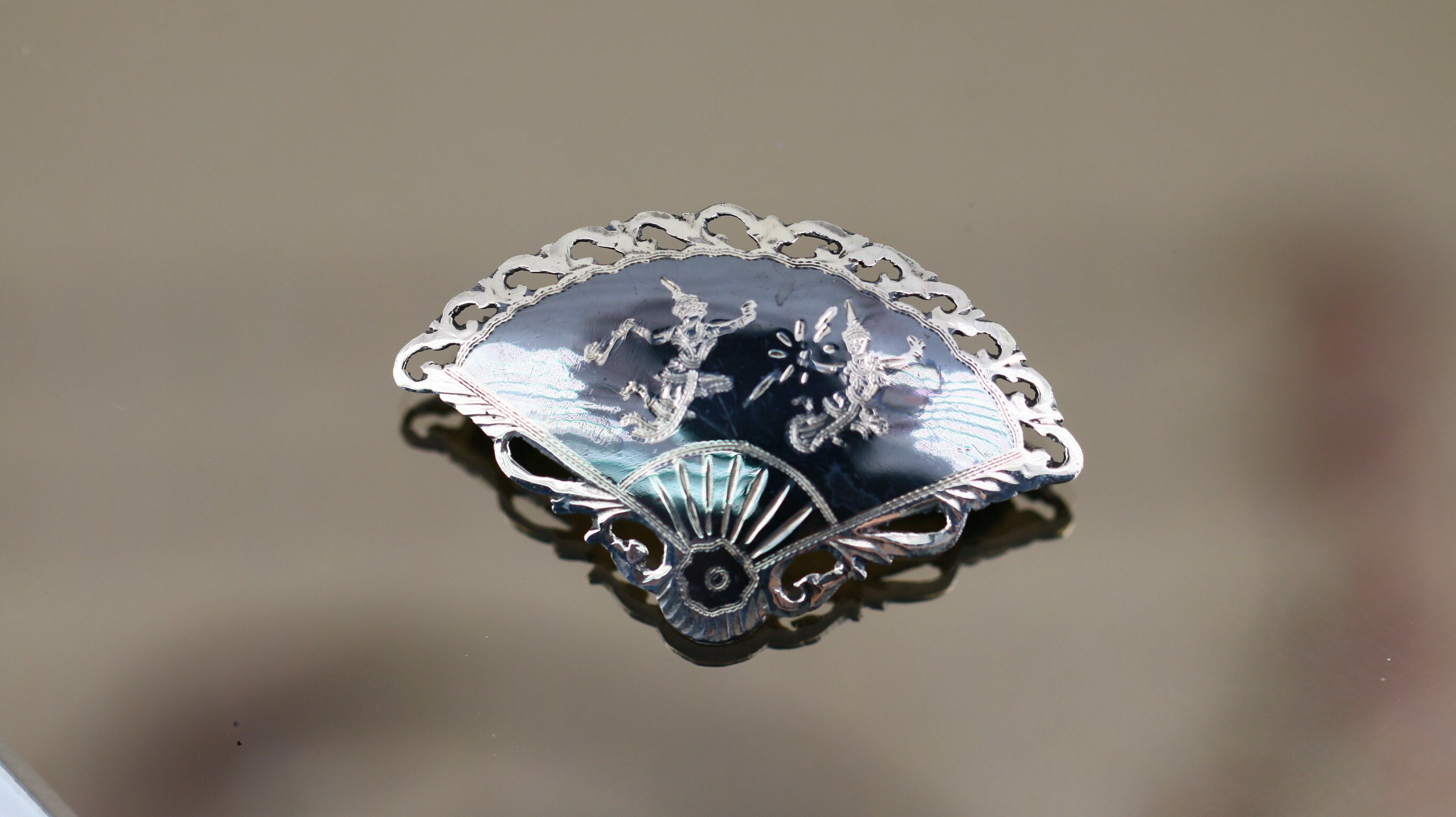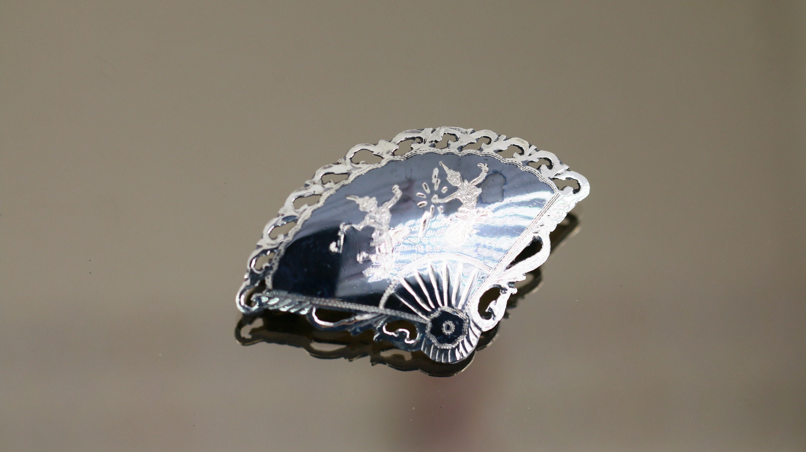 This is Vintage Beautiful Siam Niello Dancer Fan Design Brooch