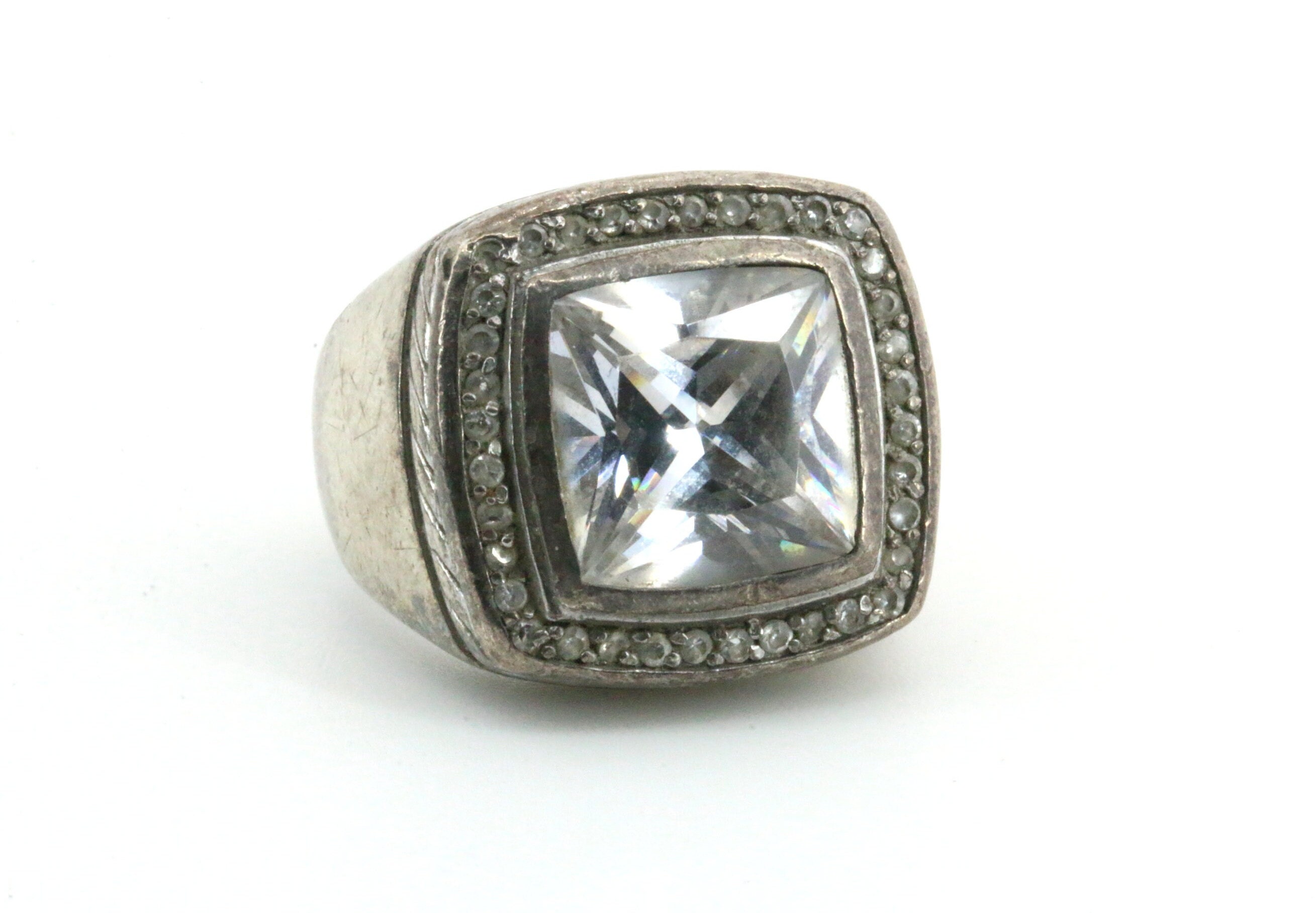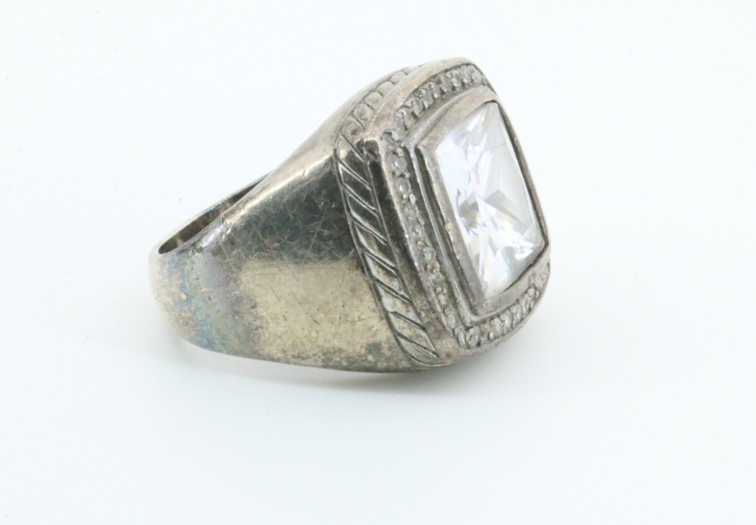 Vintage Wide Band Square Crystal Ring Size 7 3/4 925 Sterling Silver RG 1622