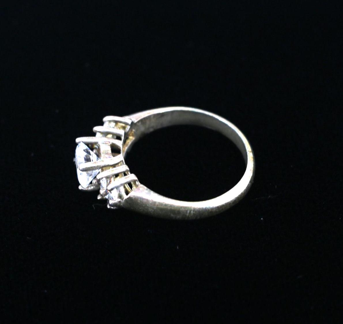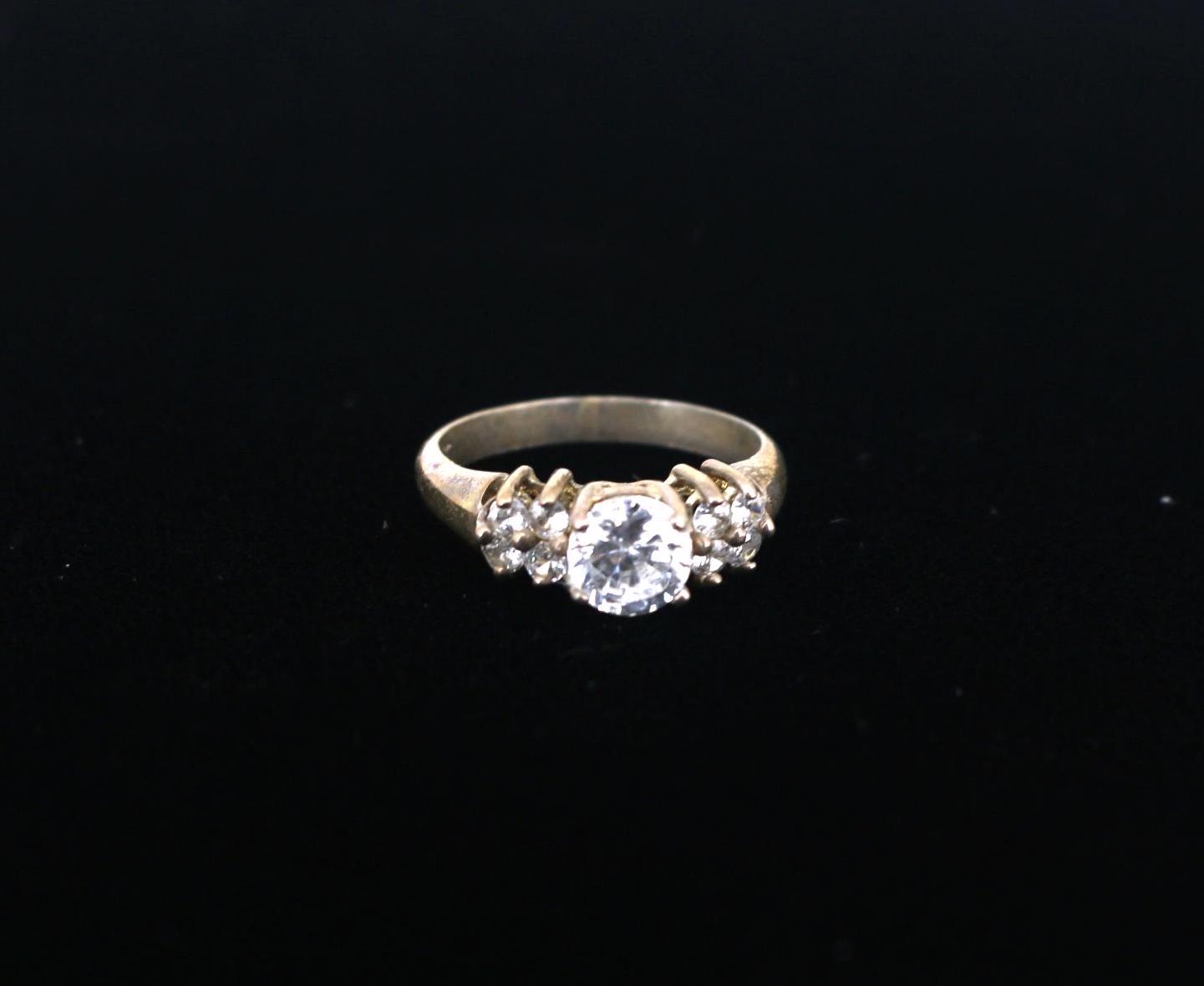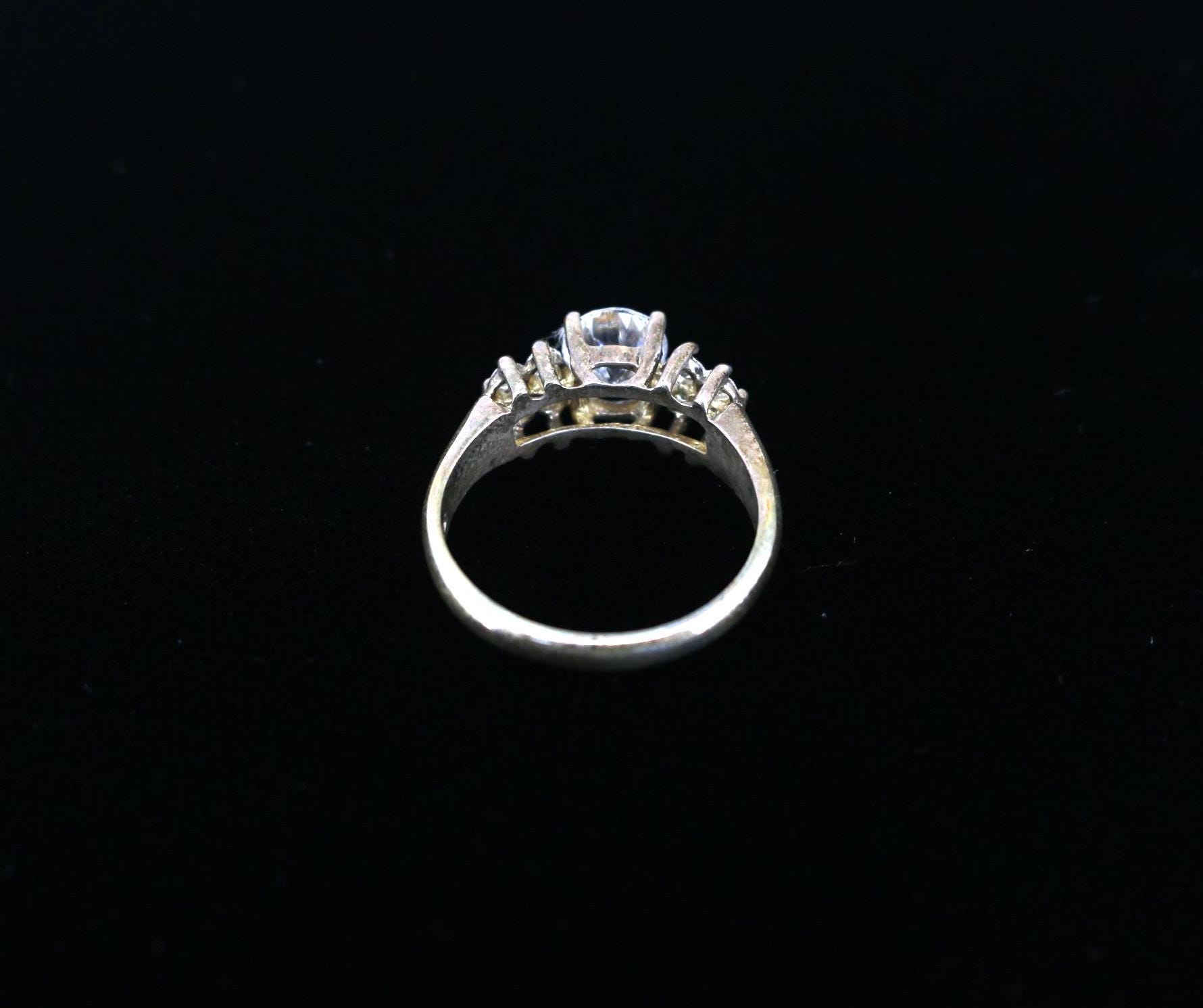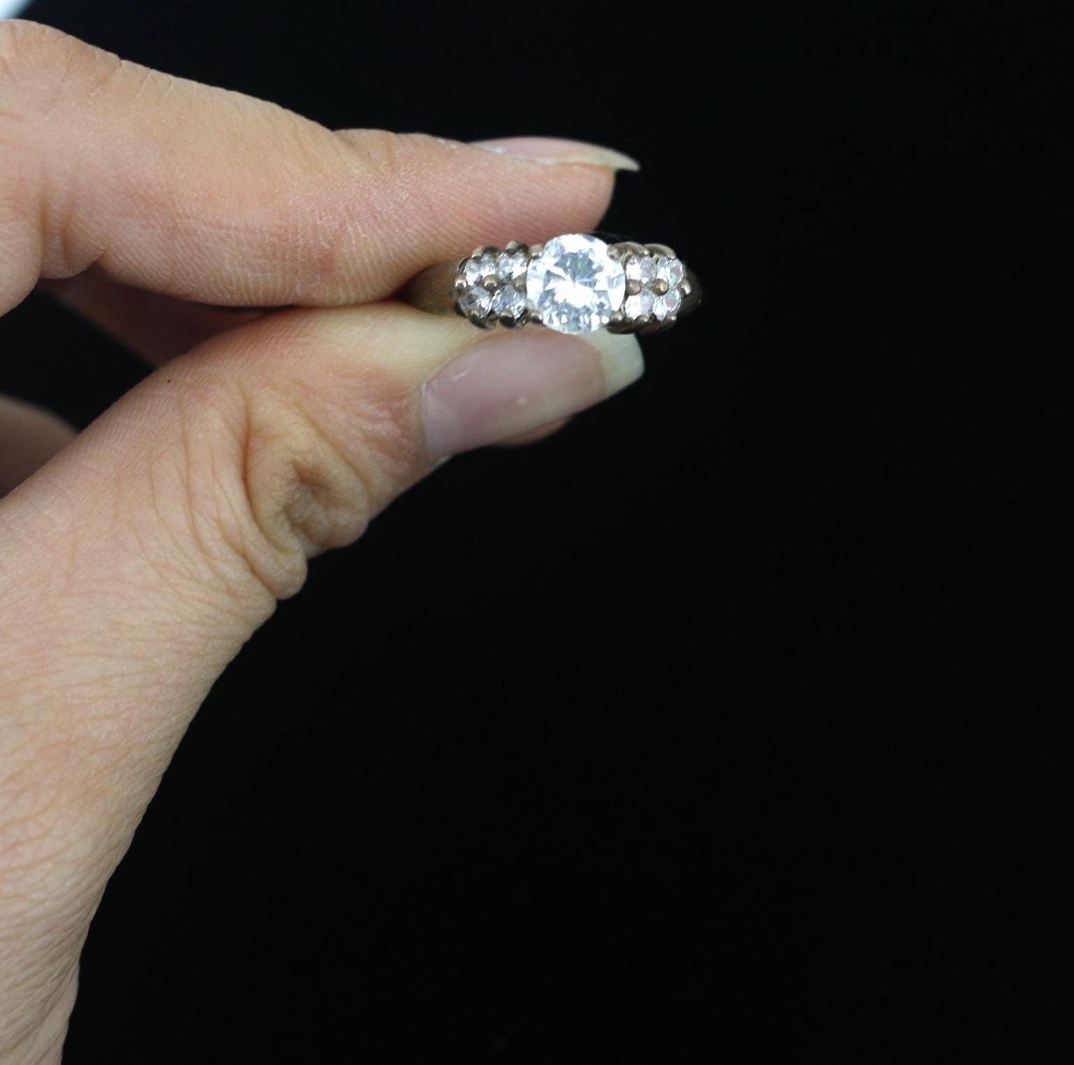 One Large Round& Eight White Crystals Vintage Engagement Ring Size 7 925 Sterling Silver RG 3003