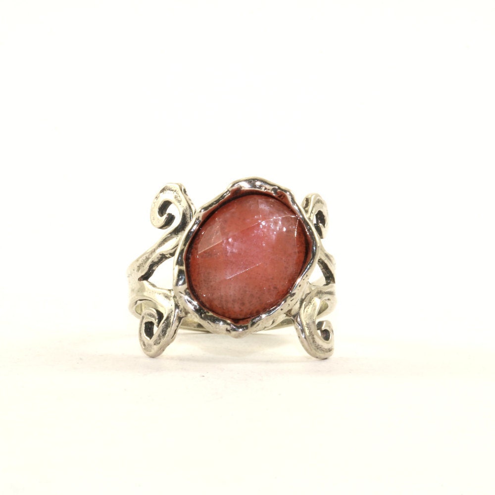 This is Vintage TL Signed Peach Color Crystal Scroll Design Ring