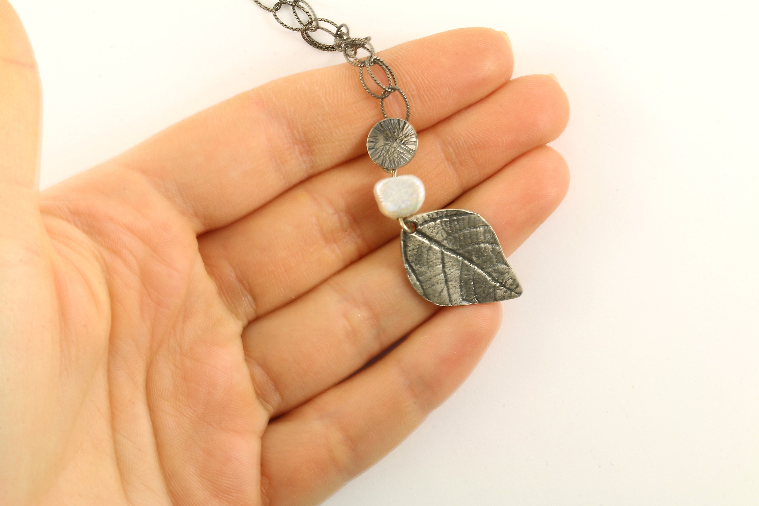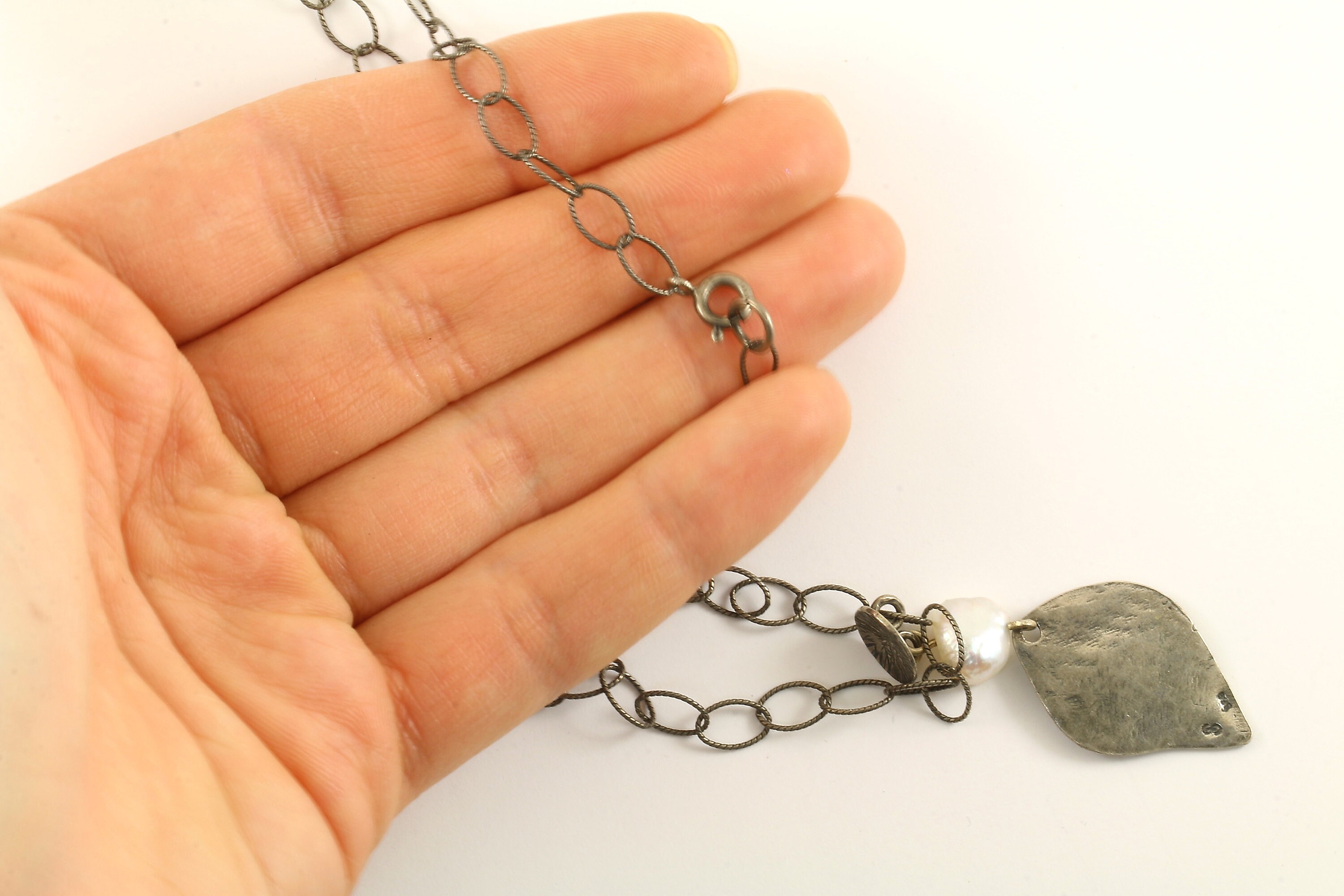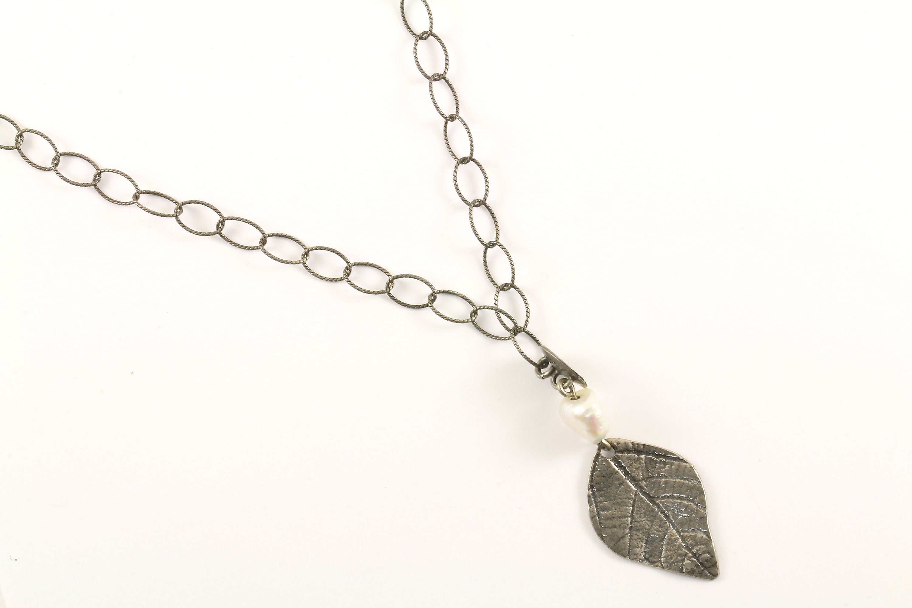This is Vintage Beautiful Delicate Leaf Natural Pearl Design Chain Necklace