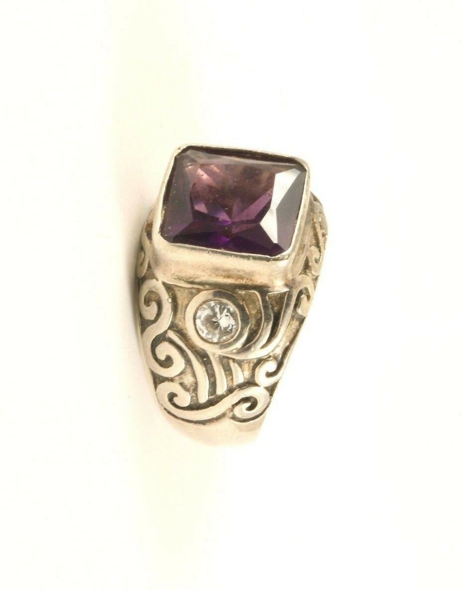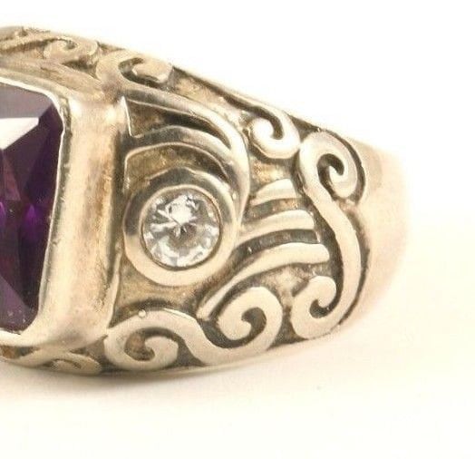 This is Vintage Large Purple Crystal Scroll Design Ring