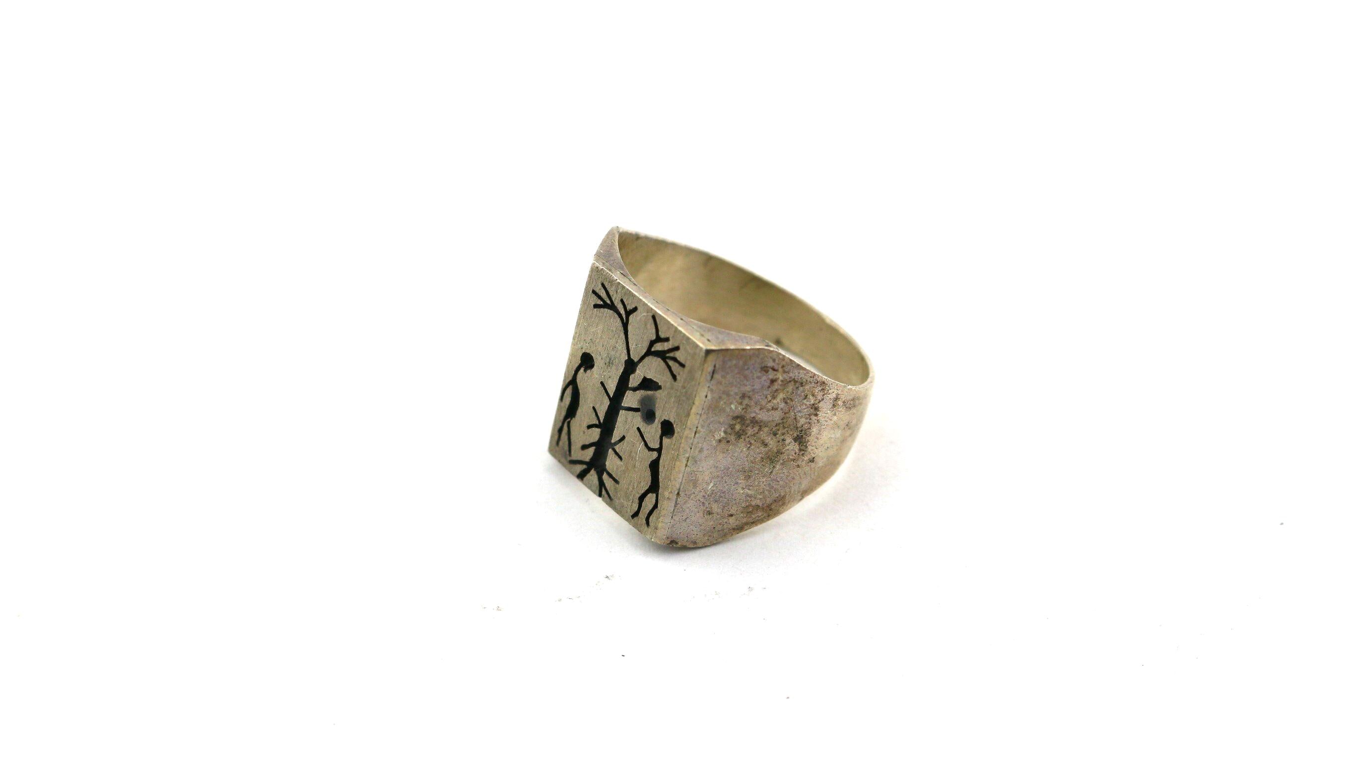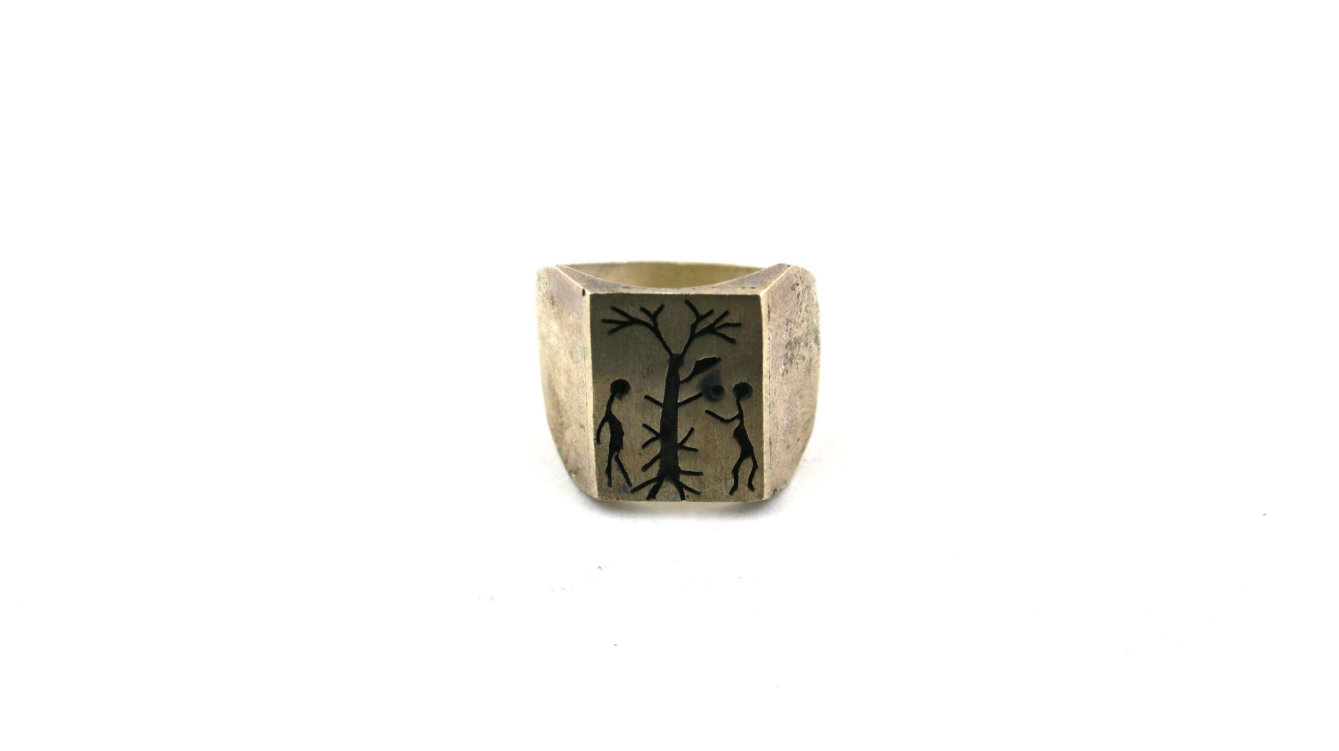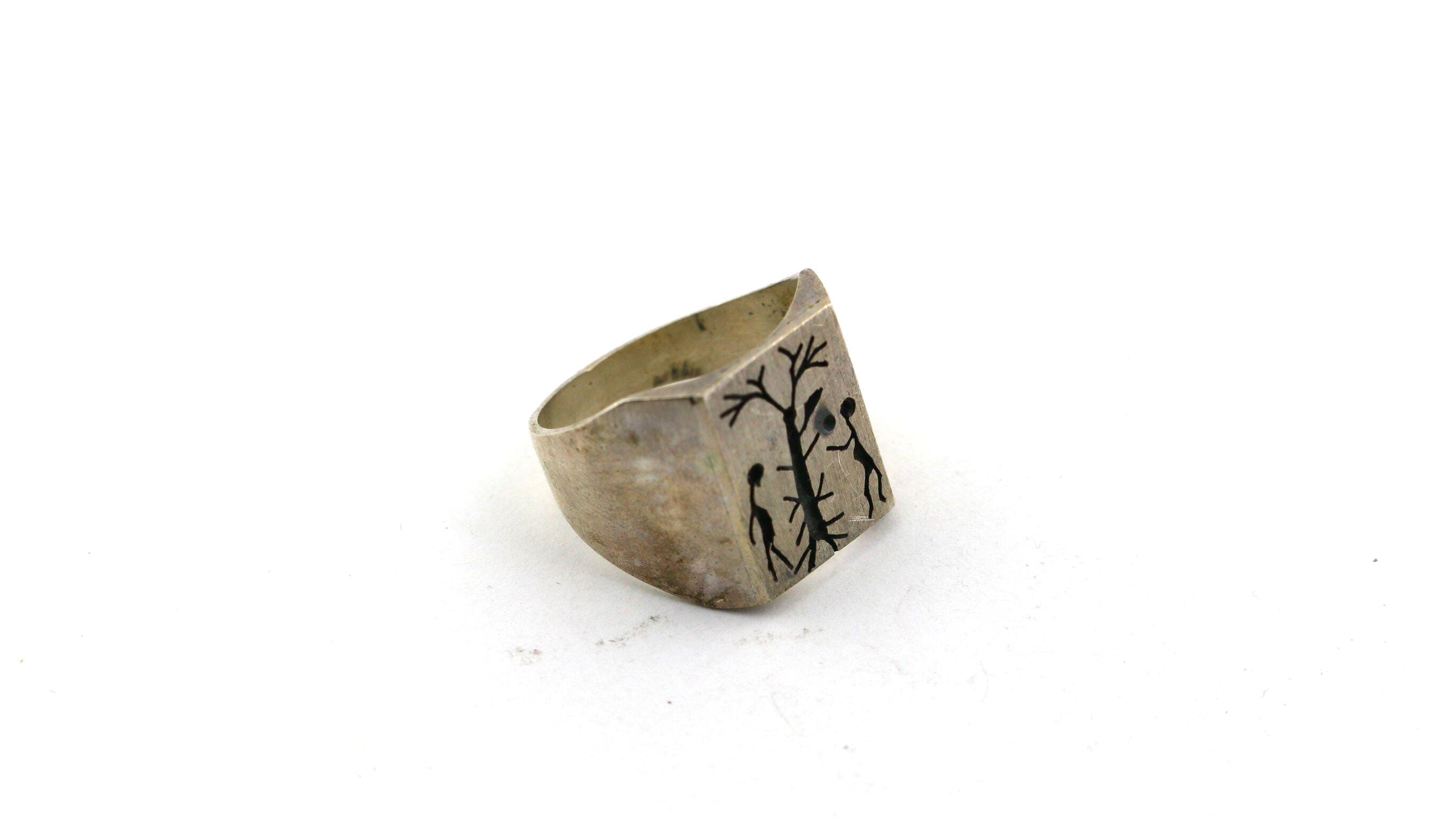 This is Vintage Square Rectangle People Near Tree Tribal Mexico Design Signet Ring