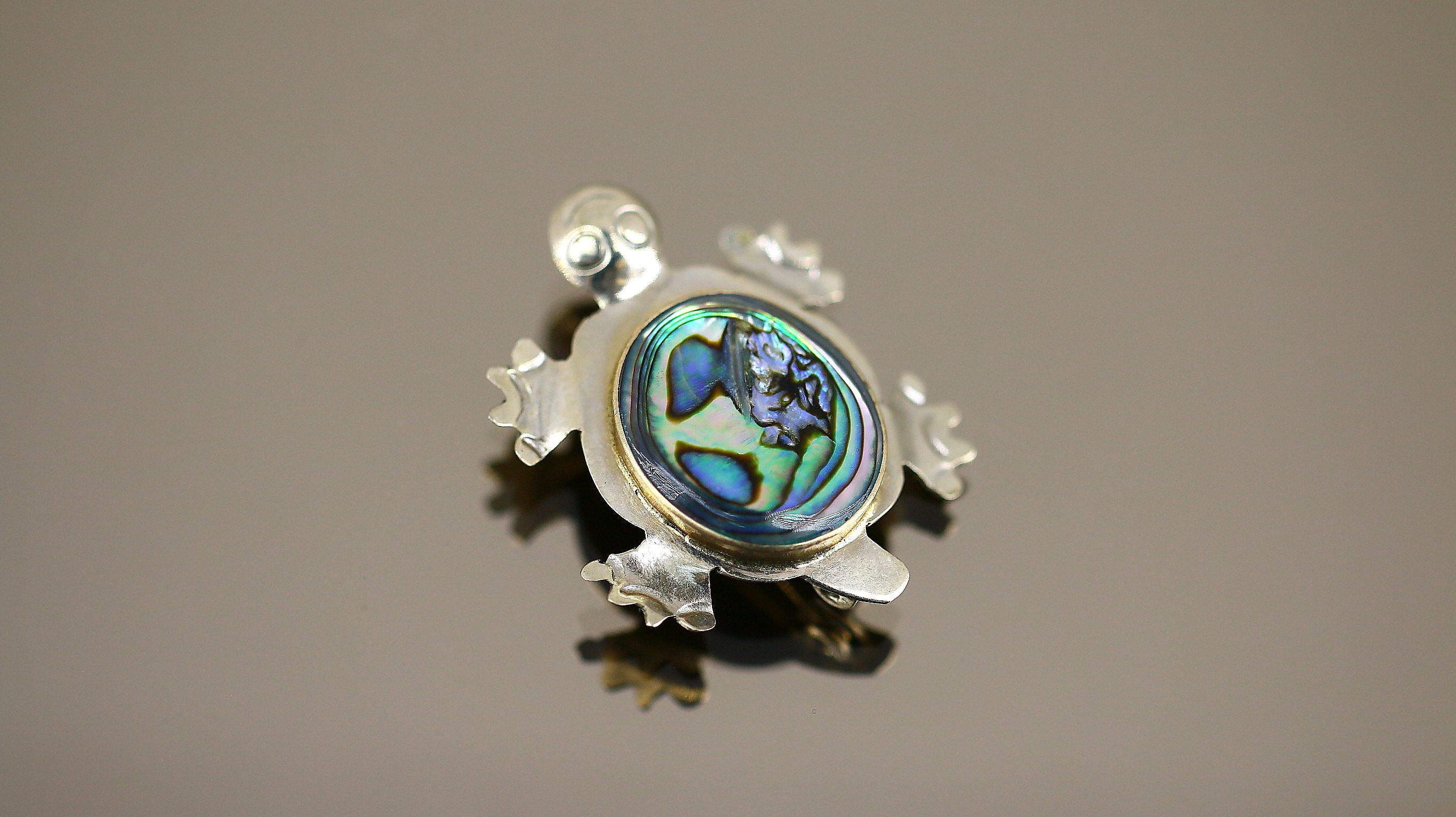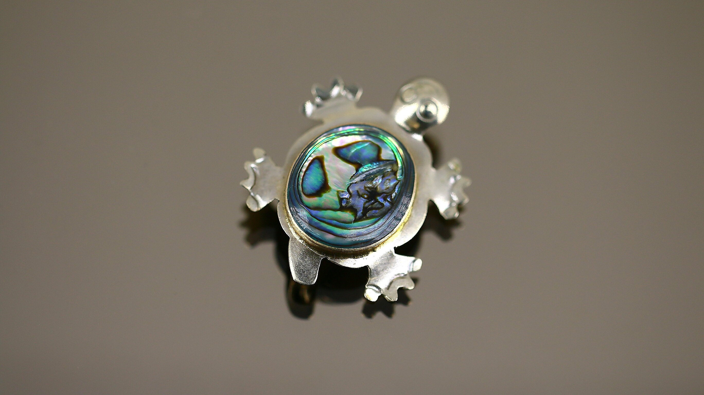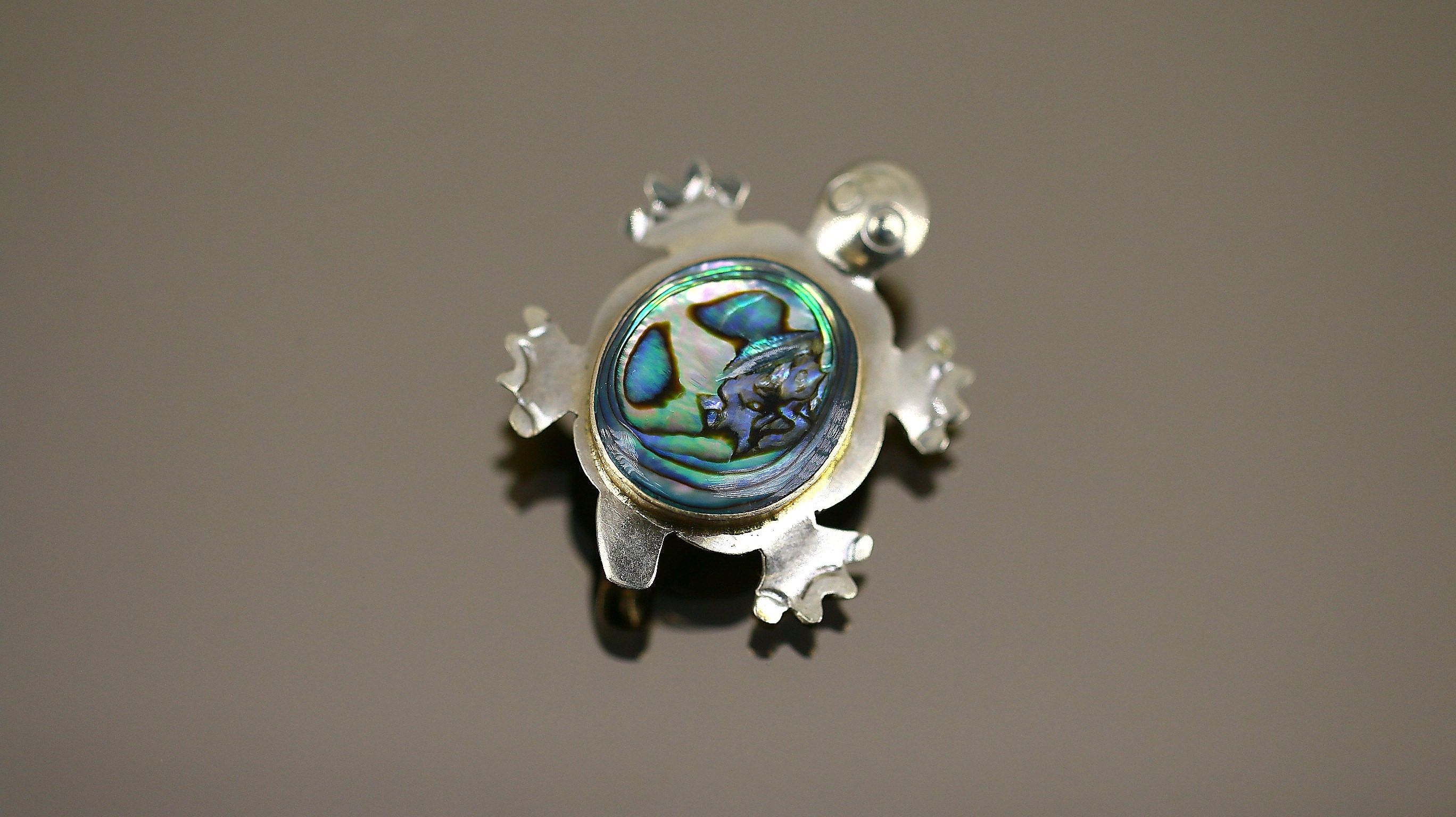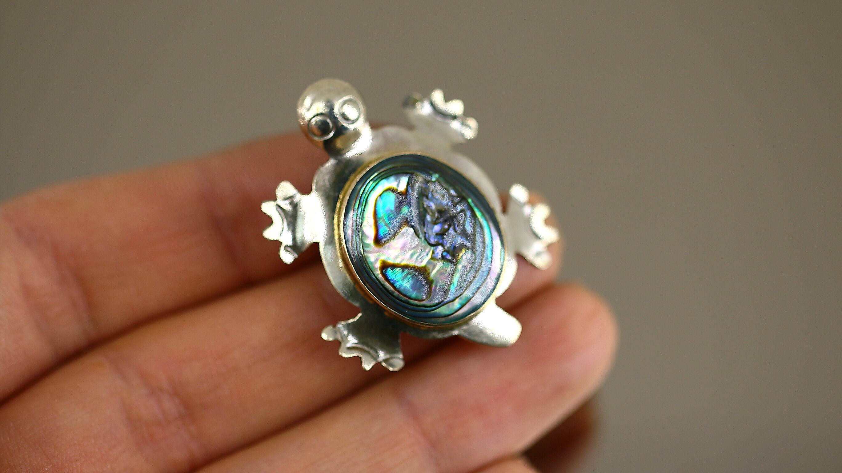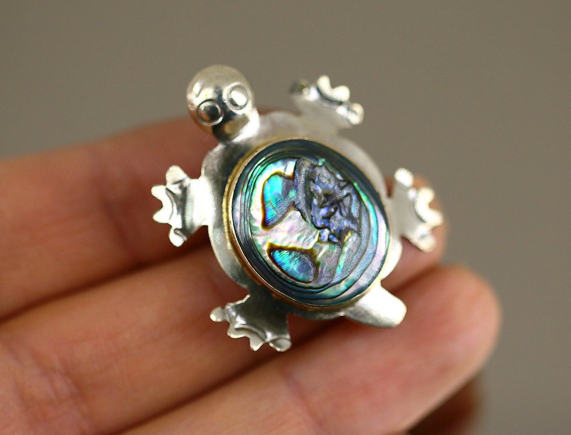 This is Vintage Small Turtle Tortoise Abalone Shell Design Brooch Pin