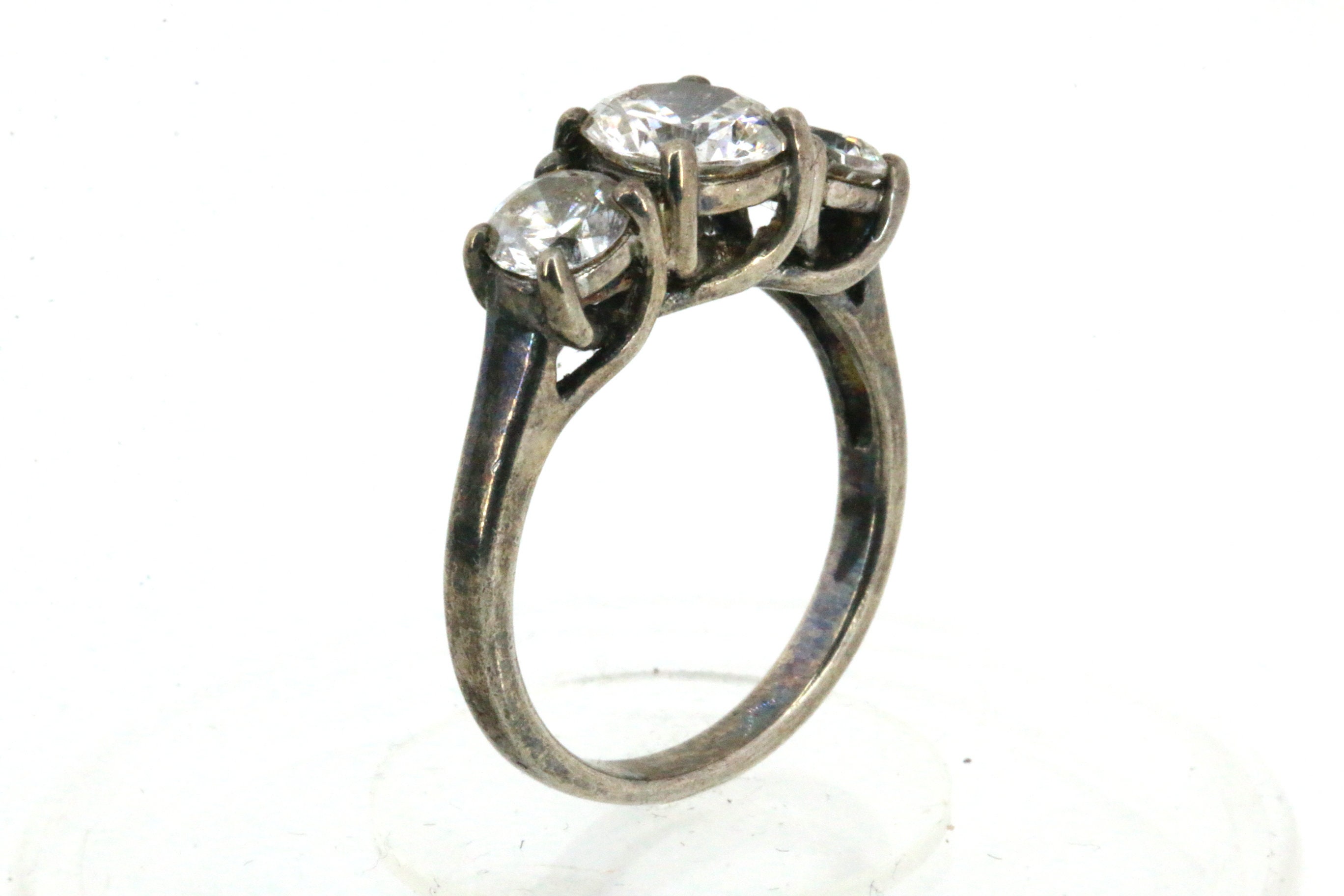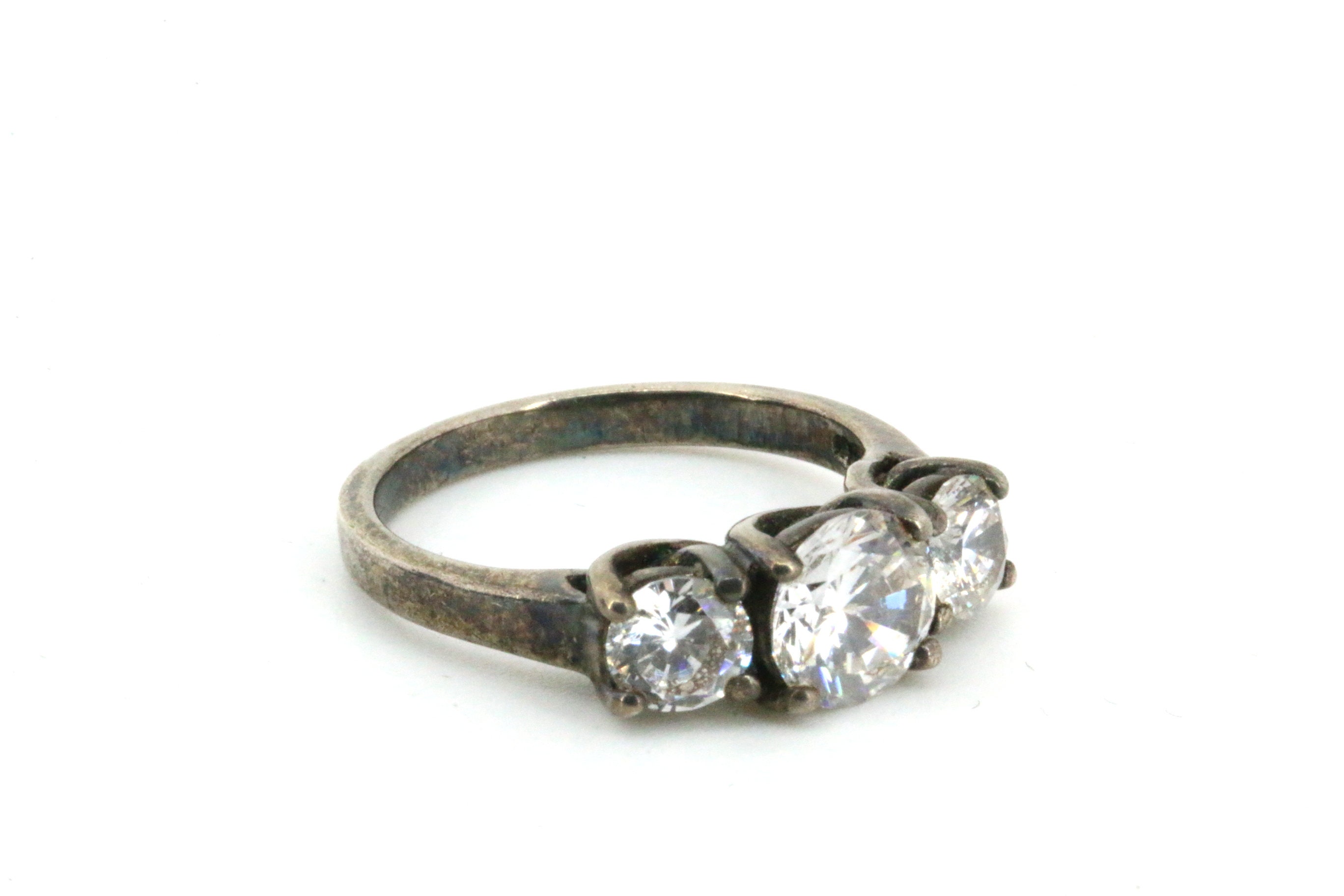 Three Large Round Crystals Vintage Engagement Ring Size 6 3/4 925 Sterling Silver RG 662