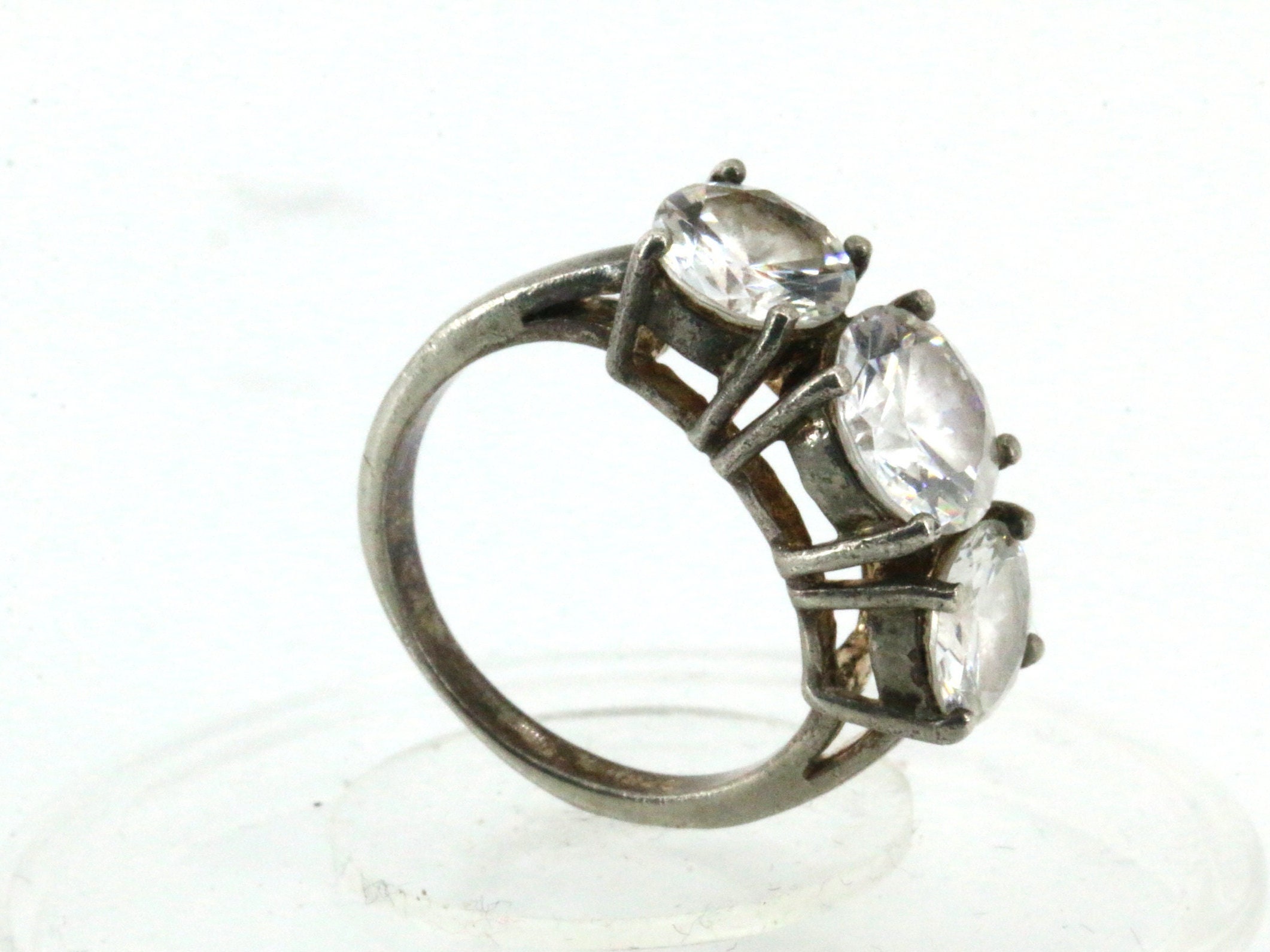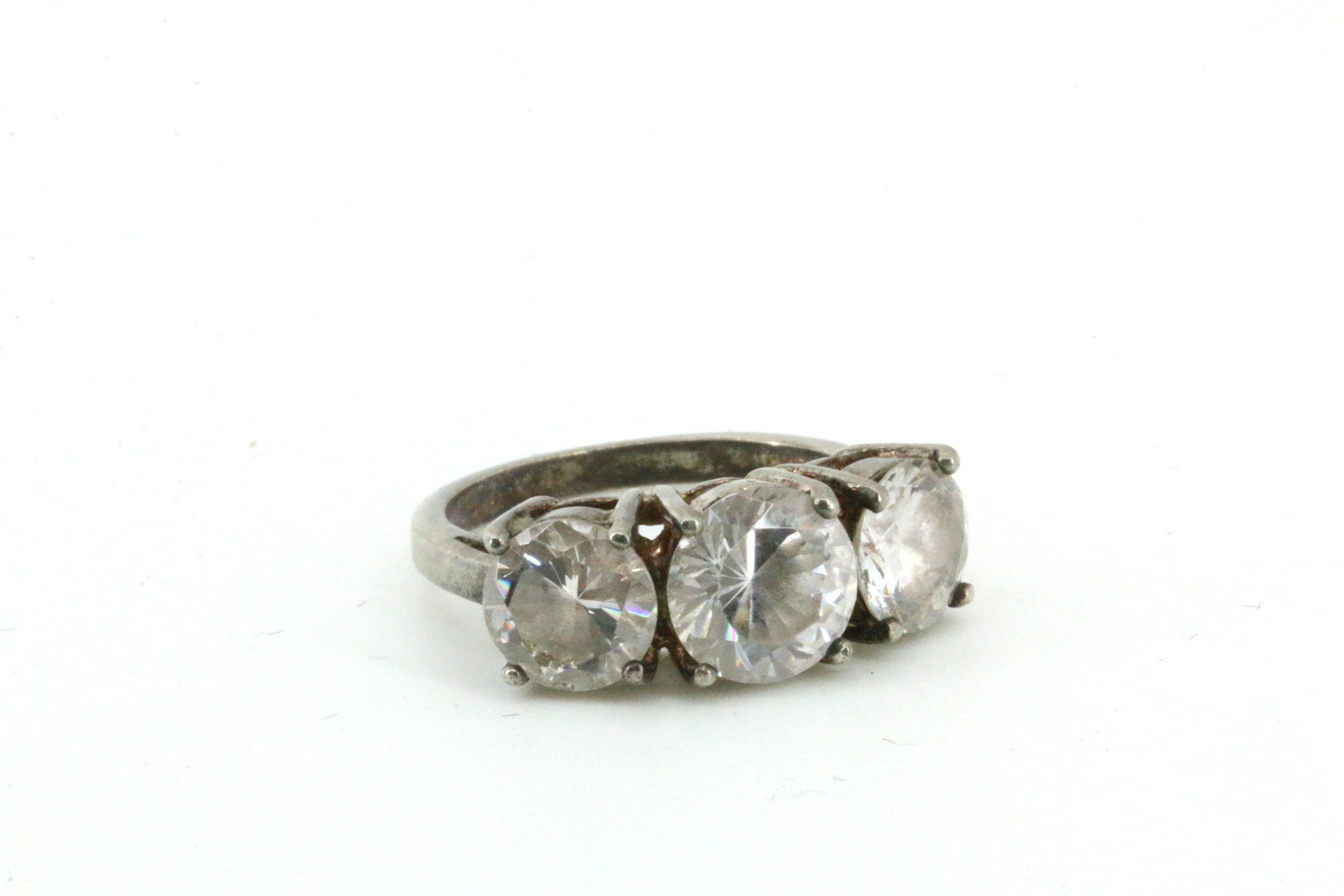 Three Large Round Crystals Vintage Engagement Ring Size 6 925 Sterling Silver RG 2748