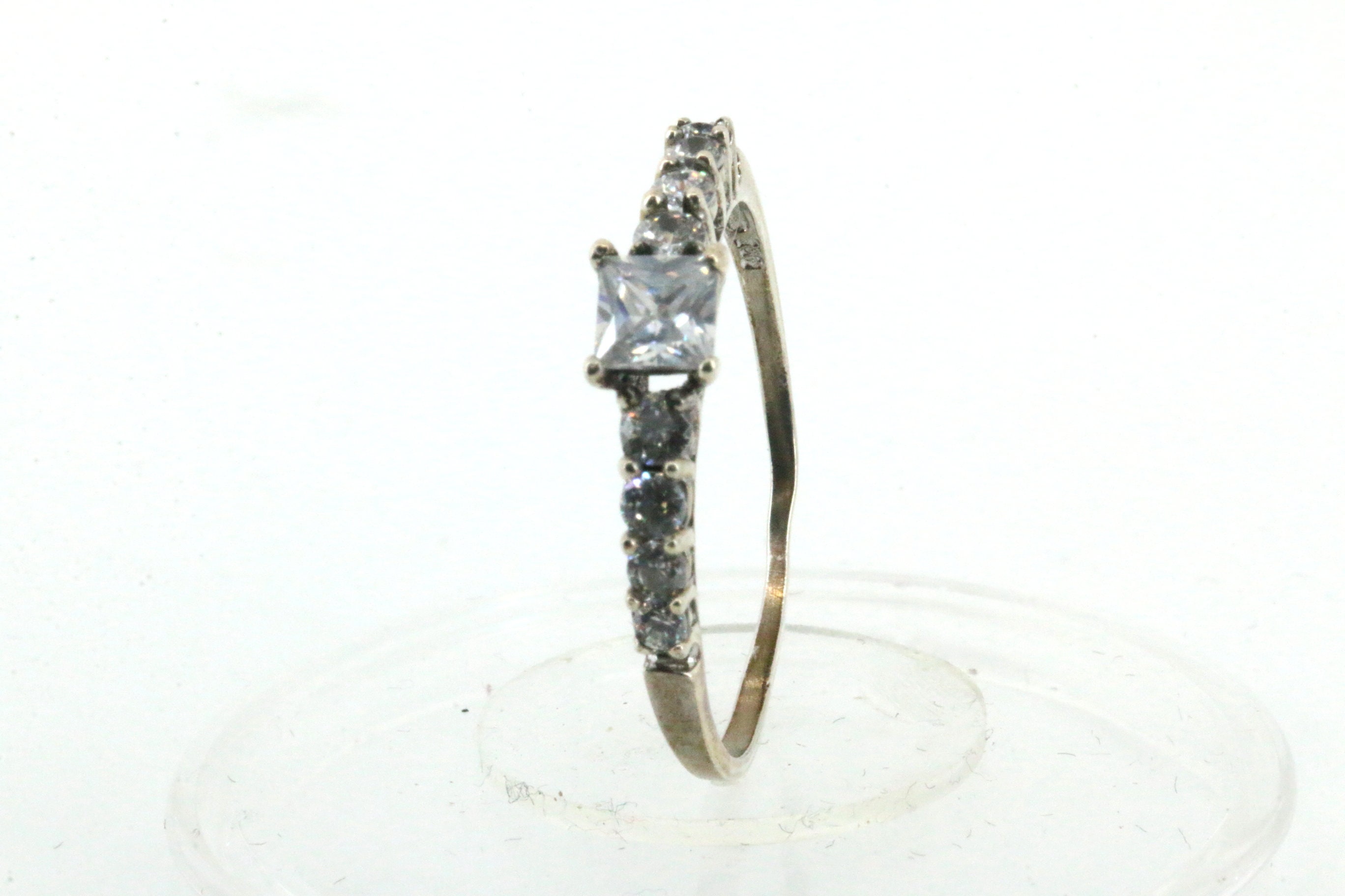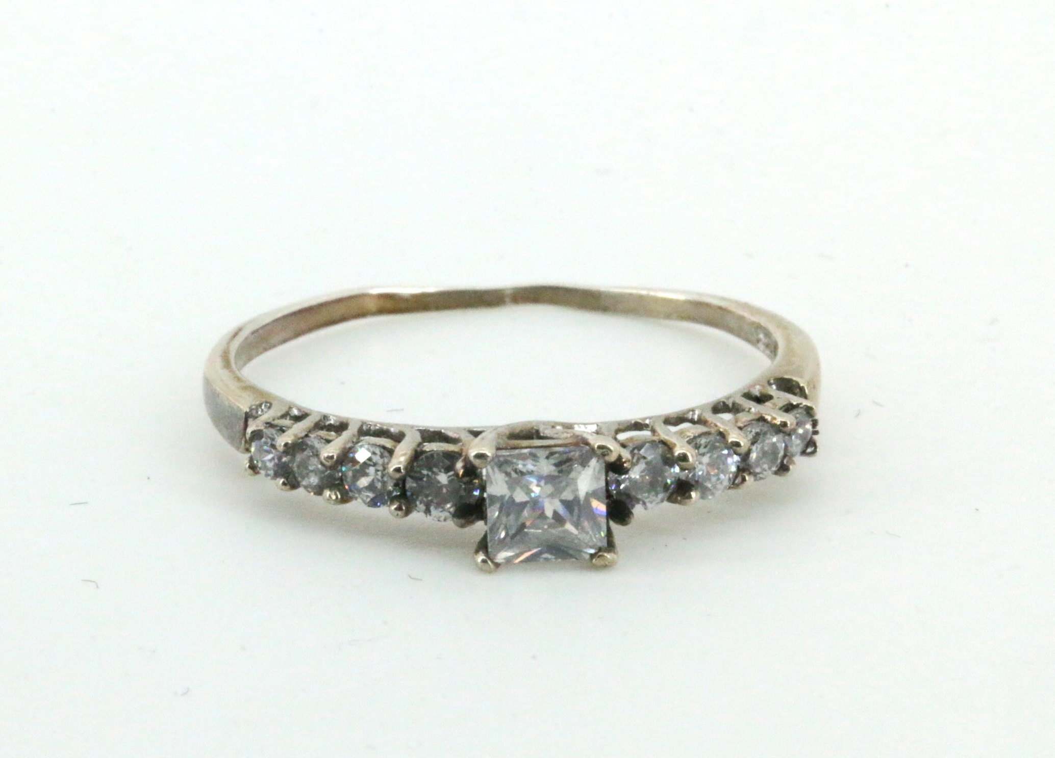 One Large Rectangle Crystal & Eight White Crystals Vintage Engagement Ring Size 10 1/2 925 Sterling Silver RG 3460