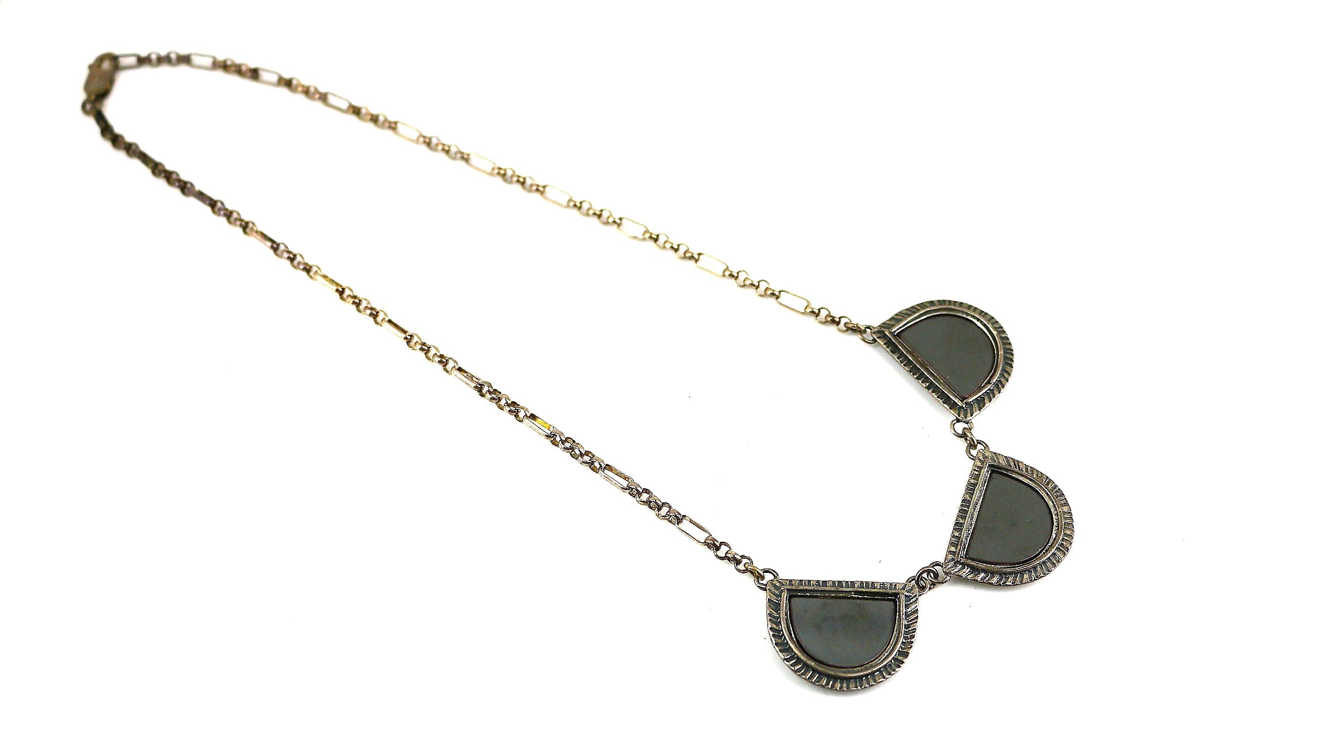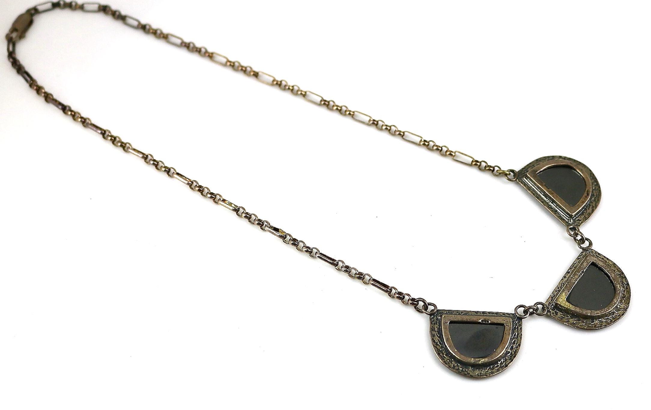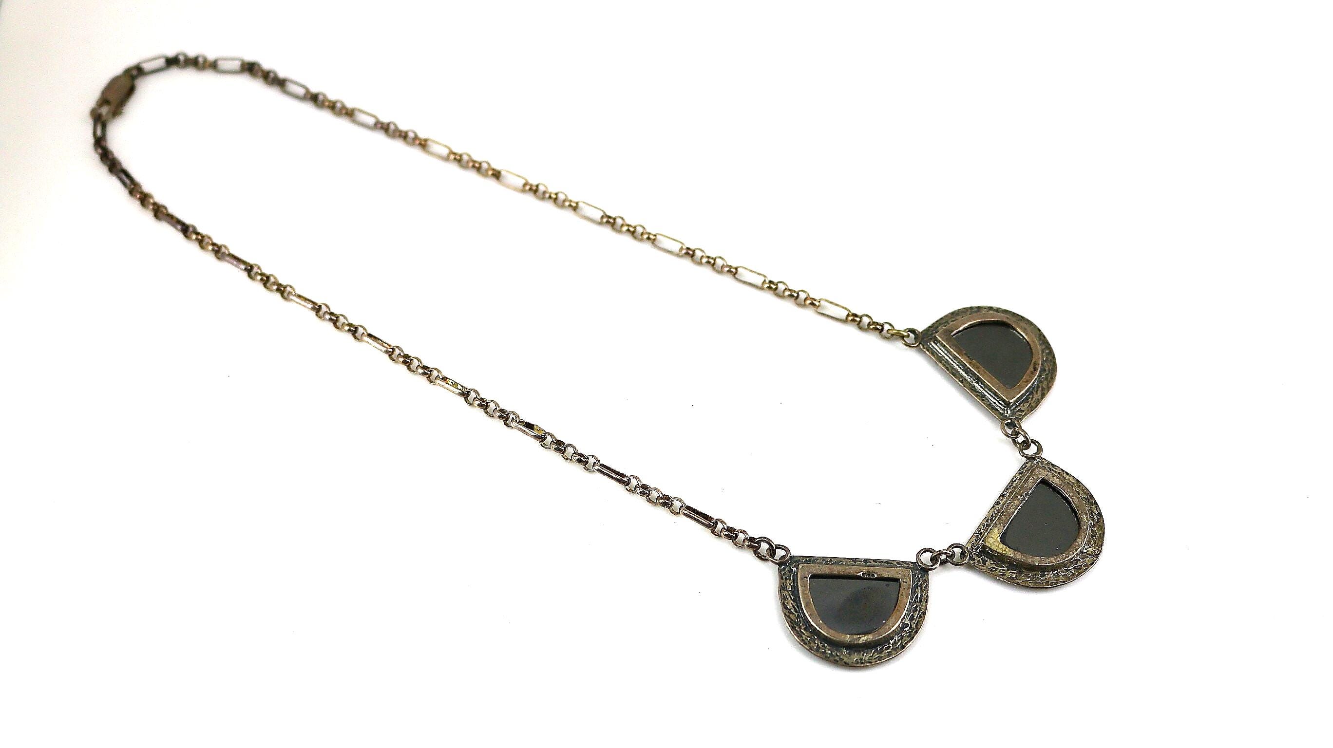 This is Vintage Three Shiny Flat Semicircles Black Hematite Israel Design Necklace