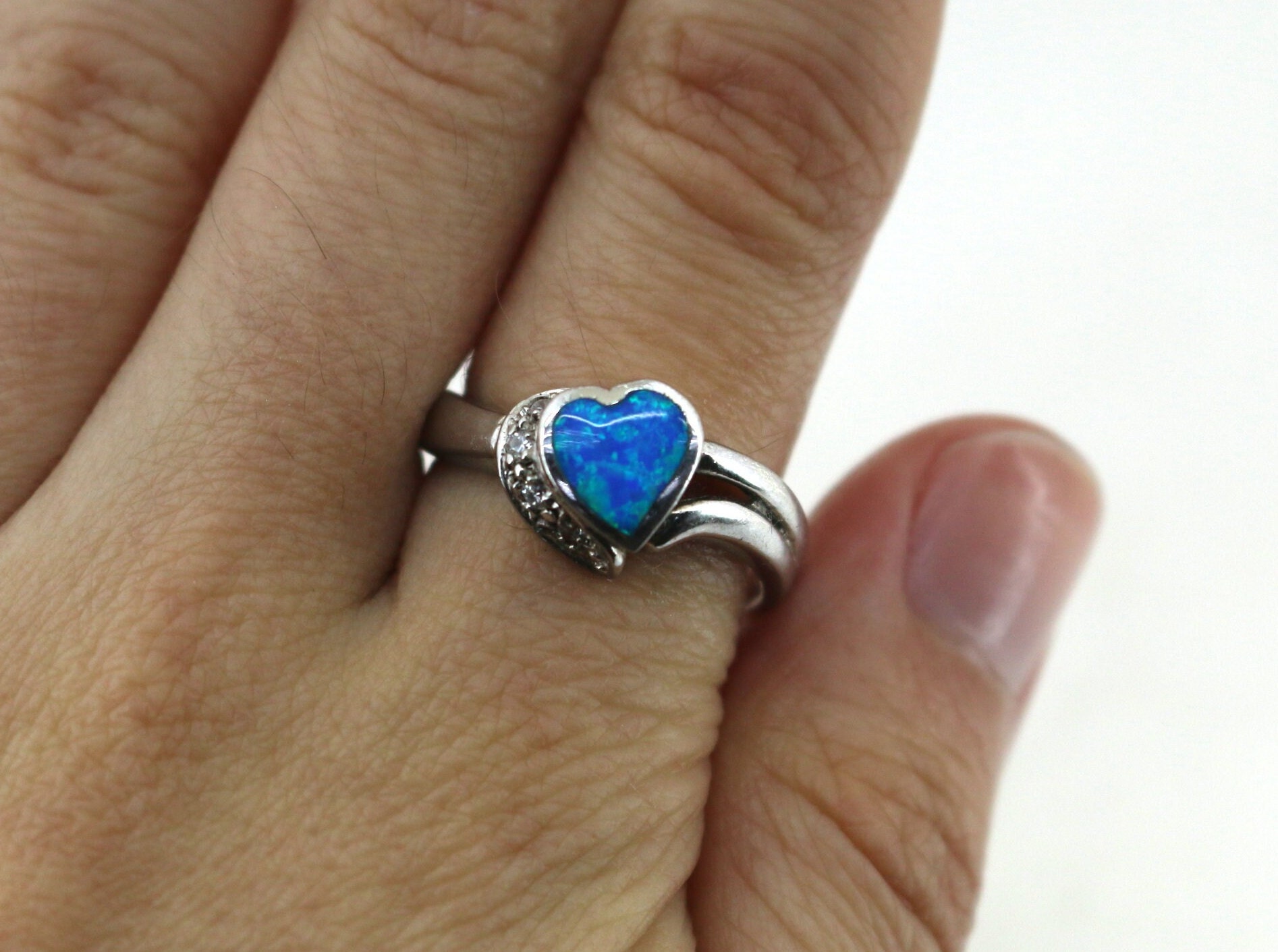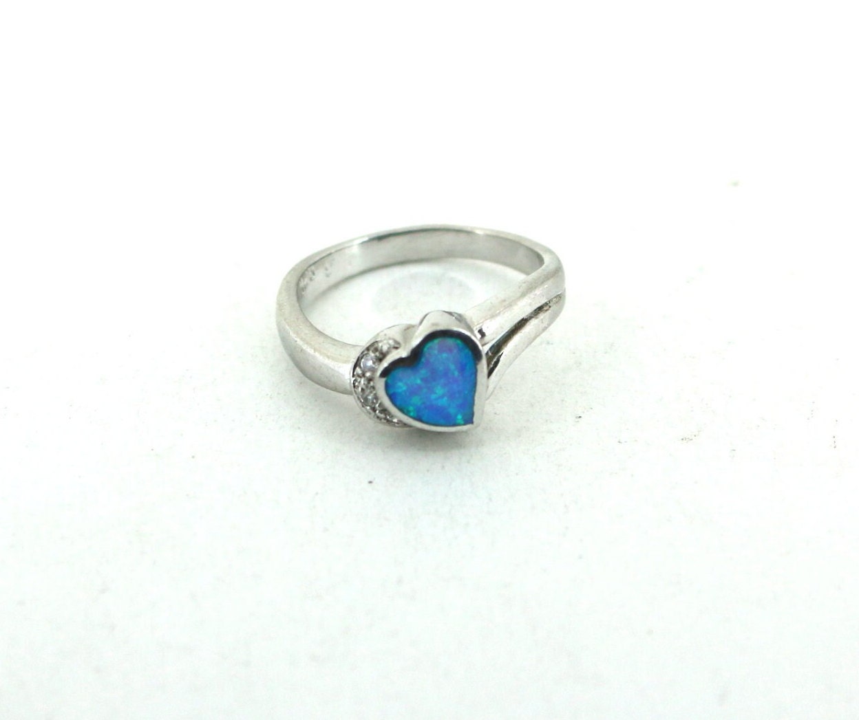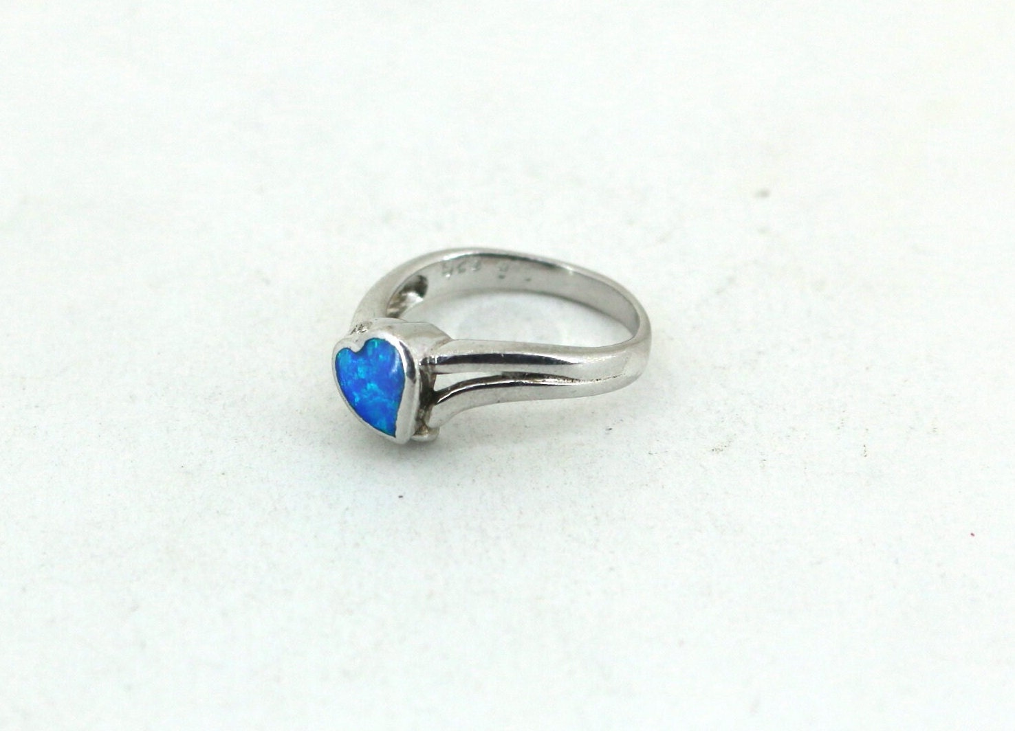 This is Size 7.75 Blue Opal Heart Shape Ring 925 Sterling RG 4346