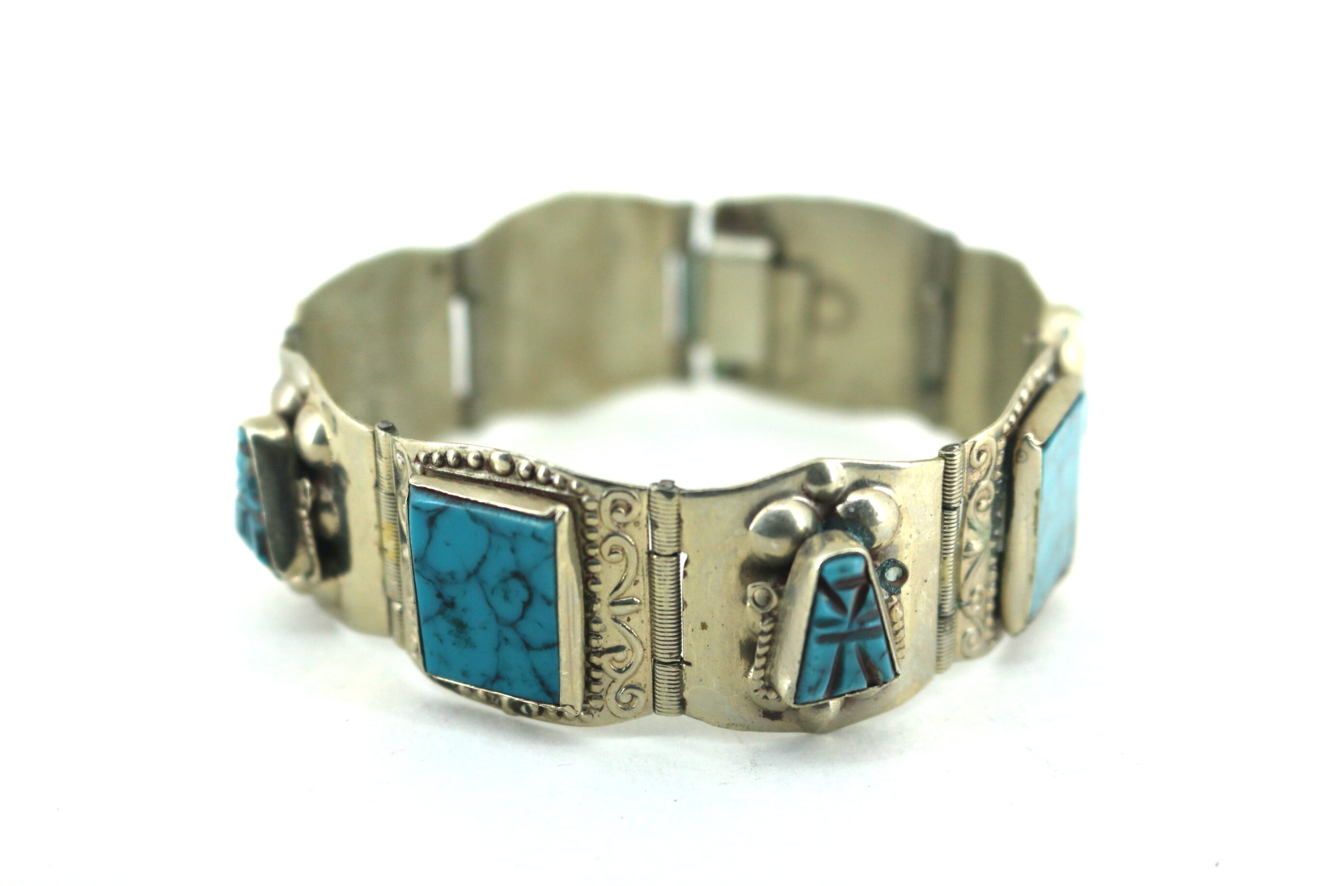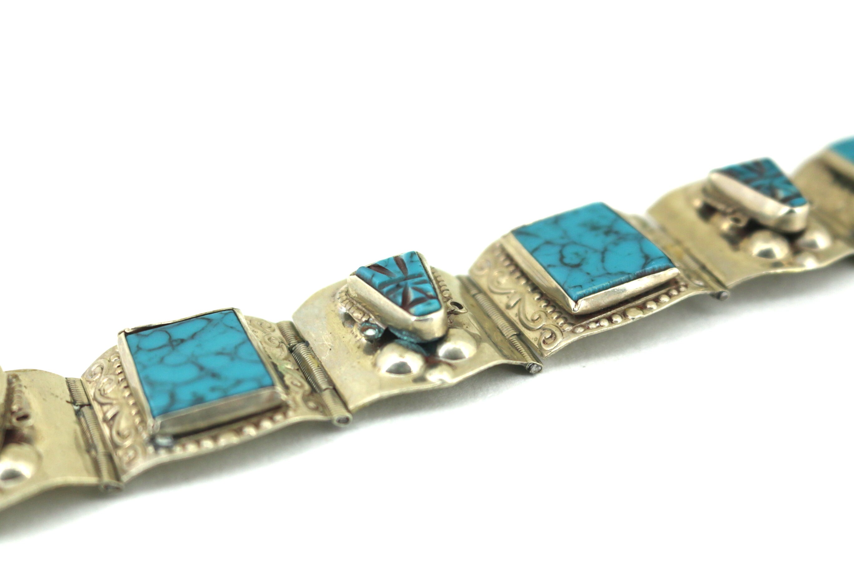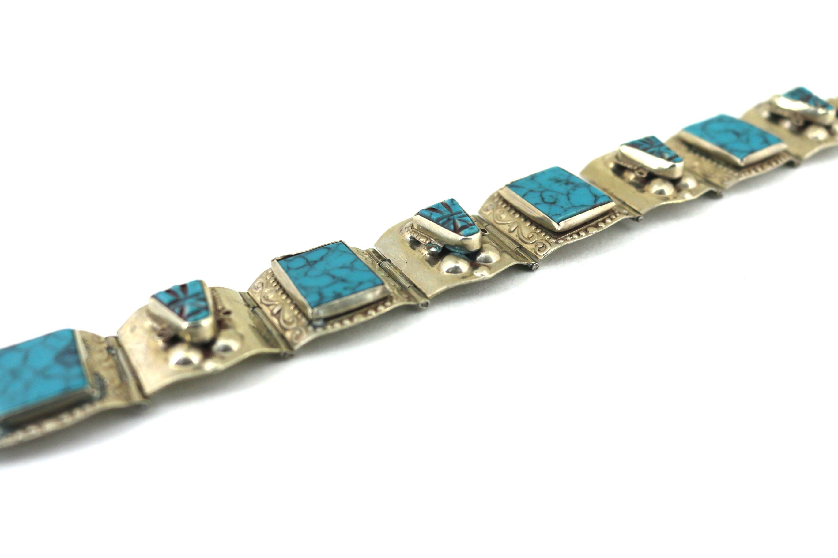 This is Vintage 6.75 Blue Turquoise Southwest Bracelet 925 Sterling Silver BR 078