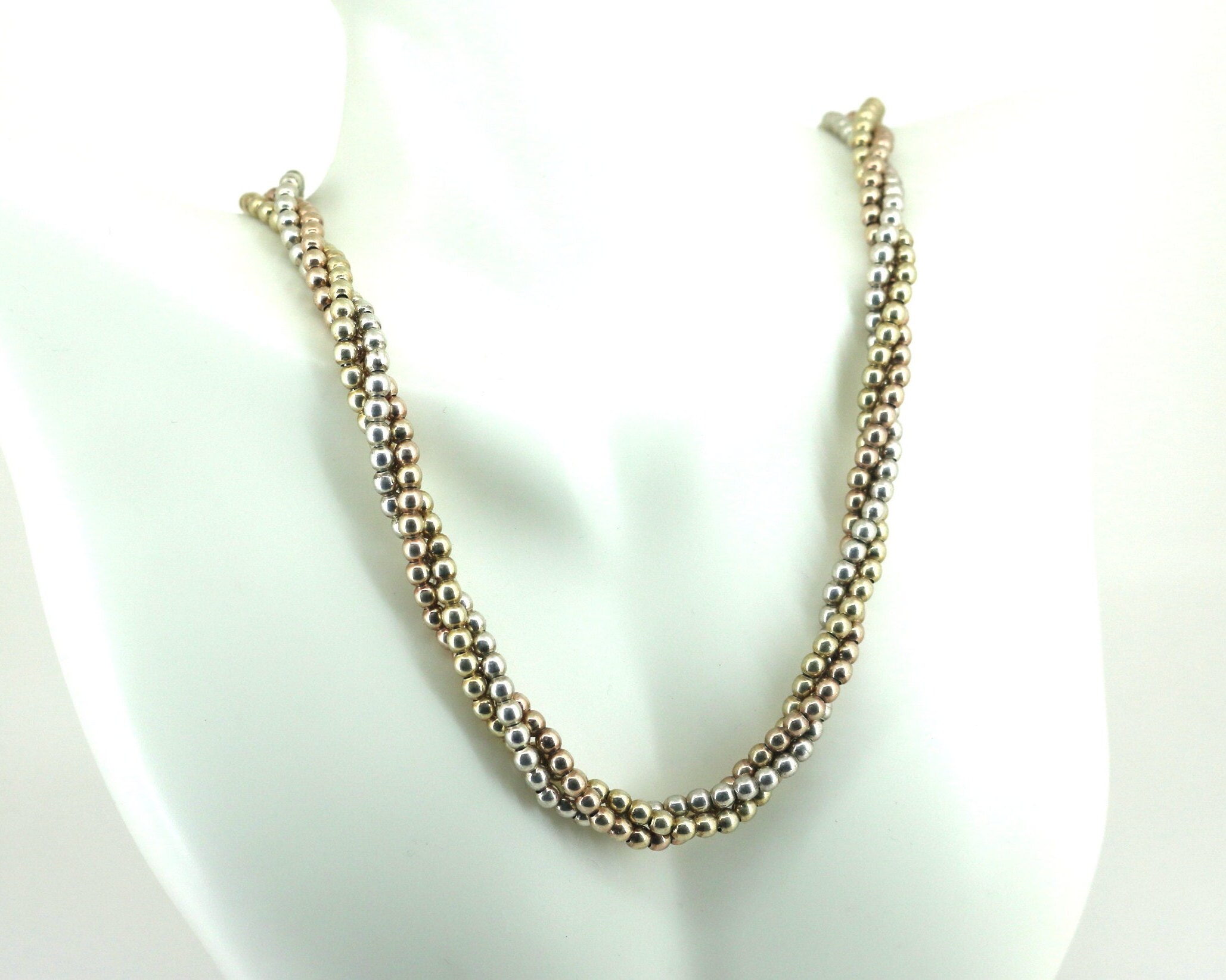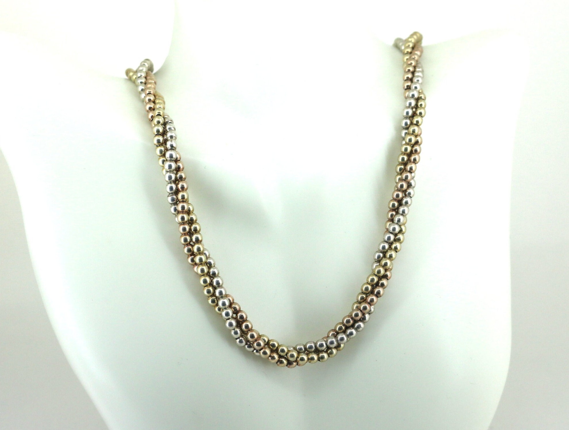 This is Vintage Beads Beaded Three Twisted Necklace 925 Sterling NC 1286