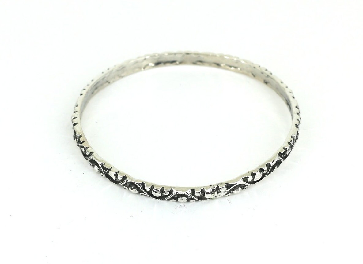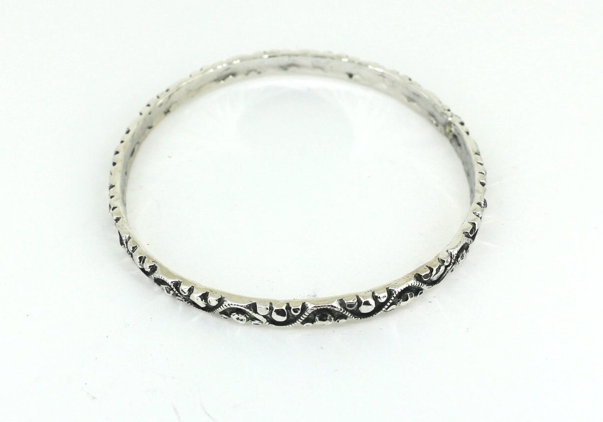 Vintage Antique Filigree Hinged Thin Stackable Bangle Bracelet 925 Sterling Silver BR 027