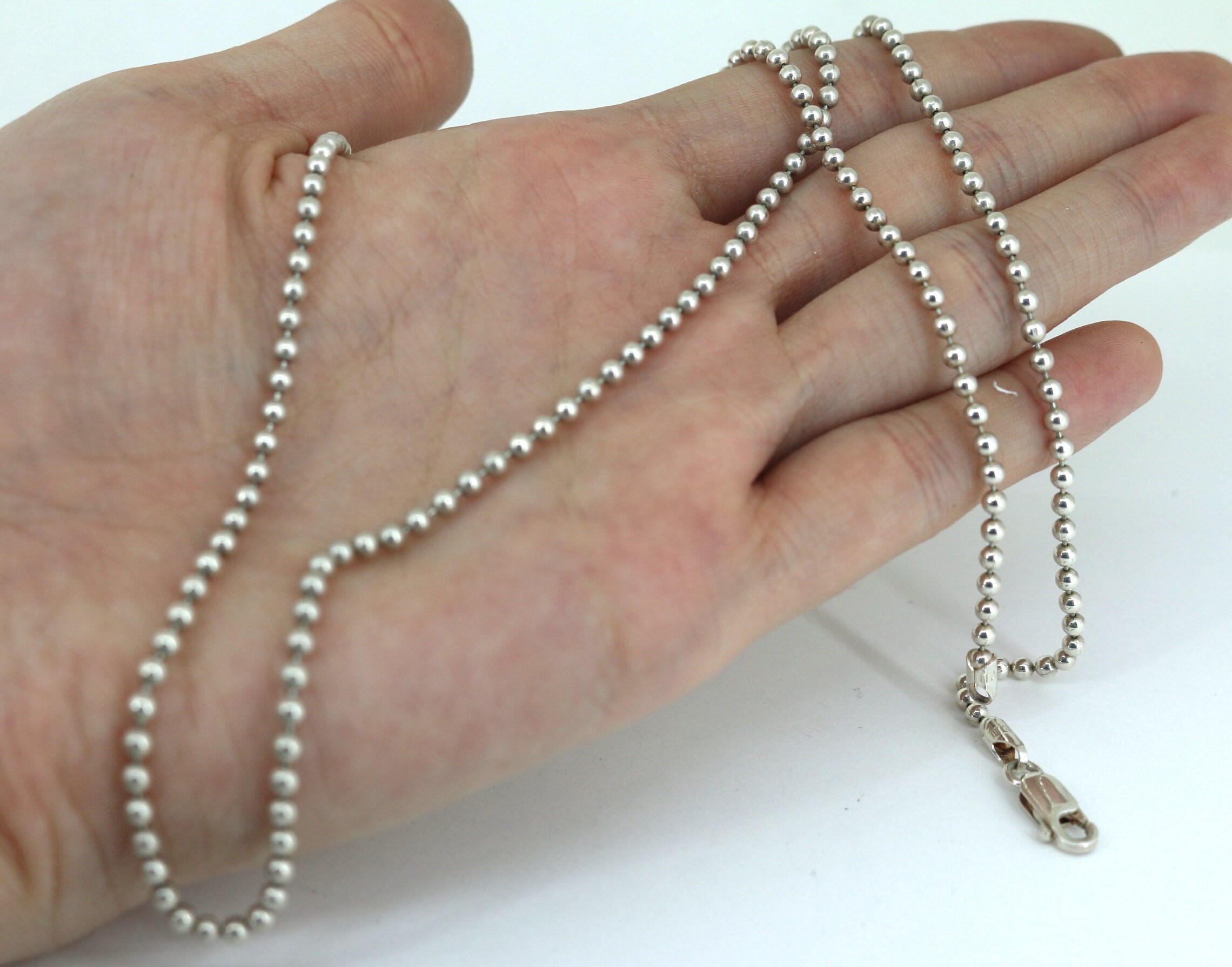 Vintage 24 Inch Beads Beaded Chain Design Necklace Sterling 925 Silver NC 2063