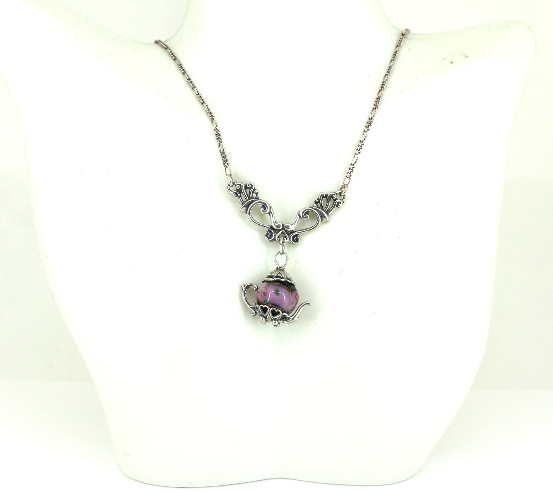 Vintage 19 In Italy Figaro Chain Teapot Pendant Charm Necklace 925 Sterling Silver NC 1556