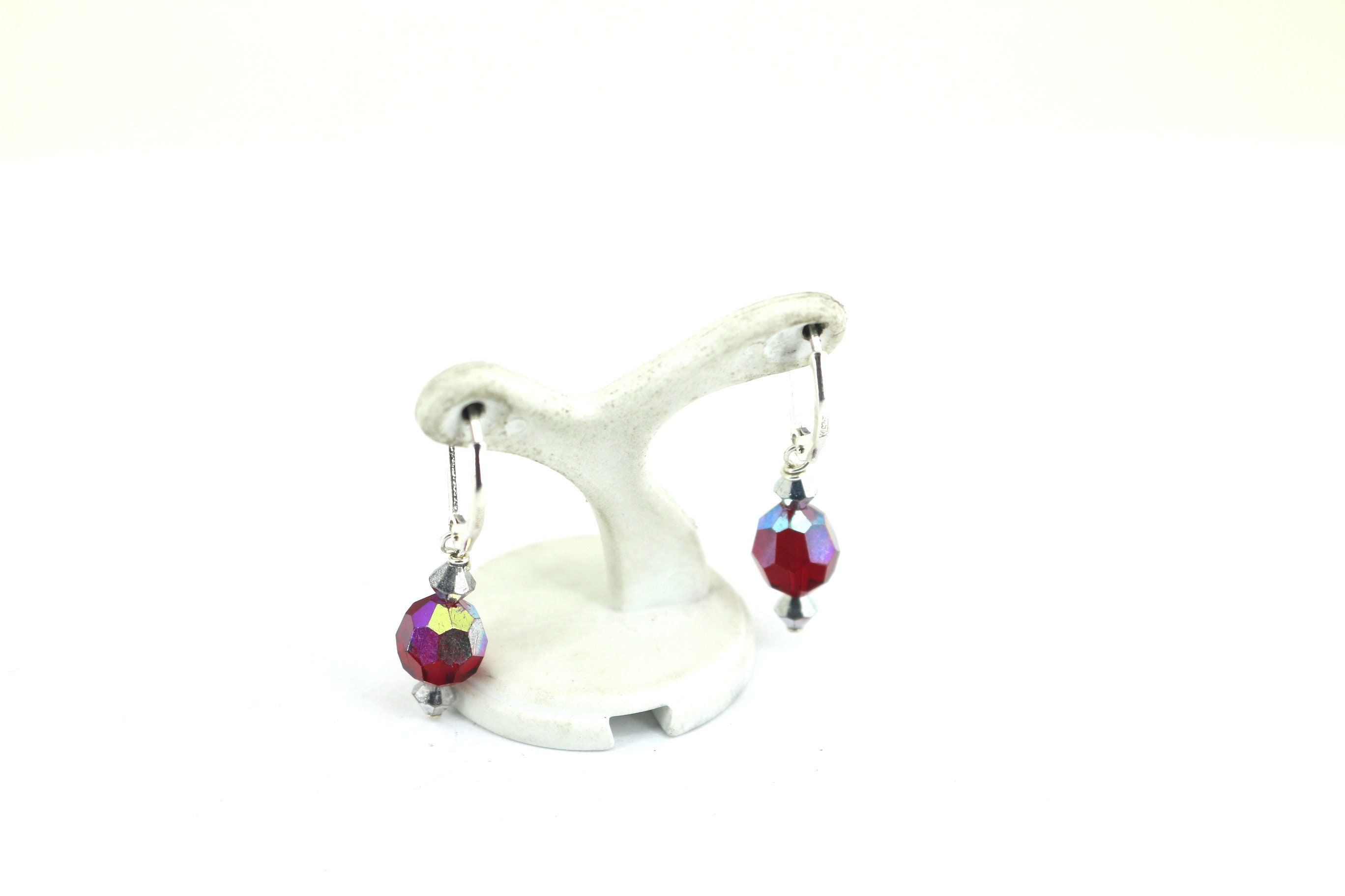 Vintage Beautiful Shiny Inlaid Cz Lever Back Earrings Sterling Silver ER 93
