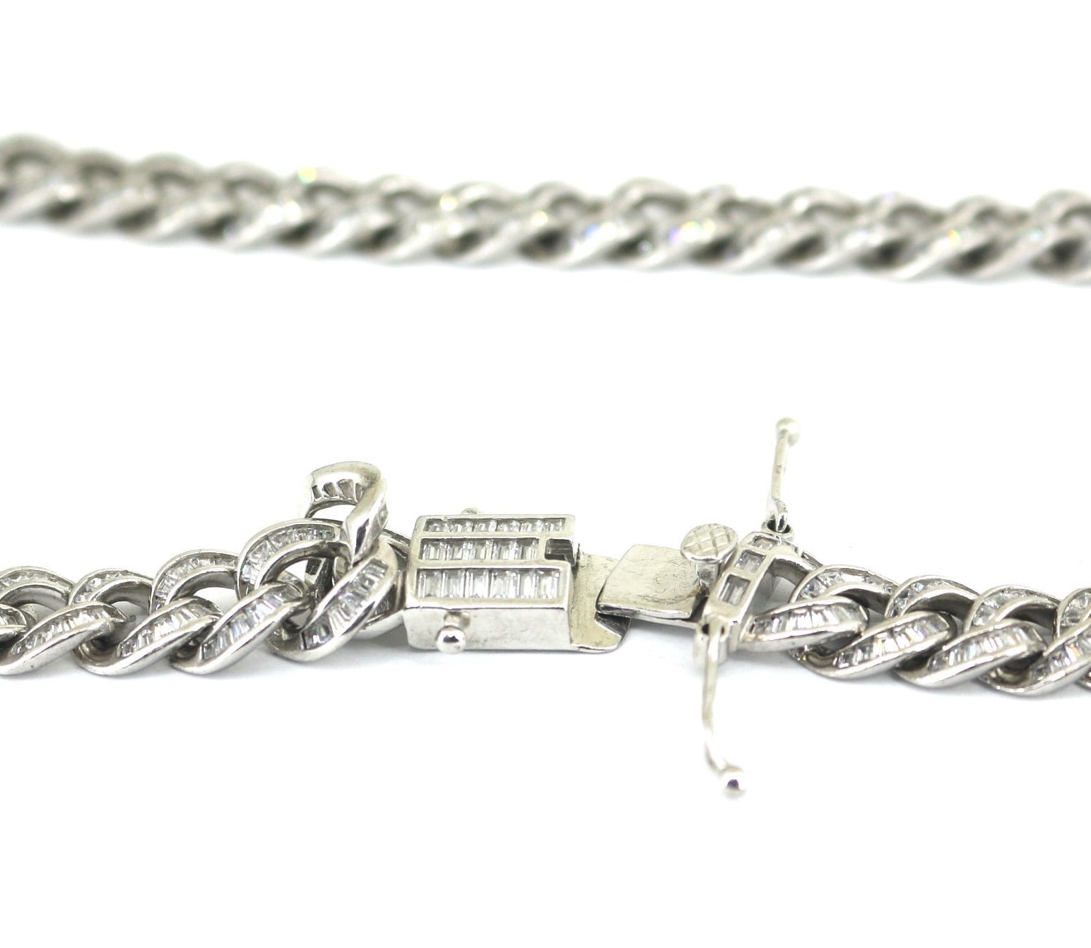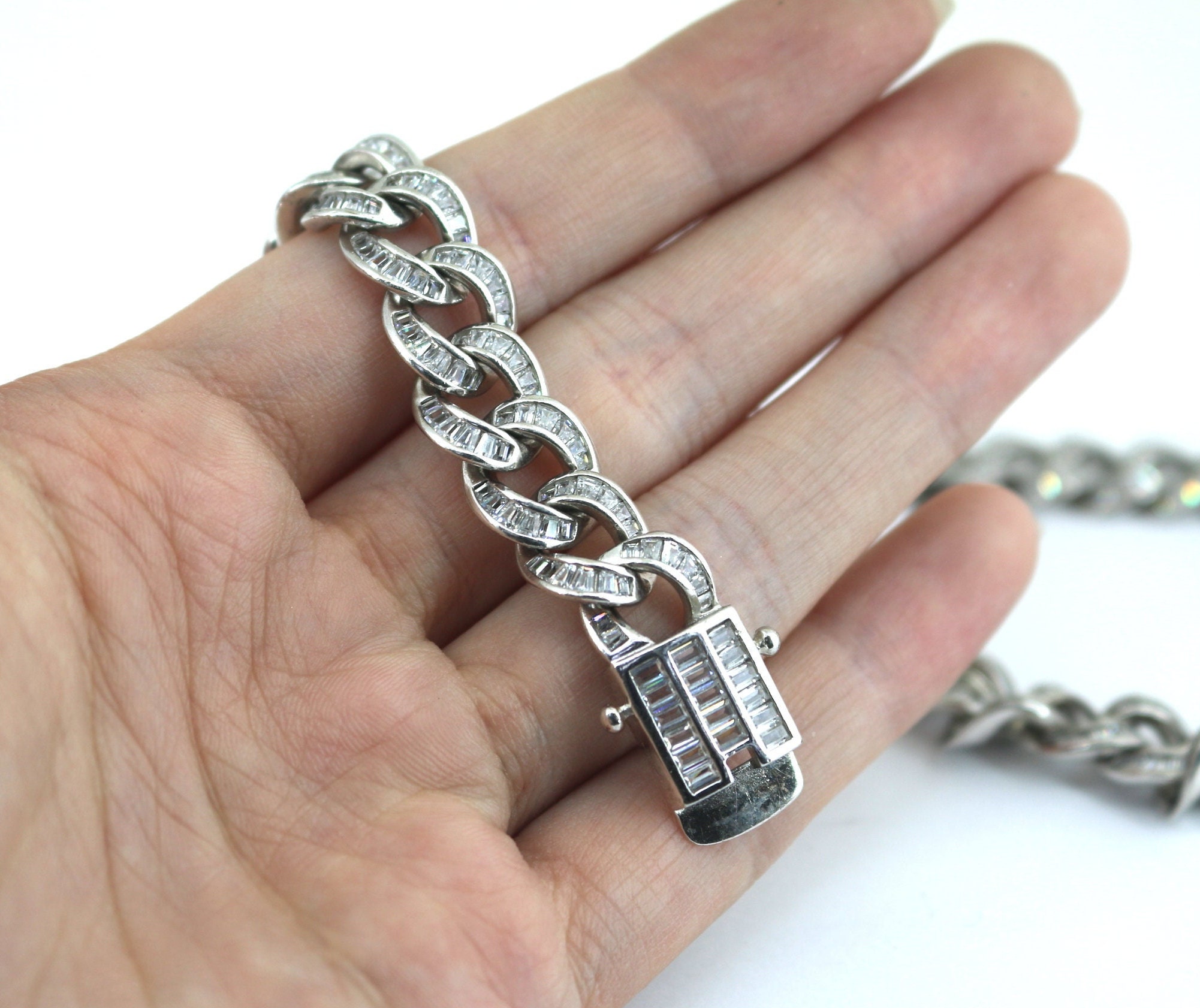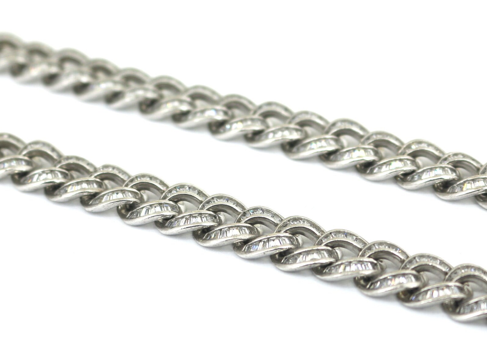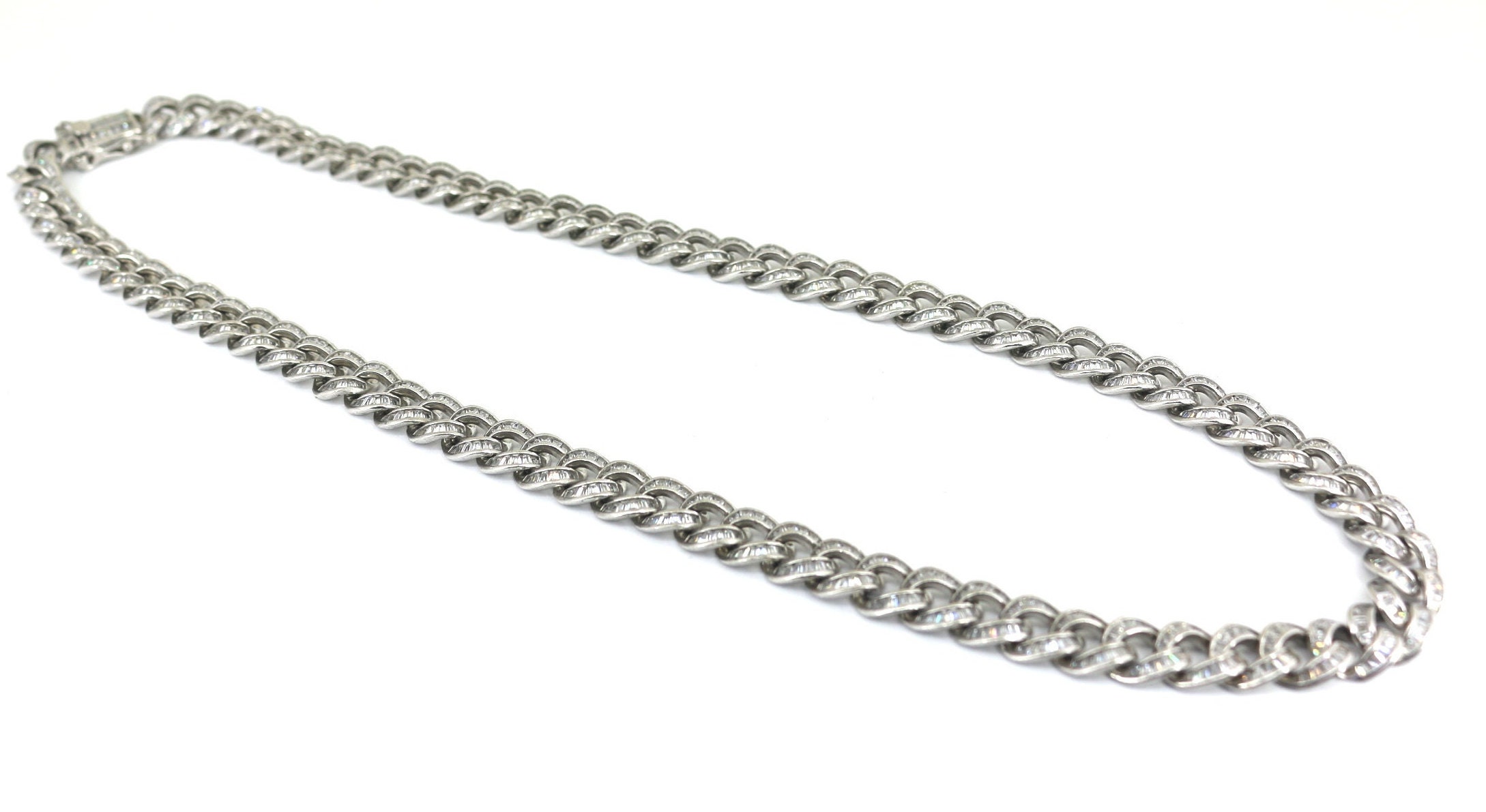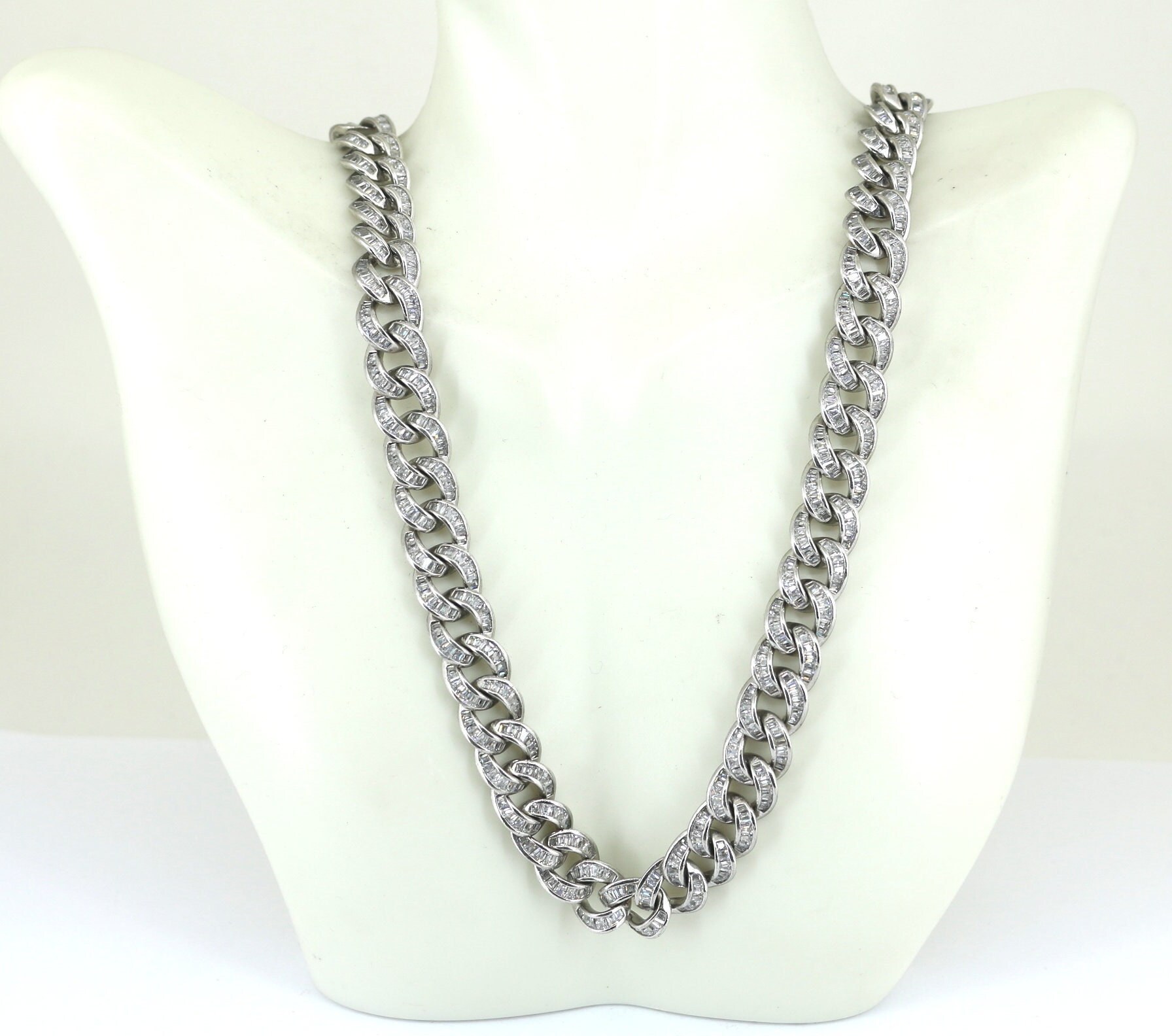 Vintage Long Cuban link Iced Out Inlaid CZ Design Chain Necklace 925 Sterling NC 847