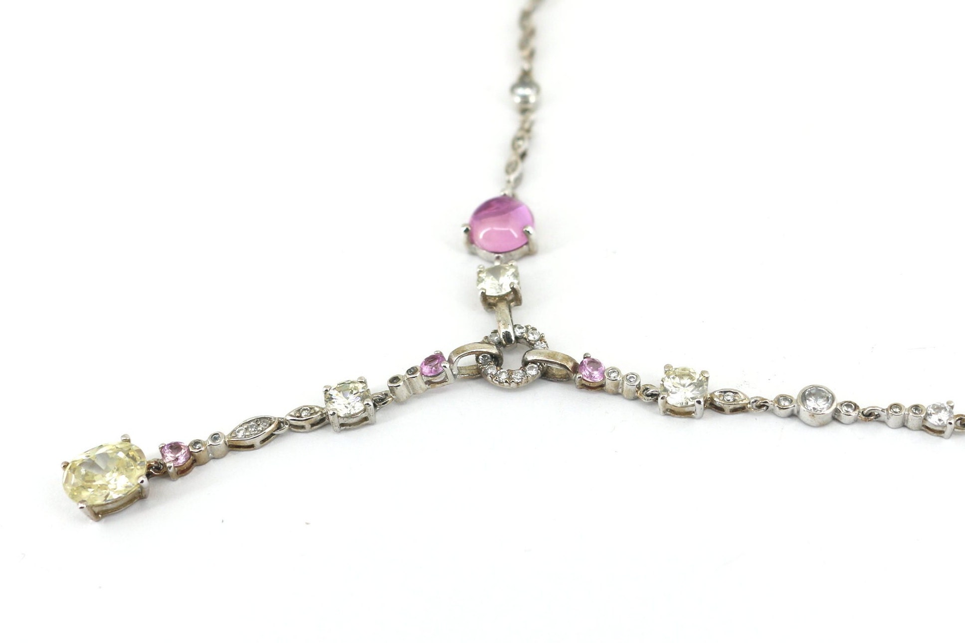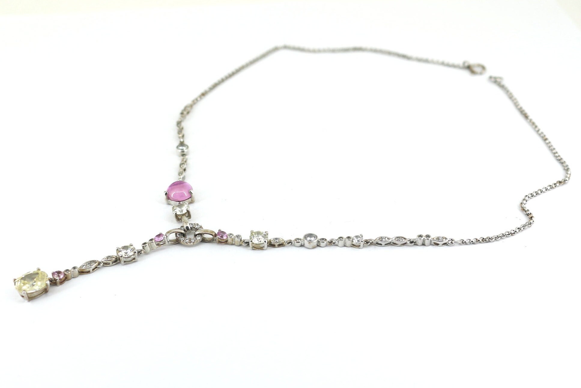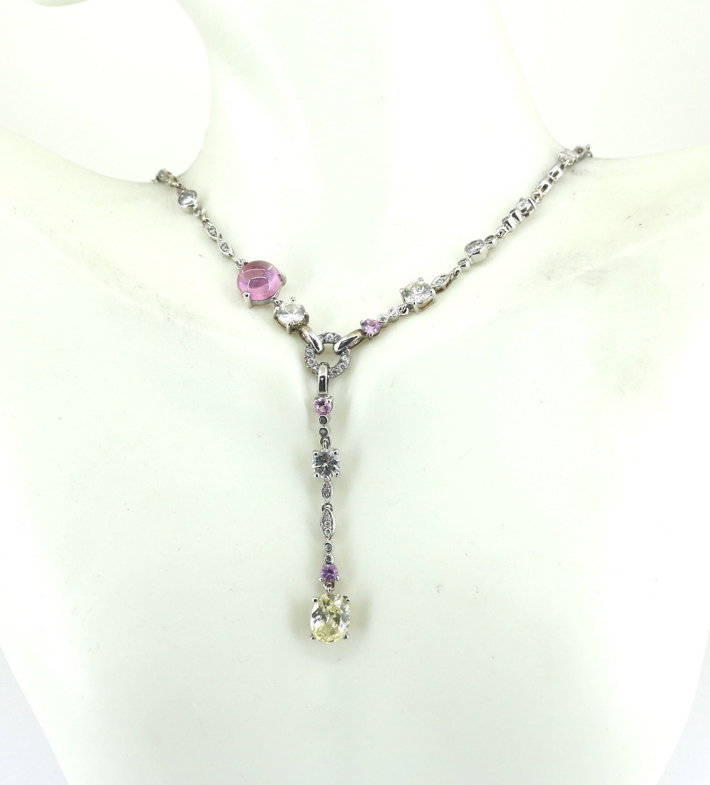 Vintage Inlaid Pink & Green Pendant Rolo Chain Necklace 925 Sterling Silver NC 1472