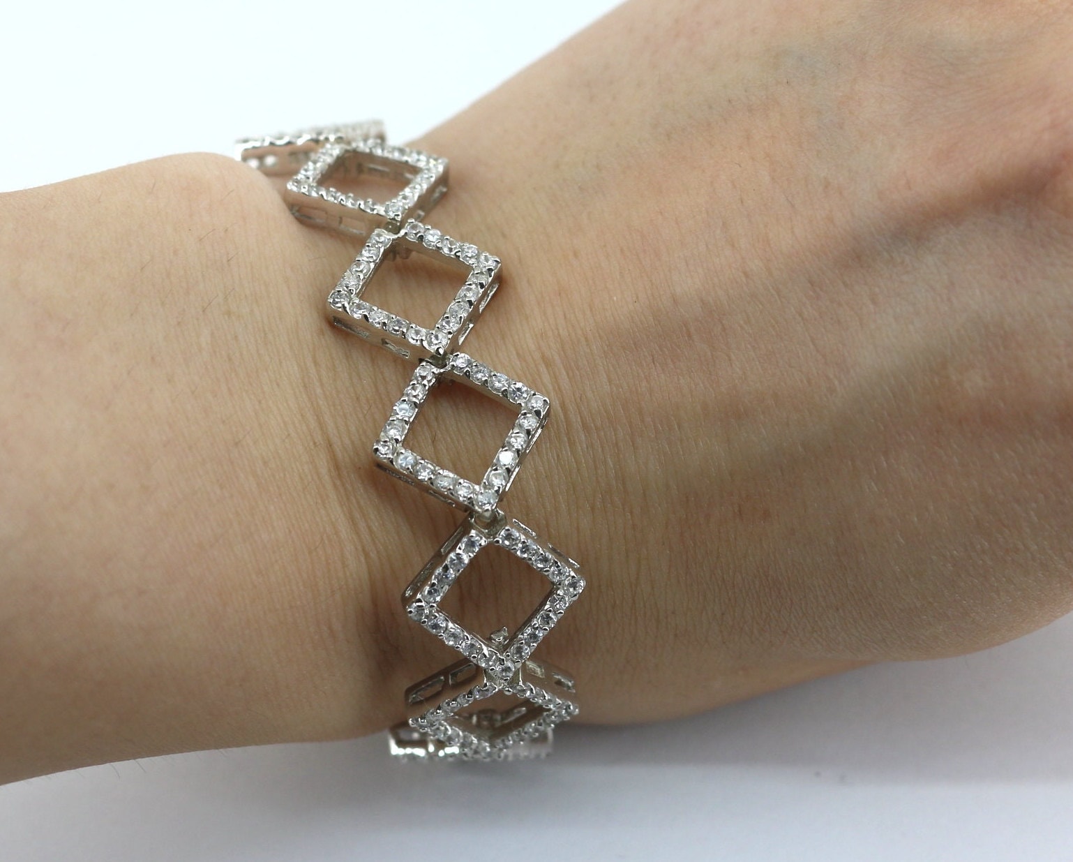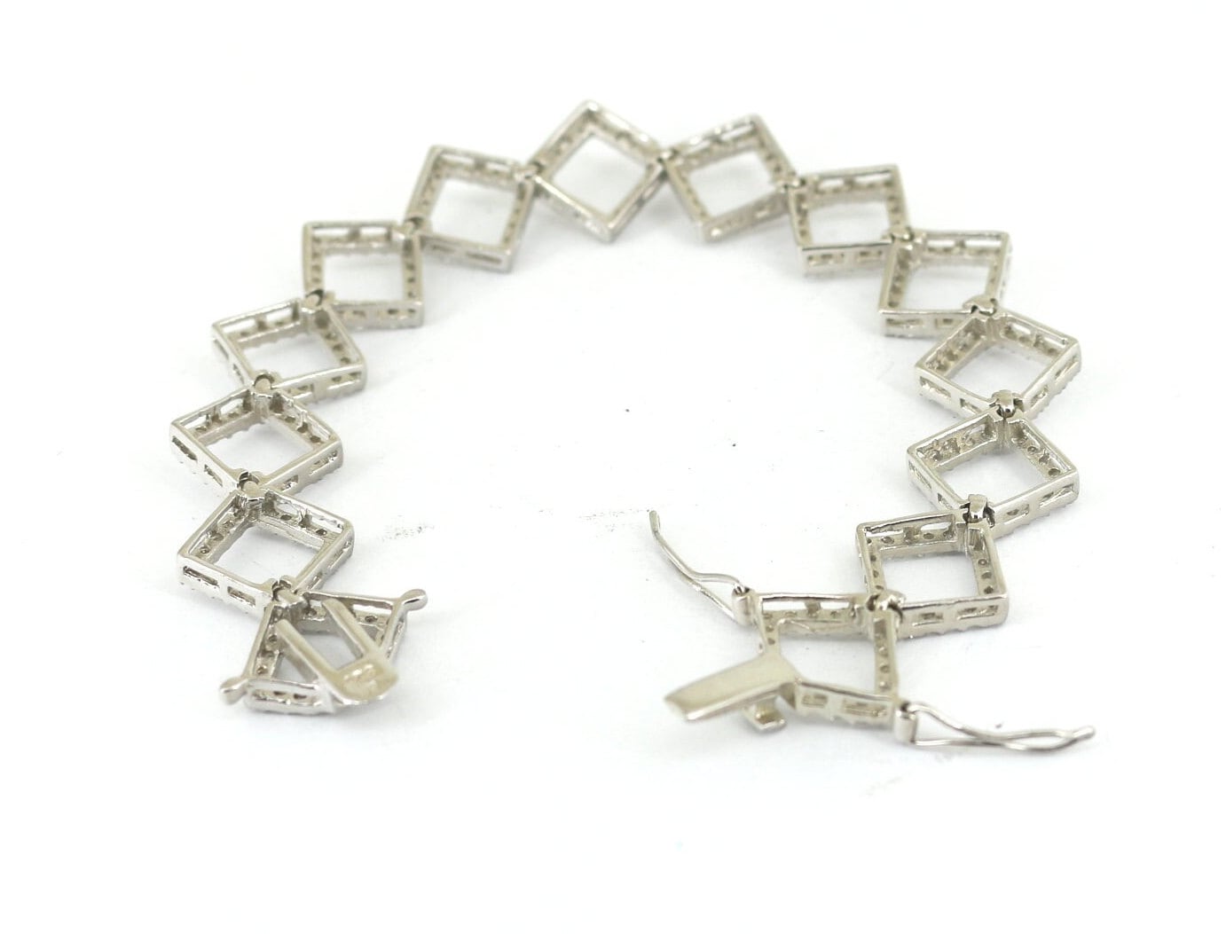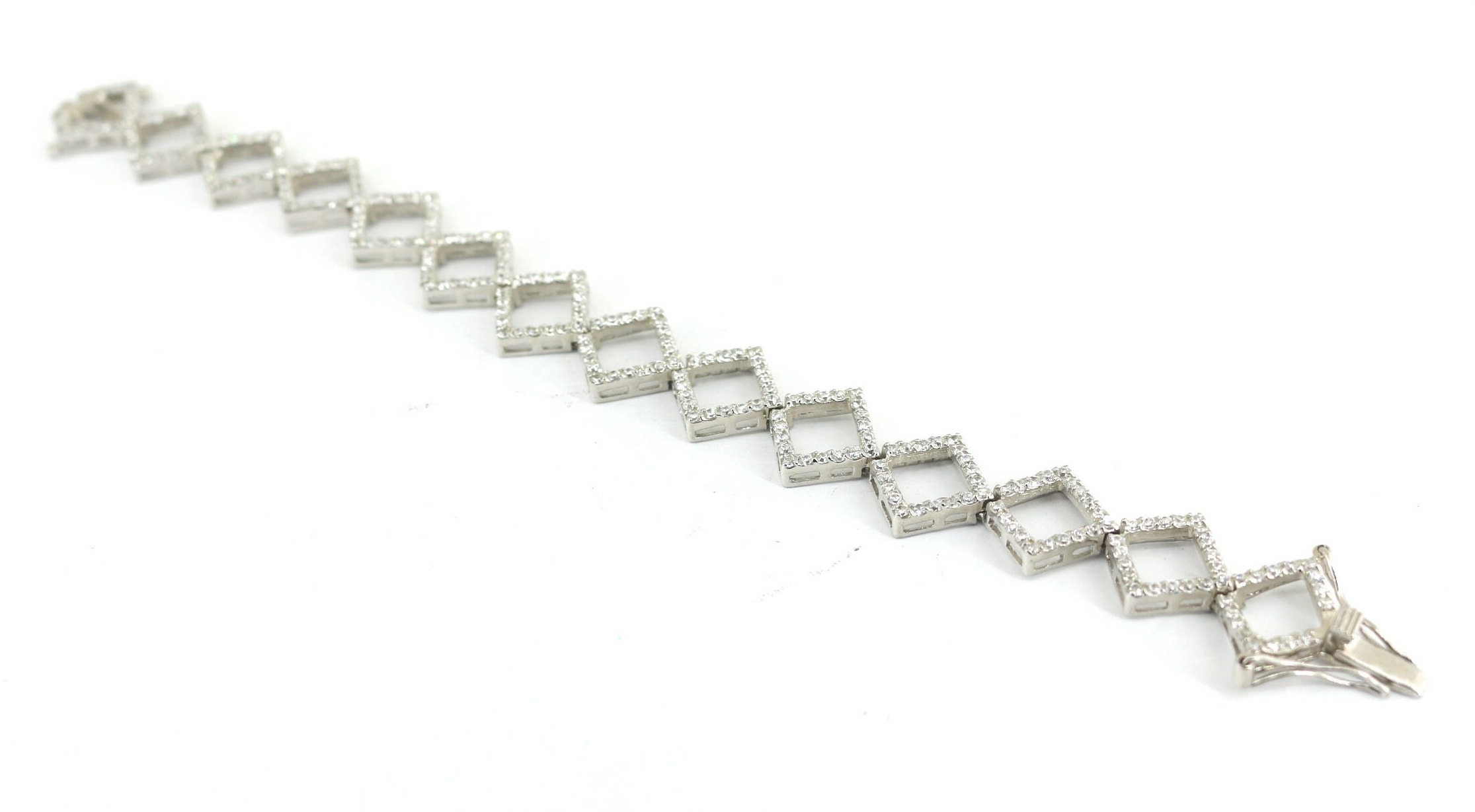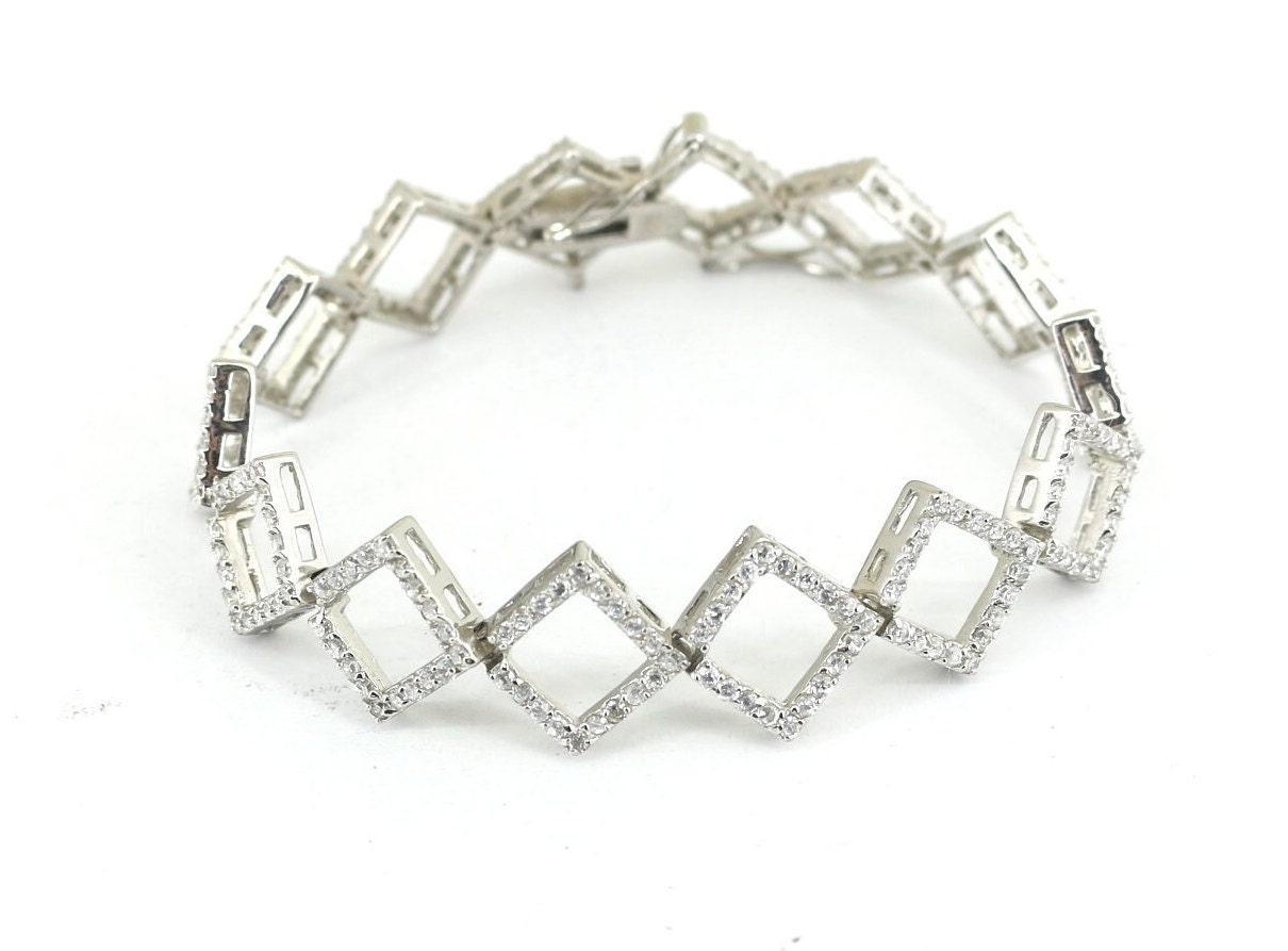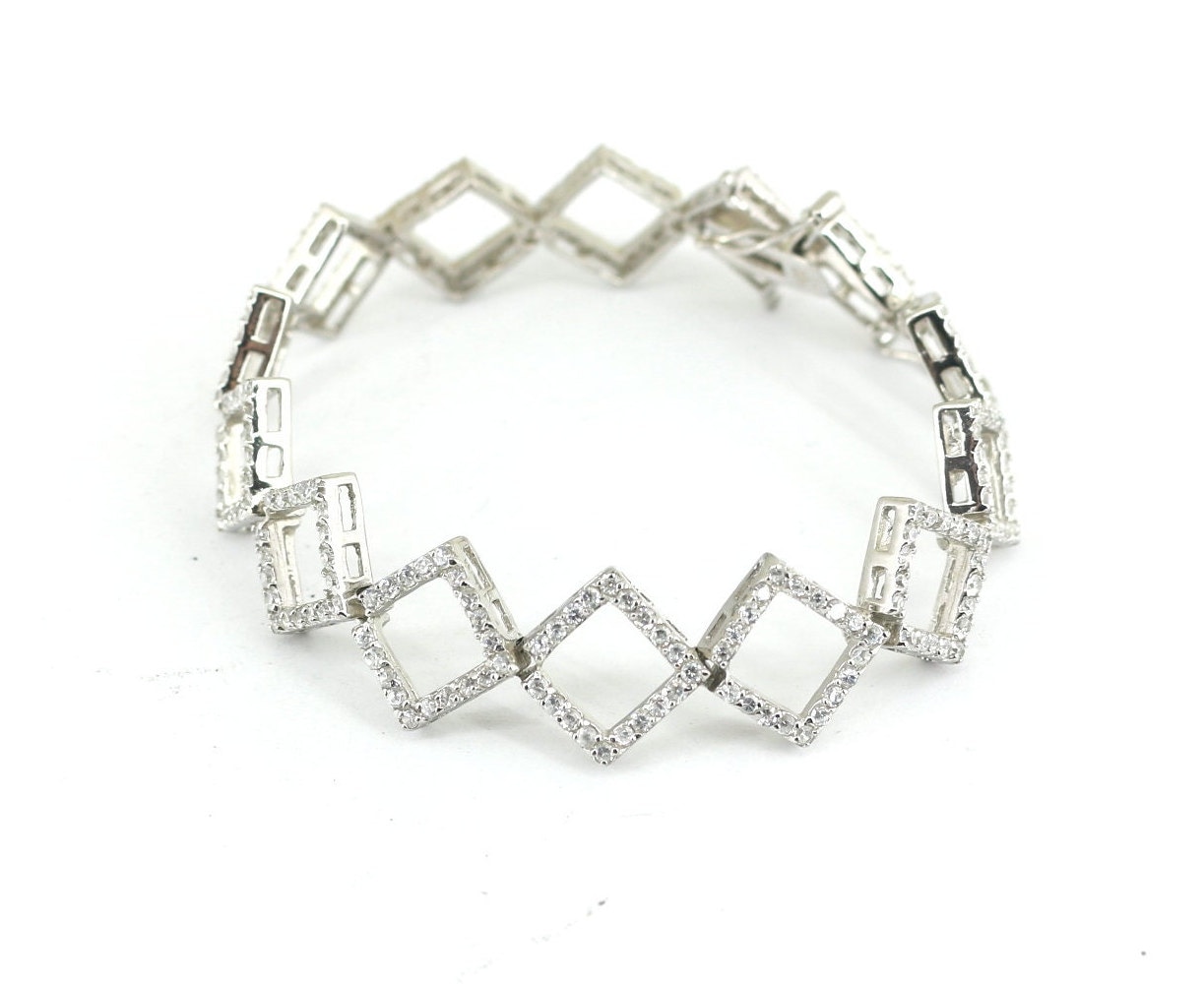 Vintage Rhombus Shape CZ Crystals Chain Design Tennis Bracelet 925 Sterling BR 2082