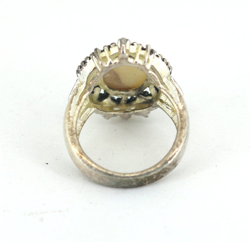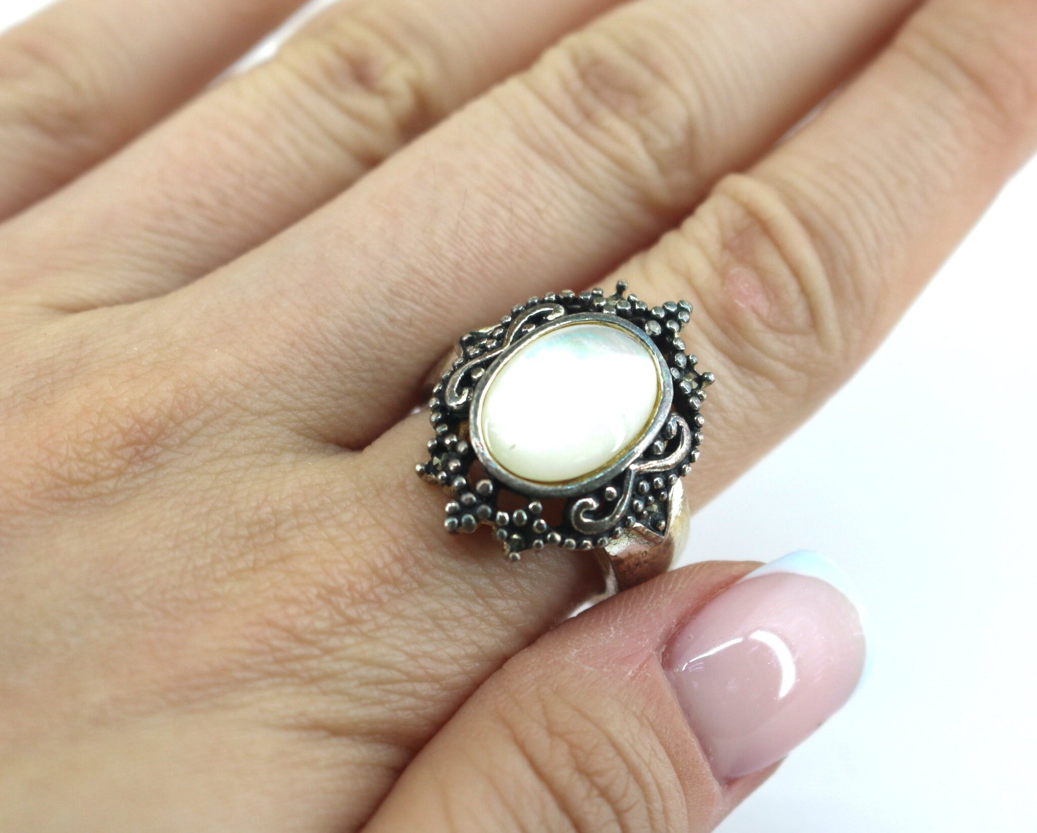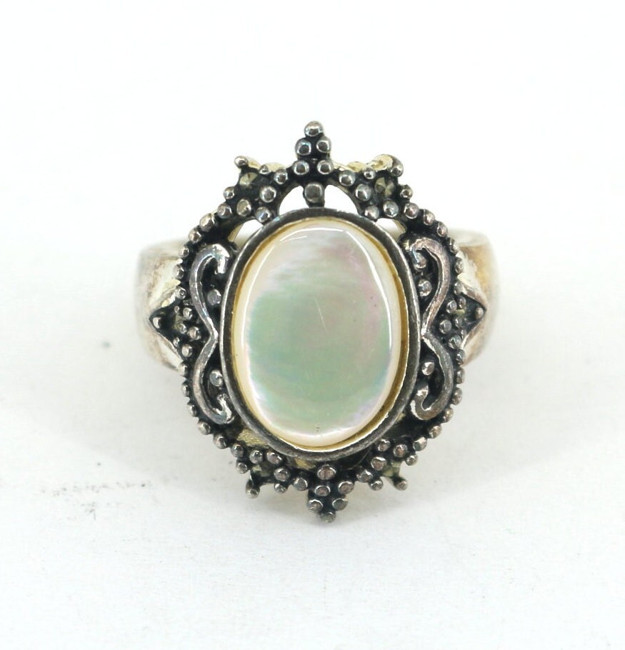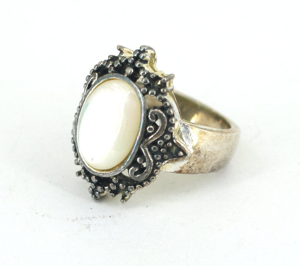 Vintage Size 6 Handmade Mother of Pearl Band Ring Sterling Silver RG 4505