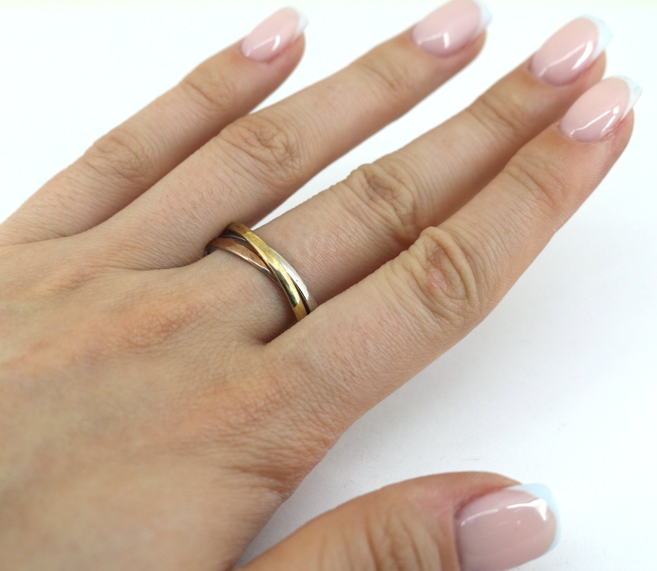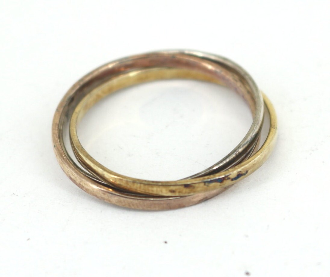 Vintage Beautiful Trinity Three in One Red & Yellow Gold Plated Design Ring 925 Sterling RG 1197