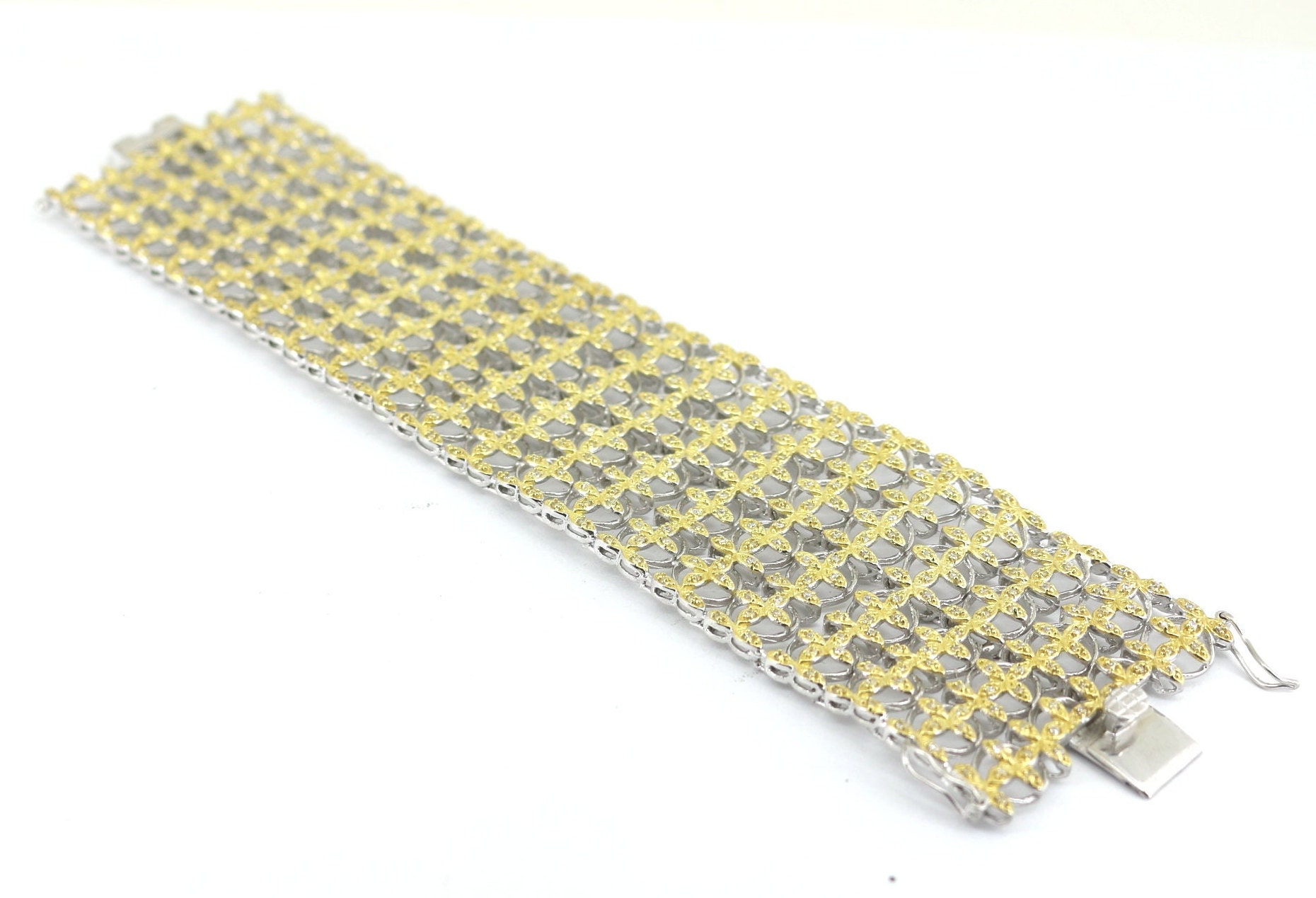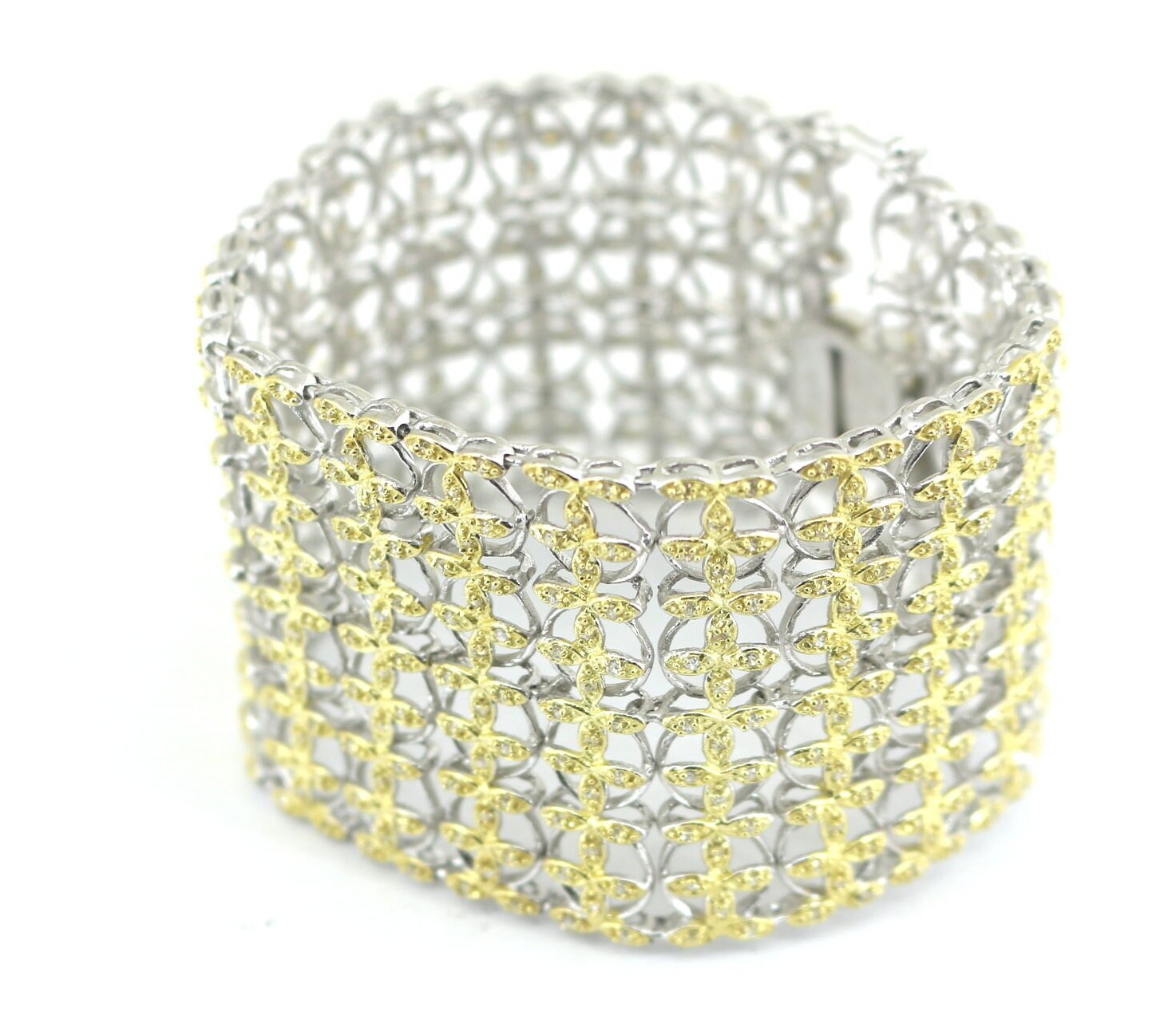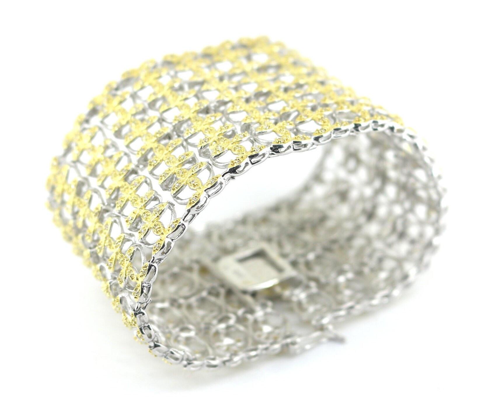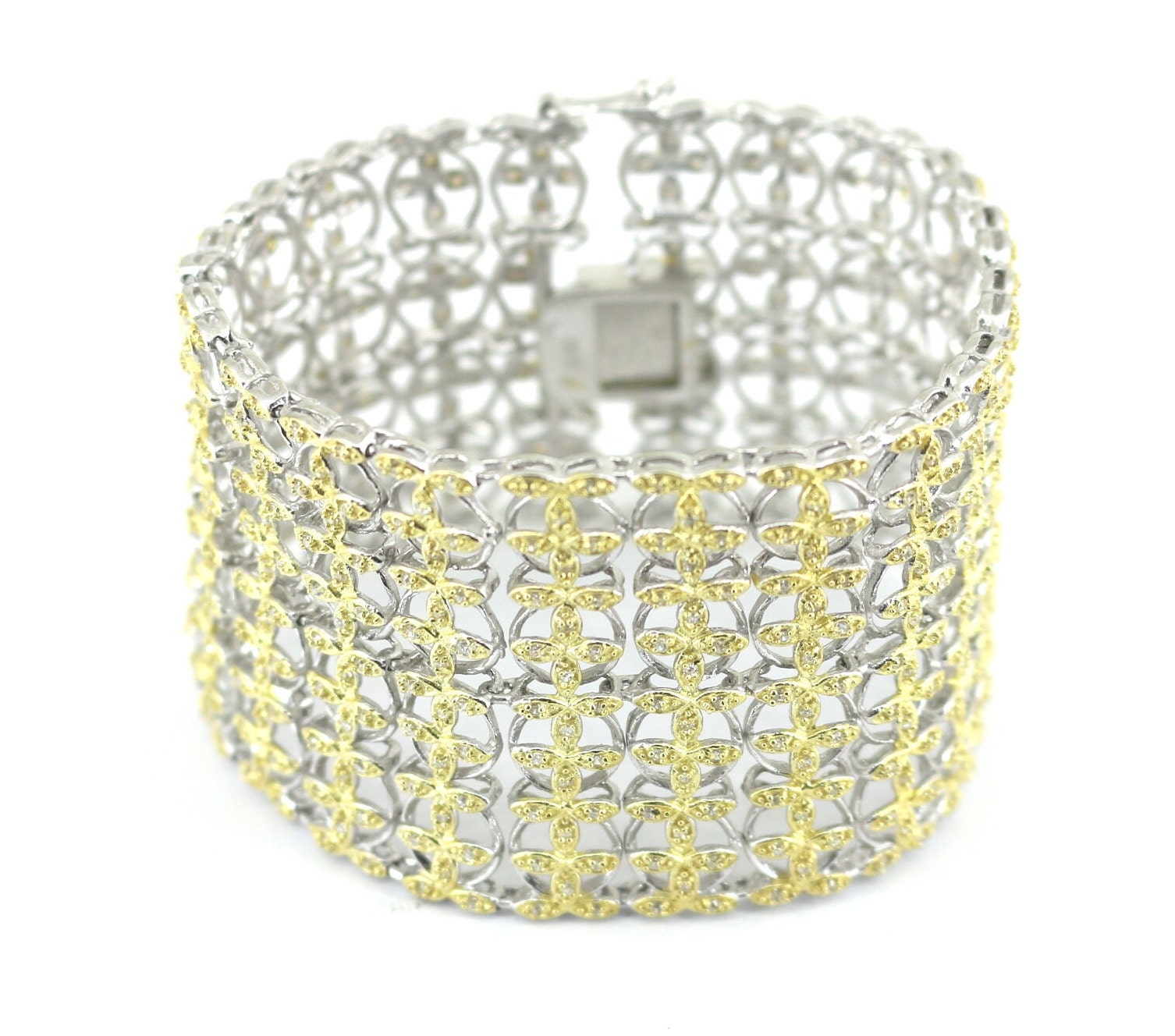 Vintage Wide Flexible Tennis Inlaid CZ Crystals Clover Design Link Bracelet 925 Sterling BR 3969
