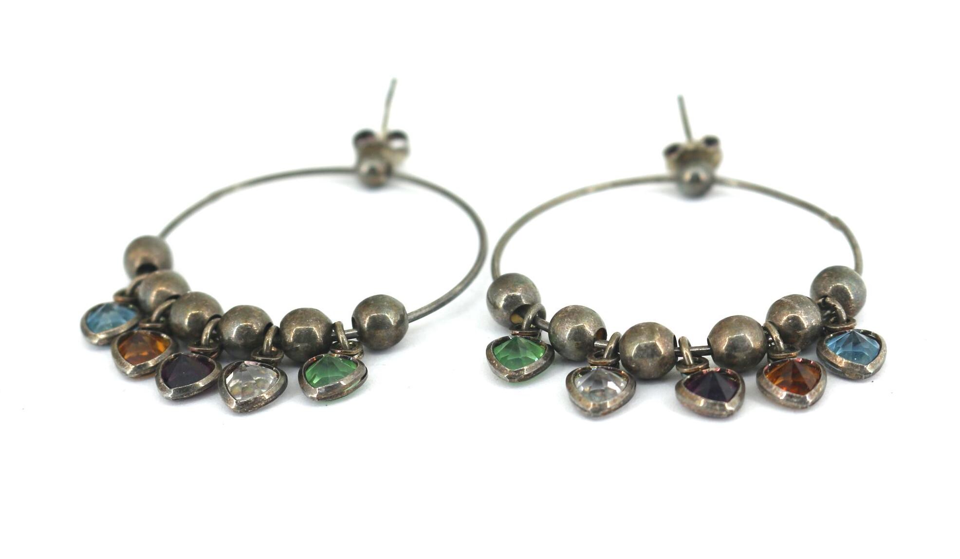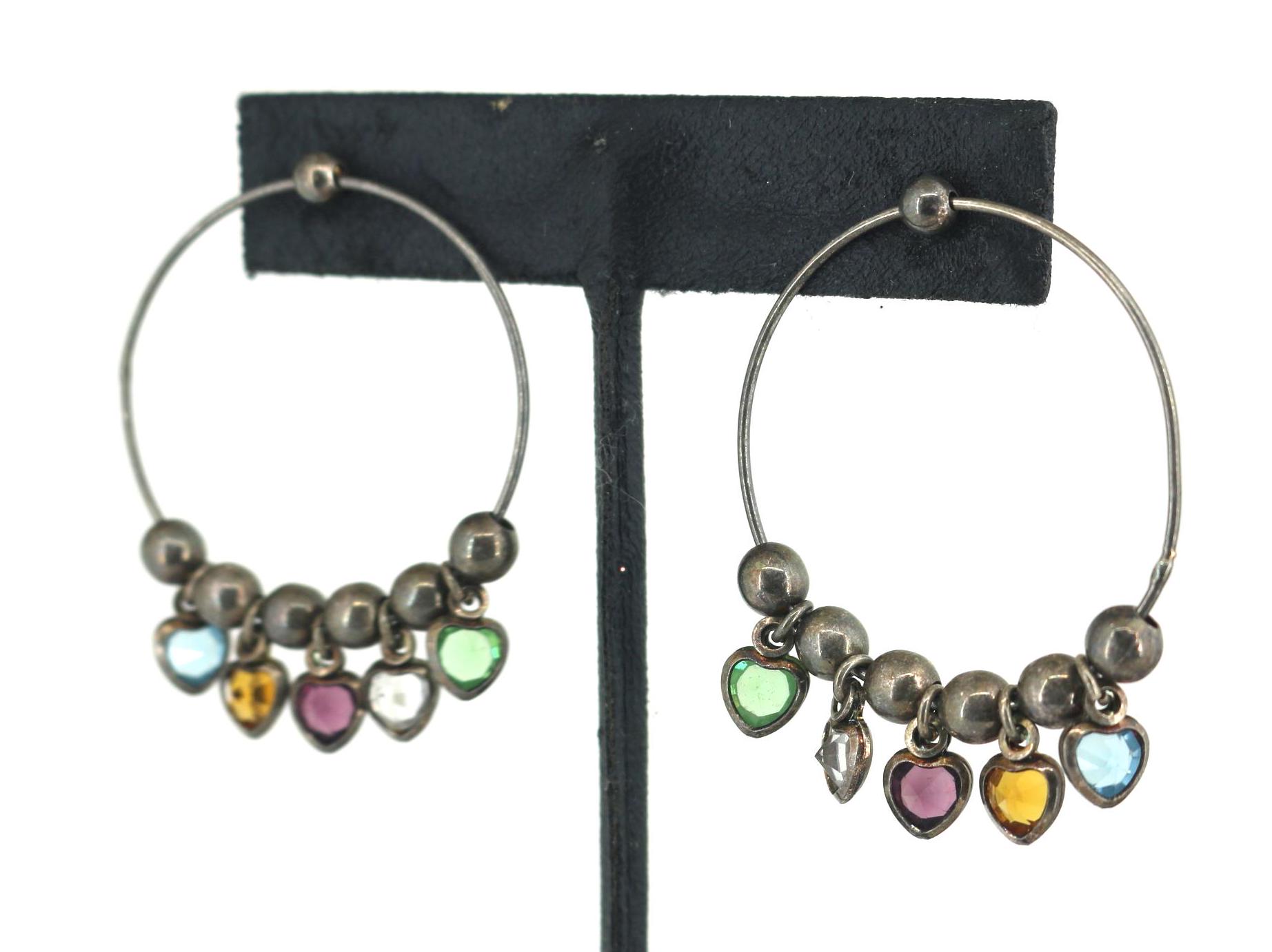 Vintage Beautiful Ball Heart Multi Color Drop Dangle Earrings Sterling Silver ER 1734