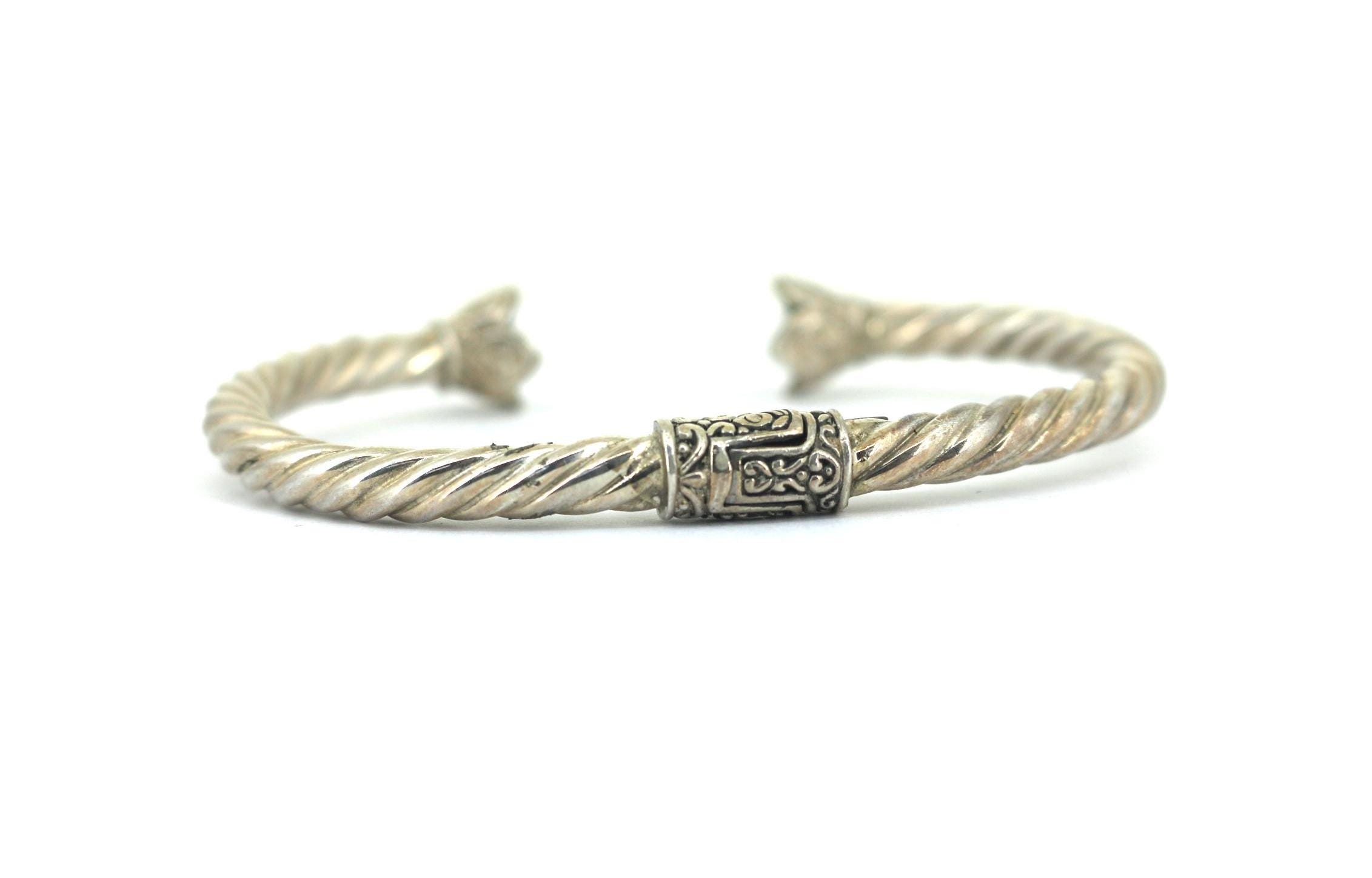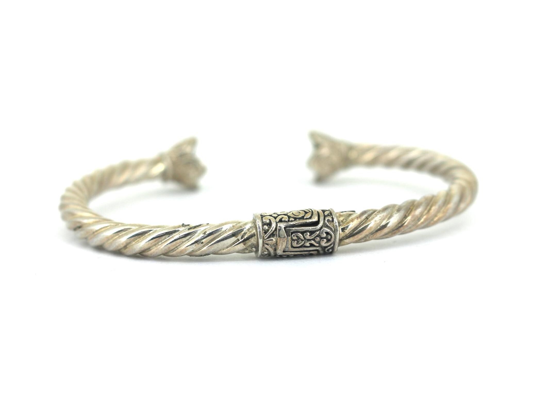 Vintage Indonesian Twisted Burgeon On the Ends Expandable Cuff Bracelet 925 Sterling BR 107