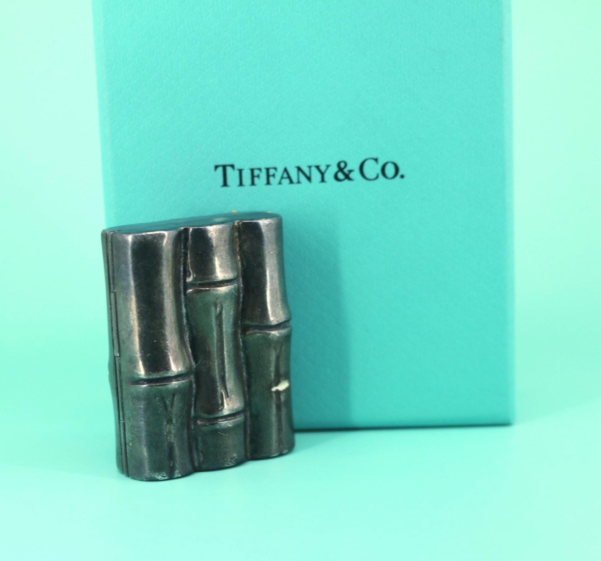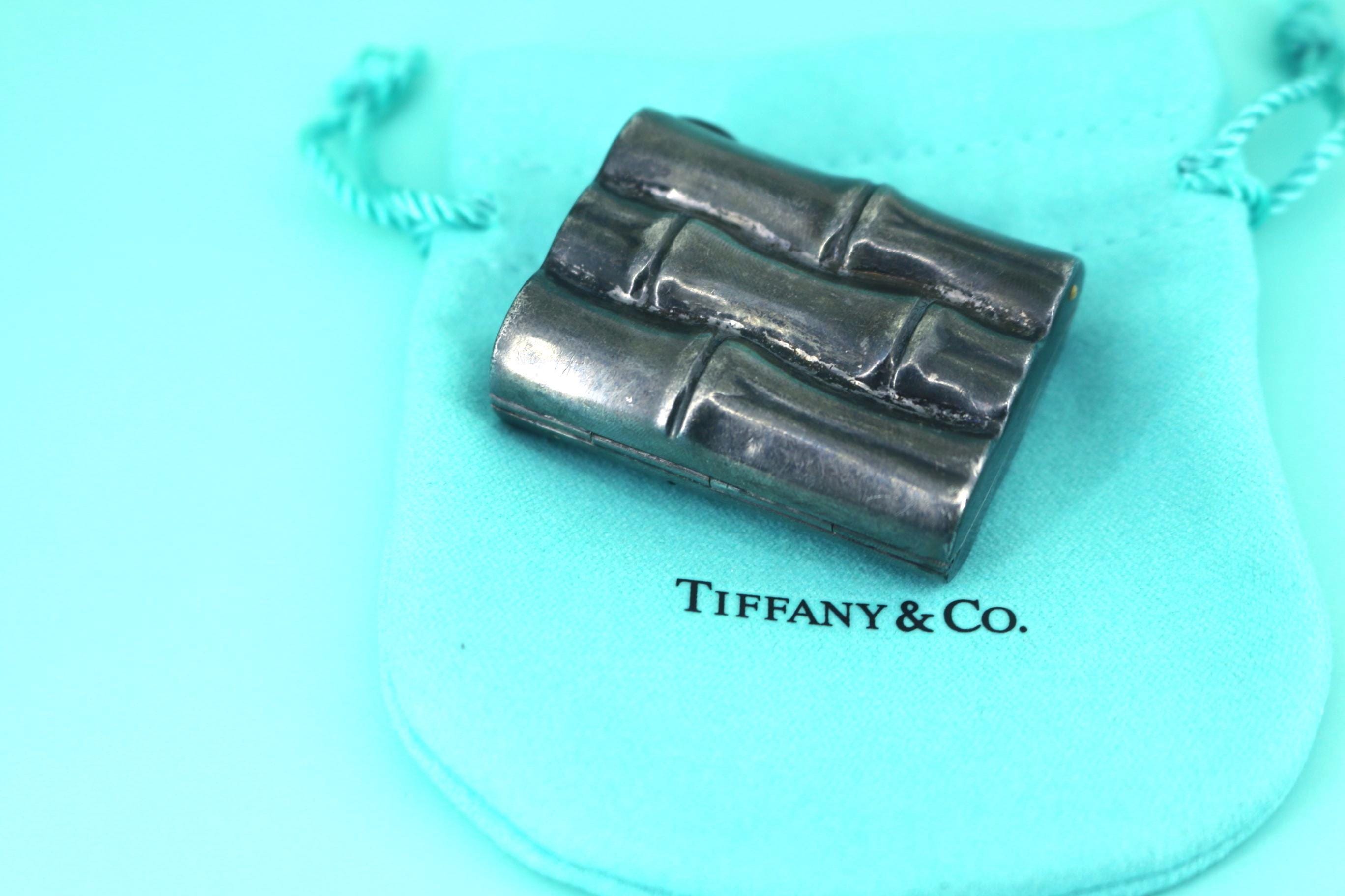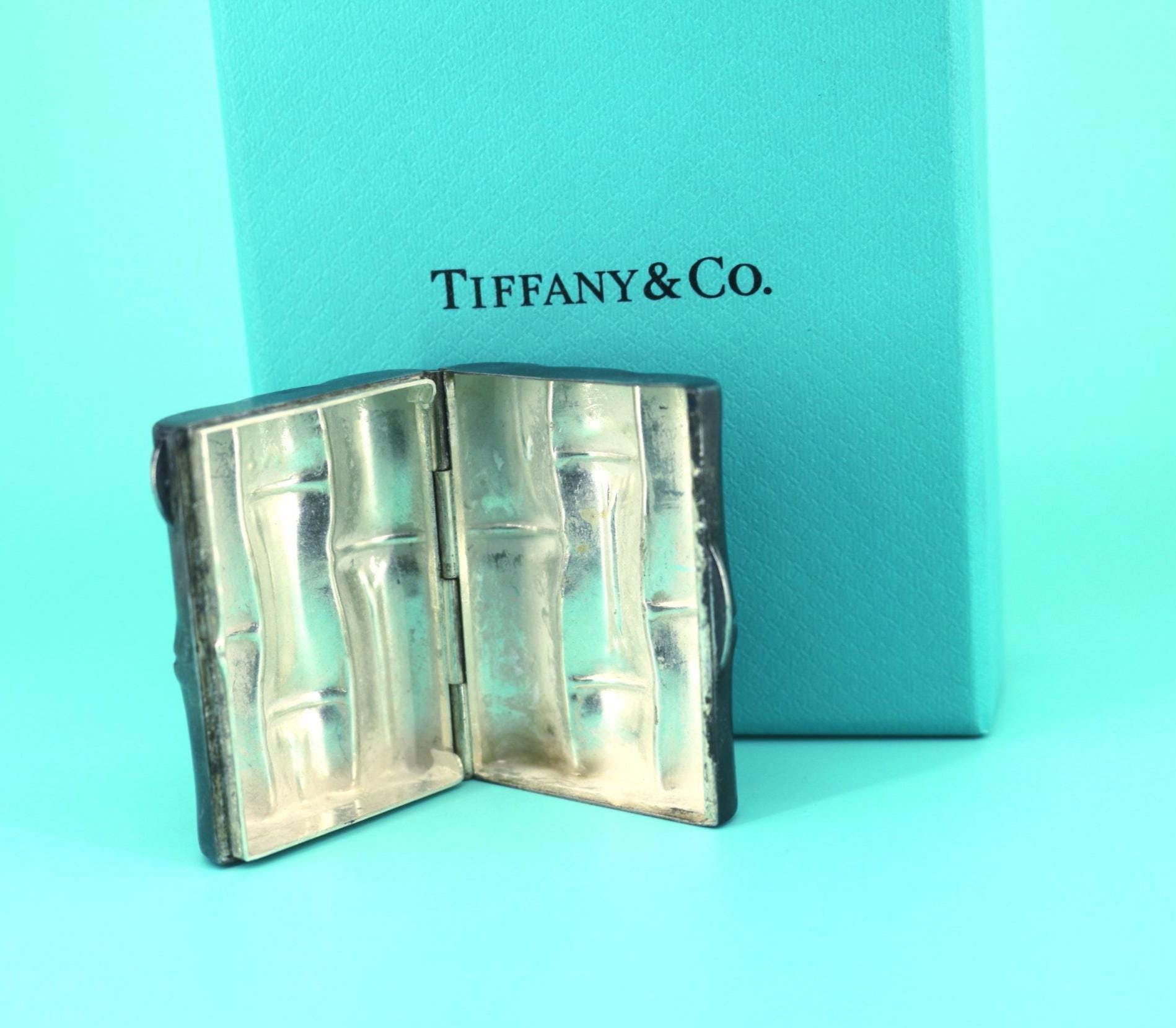 This is Authentic Pill Box | Tiffany & Co Pill Box | Rare Vintage Bamboo Pill Box | Sterling 925 Silver Pill Box | OT 419S
