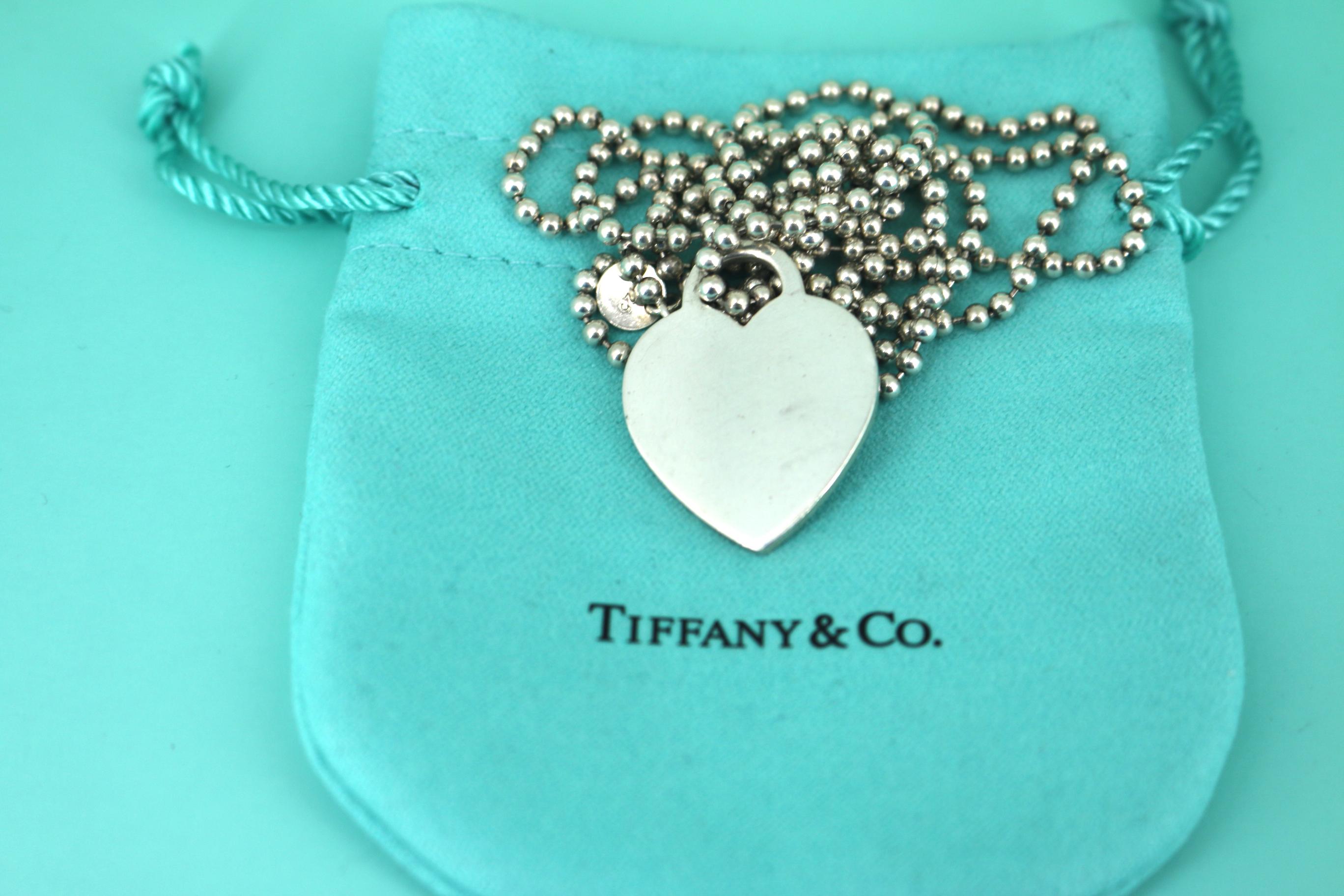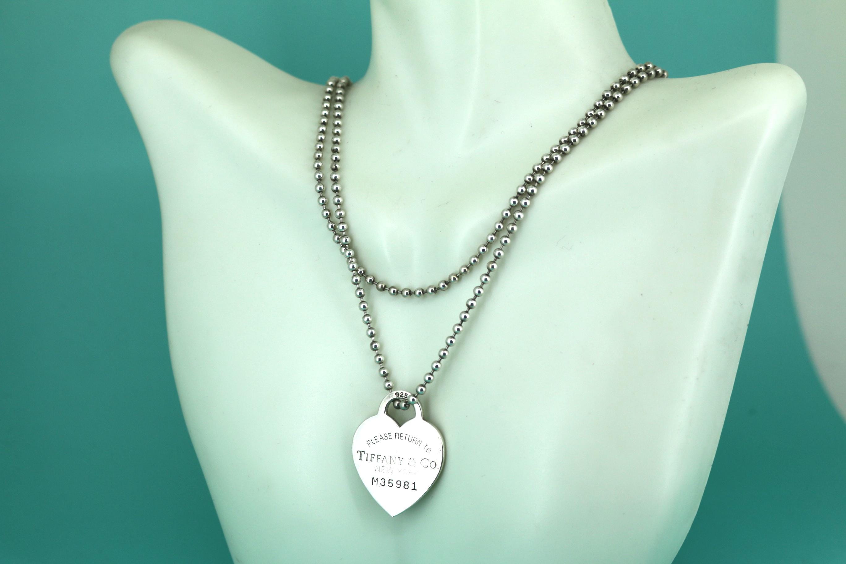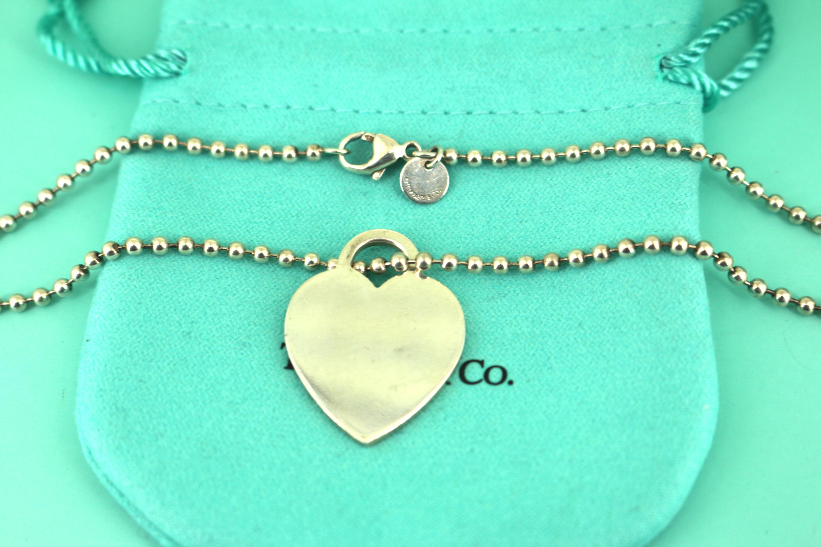 This is Authentic Tiffany & Co Heart Tag Beaded Chain Necklace 925 Sterling Nc 1093