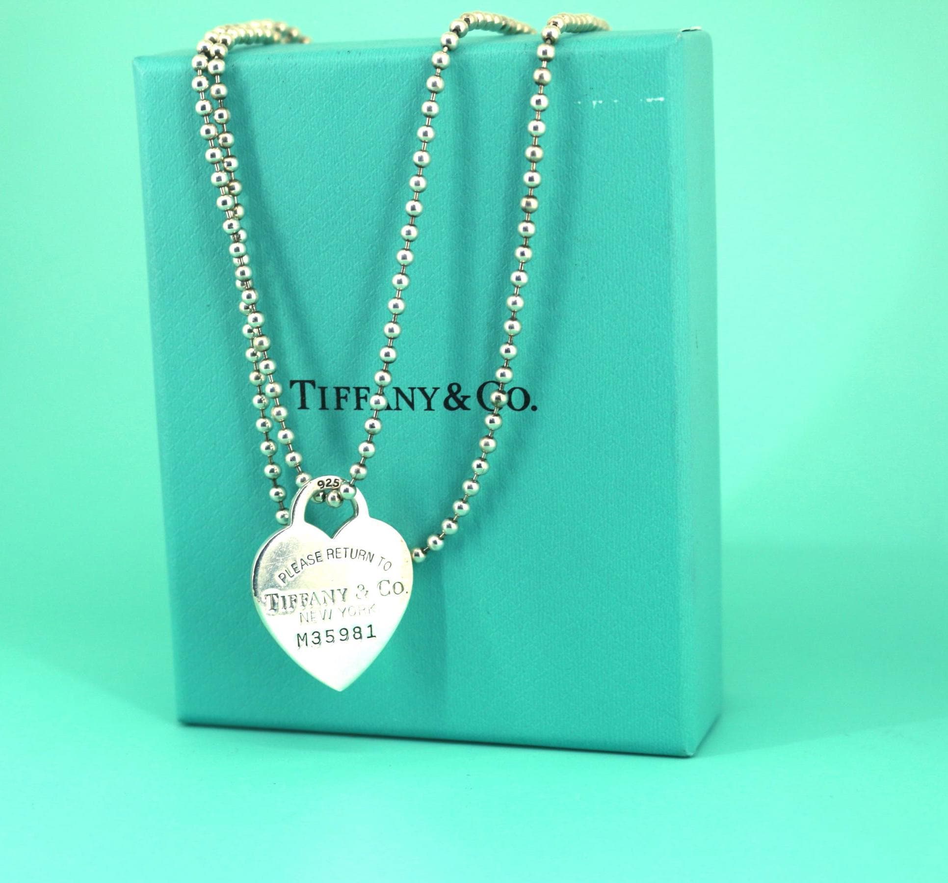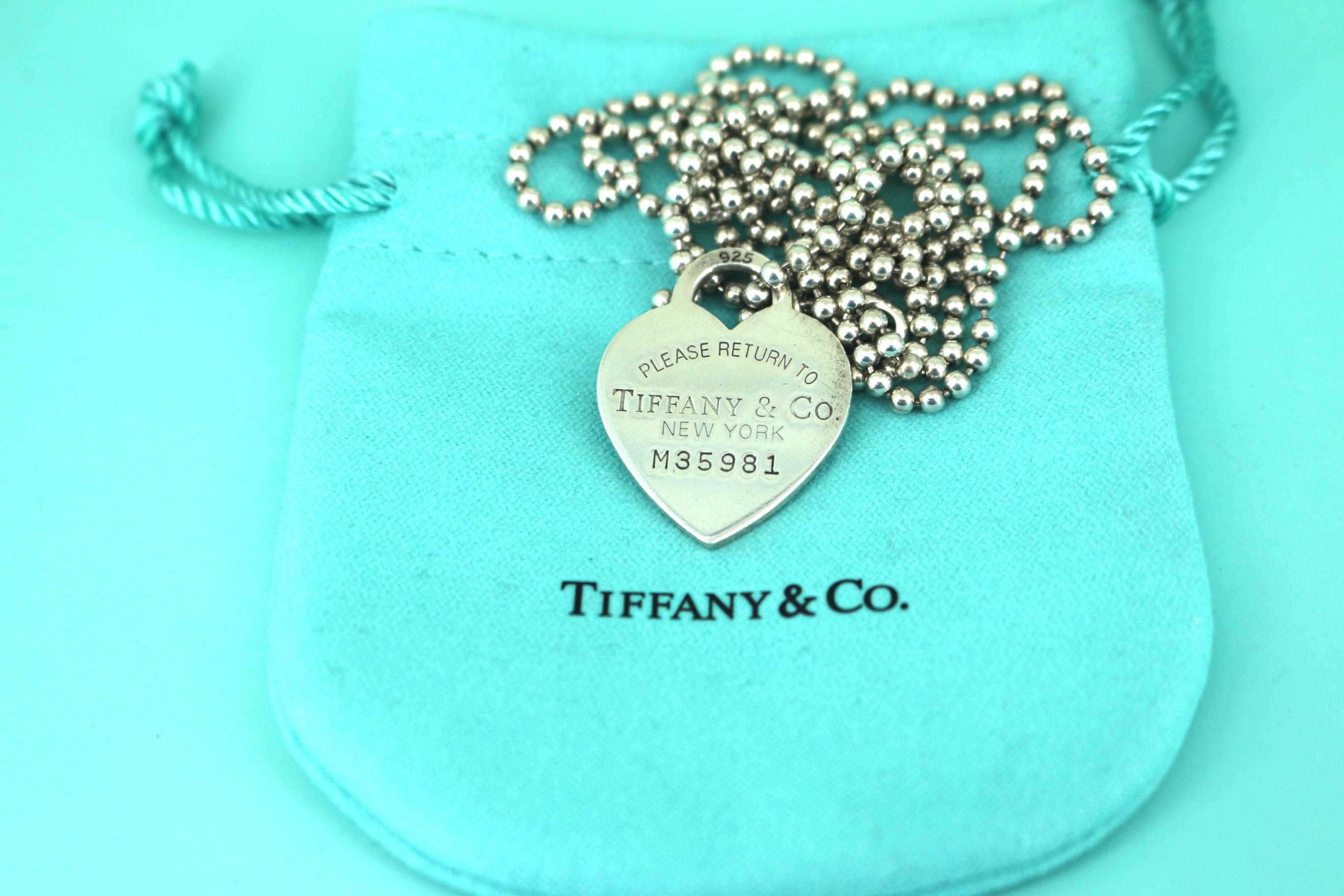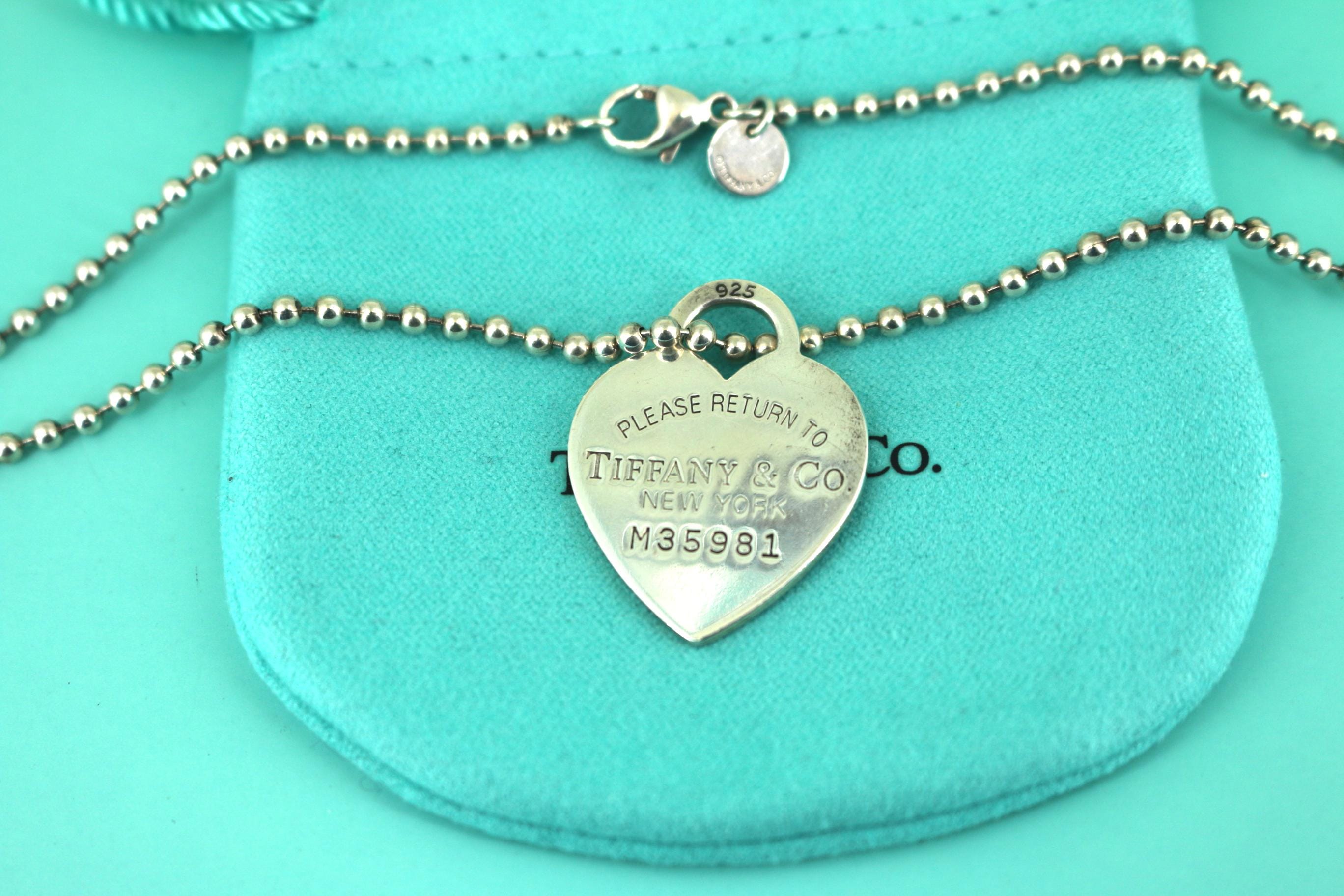 This is Authentic Tiffany & Co Heart Tag Beaded Chain Necklace 925 Sterling Nc 1093