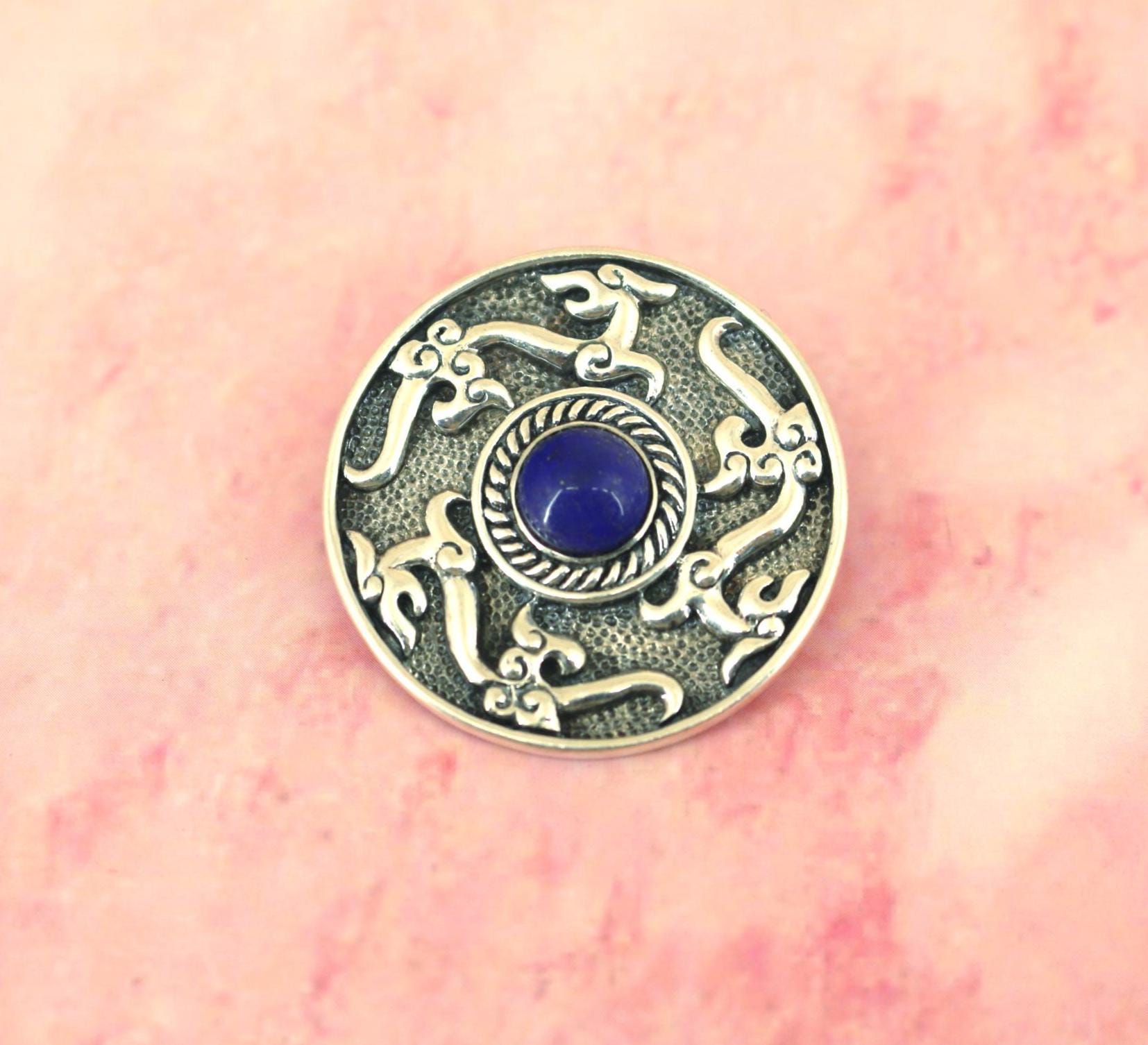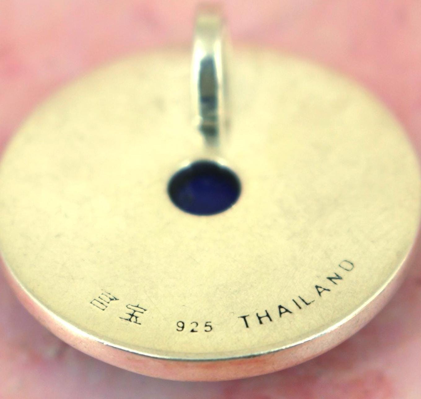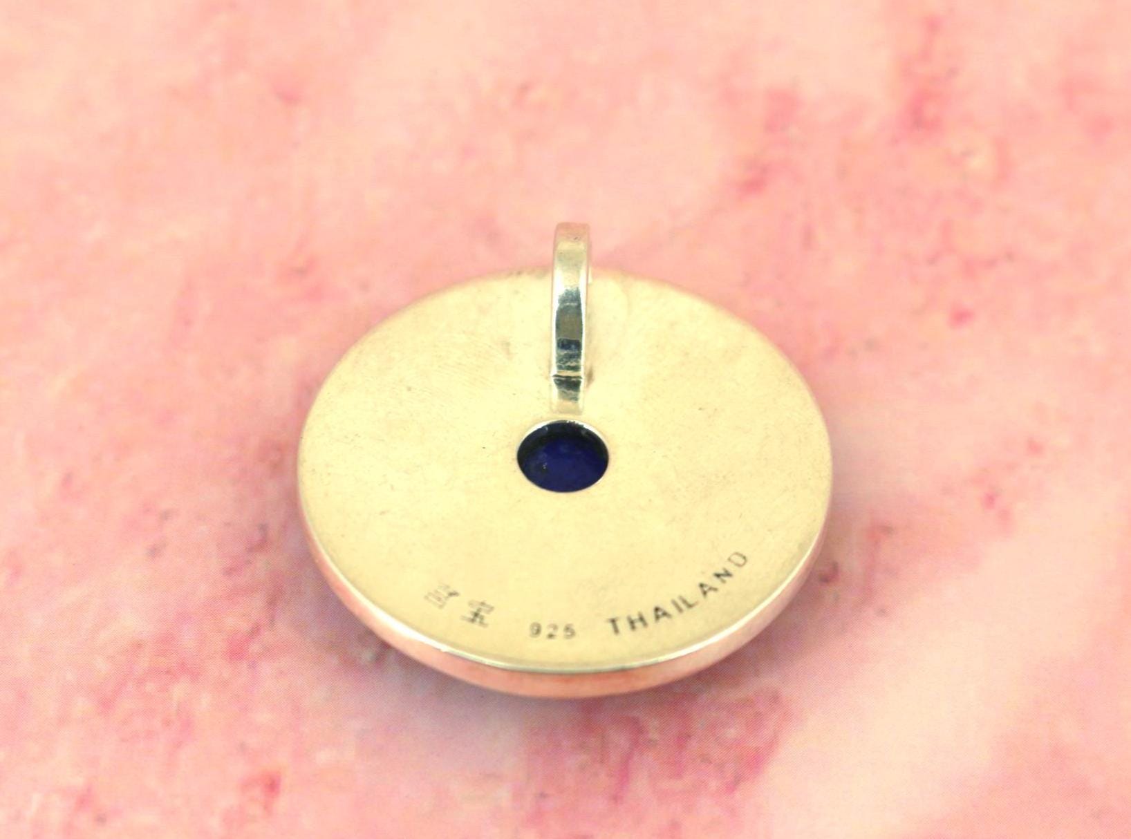 Vintage Thailand Lapis Dragons Round Pendant 925 Sterling Silver PD 1233