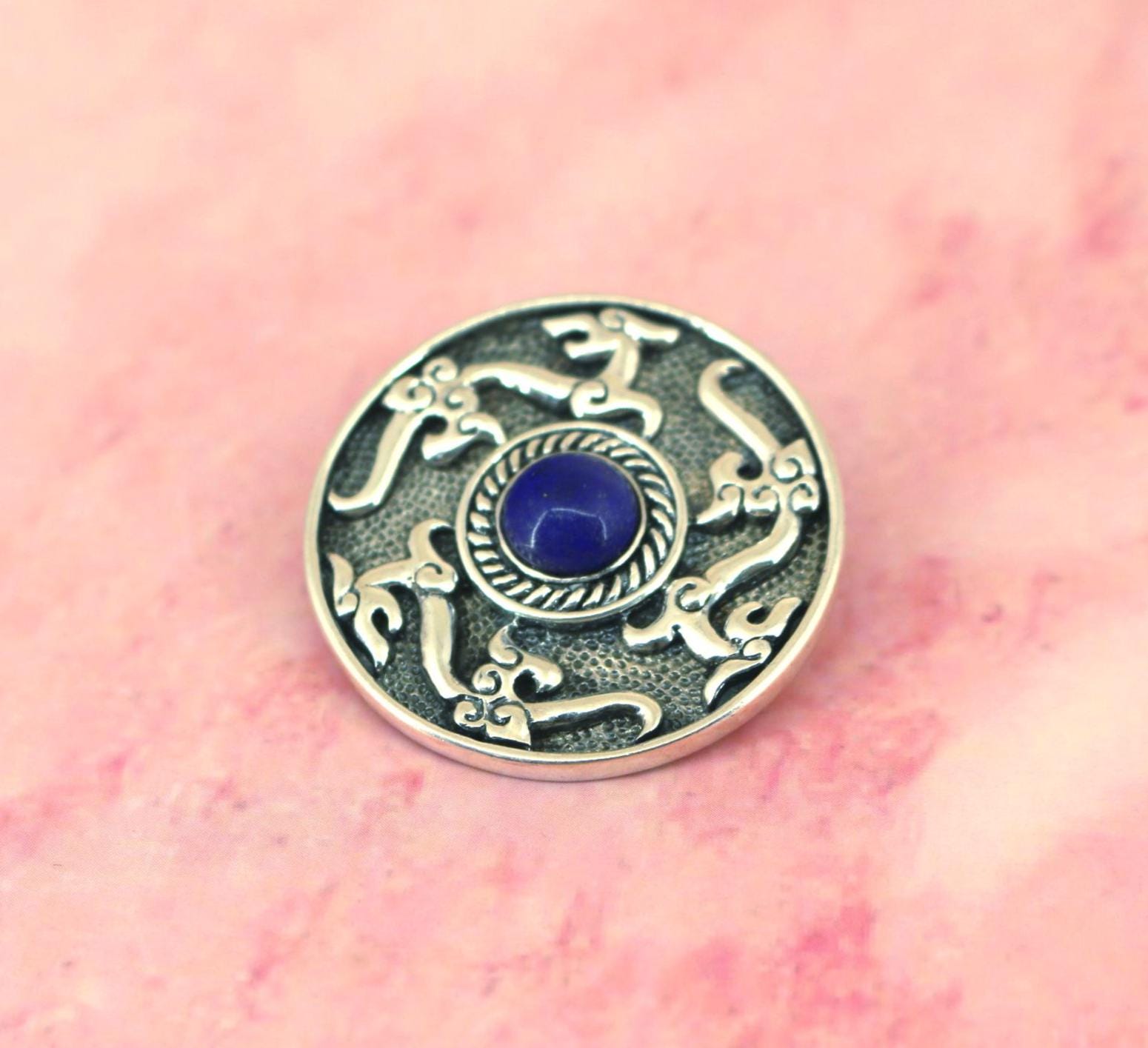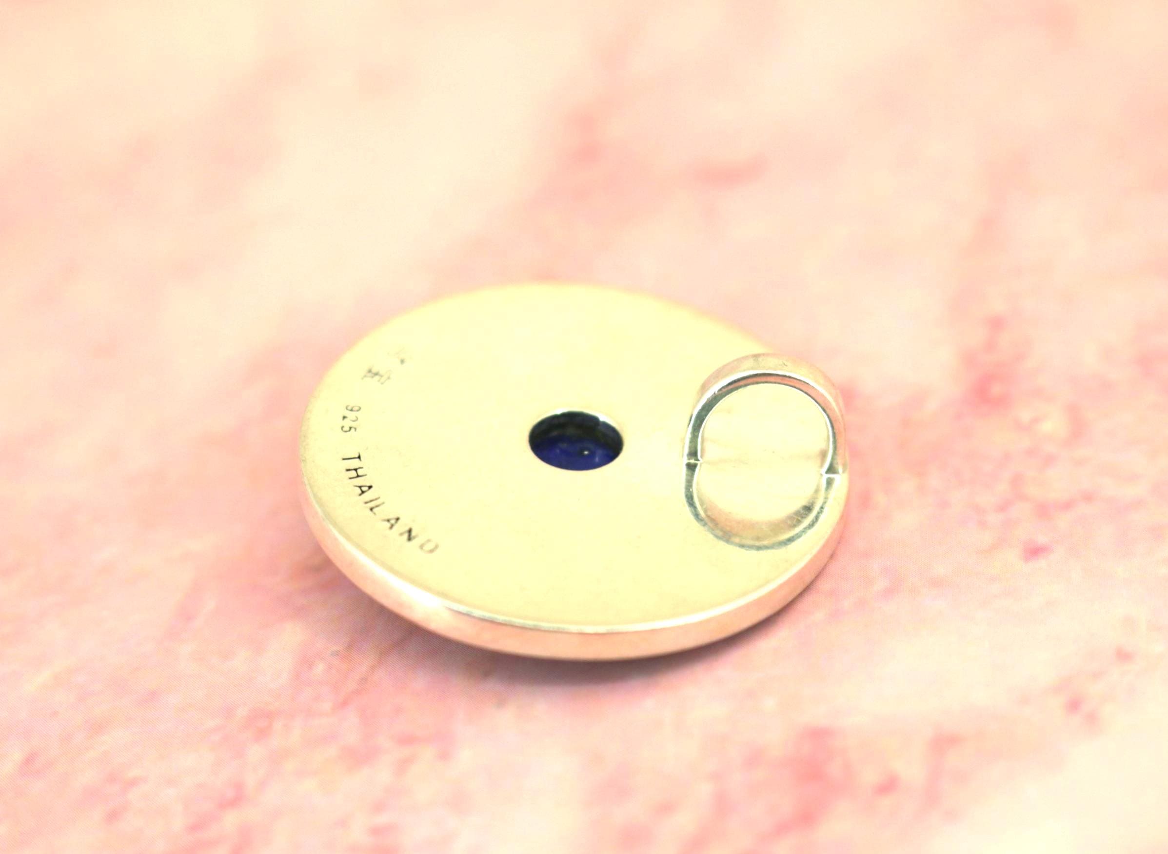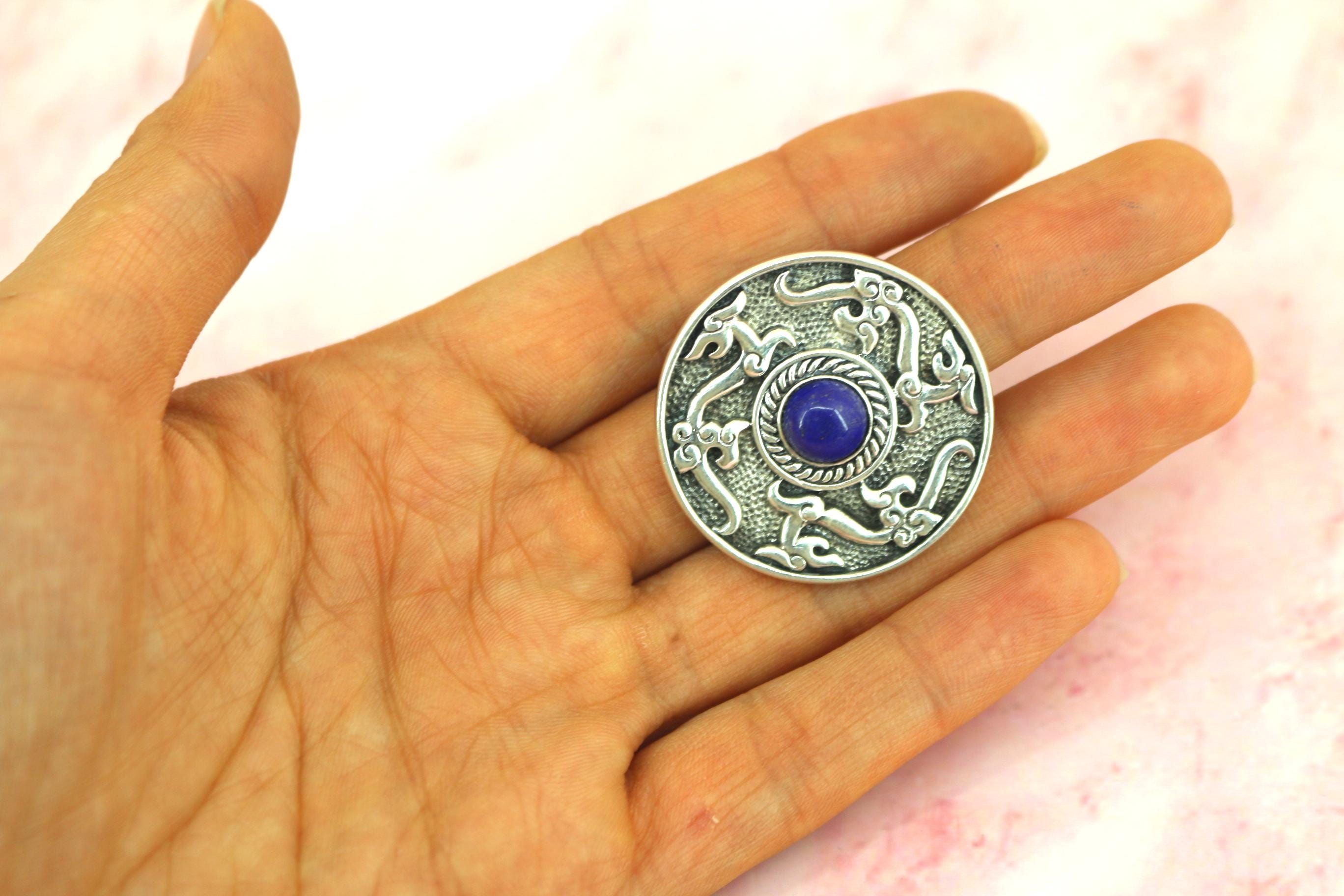 Vintage Thailand Lapis Dragons Round Pendant 925 Sterling Silver PD 1233